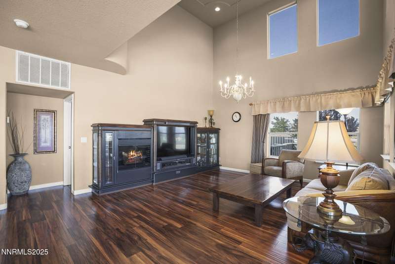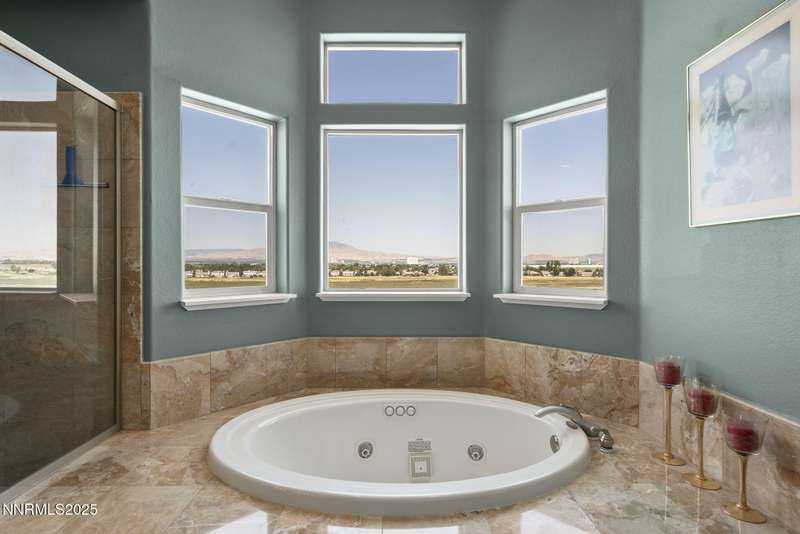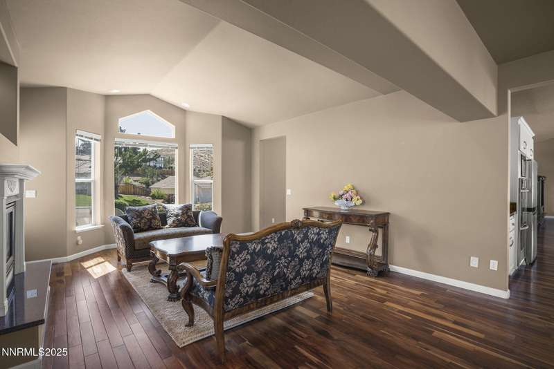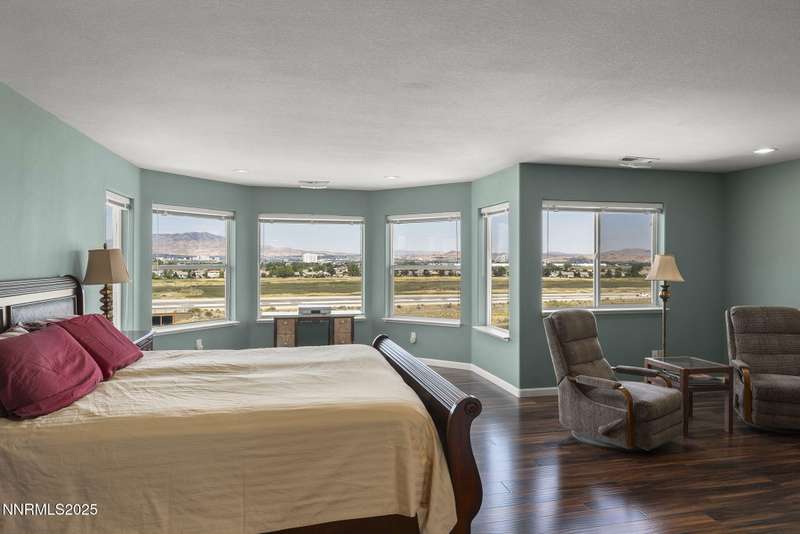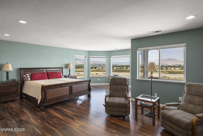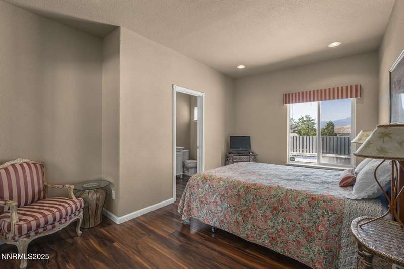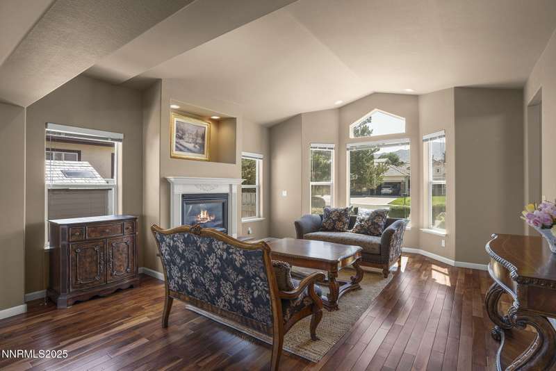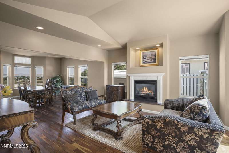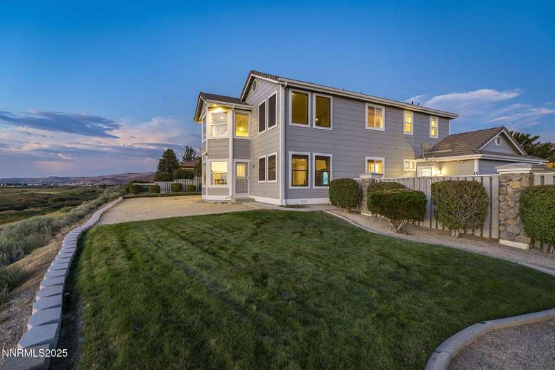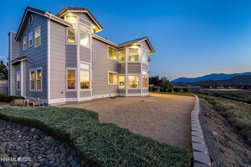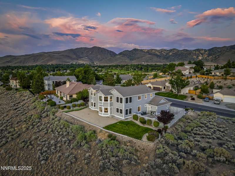 Welcome to one of Rosewood Lake Estates' most captivating homes—perched on a hill with panoramic city and mountain views that will take your breath away. From sunrise to sunset, nearly every window frames a picture-perfect view, offering a daily reminder of why this is one of Reno's most desirable areas. Just down the street from Hidden Valley Golf Course and Country Club, this residence blends refined comfort with thoughtful design and effortless access to both Reno and Sparks. Step inside to find a meticulously maintained interior, intentionally crafted for both energy efficiency and beauty. Expansive windows flood the home with natural light, while dual-zone heating and cooling keep every space perfectly comfortable year-round. The engineered hardwood floors run seamlessly throughout, complementing the finishes and recent updates. The heart of the home is the kitchen—featuring brand-new appliances (all included), central vacuum system, and ample workspace for everyday cooking or entertaining. The formal dining room sets the stage for memorable gatherings, and the living room's gas log fireplace offers a cozy focal point. The spacious primary suite is a true retreat, offering sweeping views, a custom built-in closet system, a large jetted tub. An additional ensuite bedroom on the main level provides flexibility for guests or multi-generational living, while the remodeled bathrooms throughout the home add a fresh, modern feel. An oversized 26-foot, three-car garage with EV charging station offers plenty of space for vehicles, storage, or hobbies. Additional features include instant hot water with dual tanks, extra parking with a gated concrete pad for an RV or trailer, and a storage shed in the backyard. The HOA provides excellent amenities—including a pool, spa, clubhouse, tennis and basketball courts, a private park, and a walking trail. Grocery shopping, dining, and everyday conveniences are less than a mile away. This is more than a home—it's a lifestyle of comfort, convenience, and unmatched views, all in a location that perfectly balances privacy with accessibility.