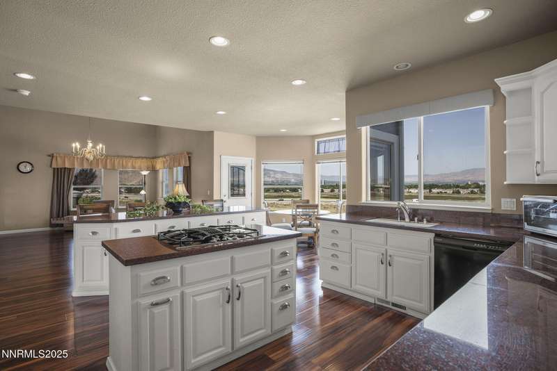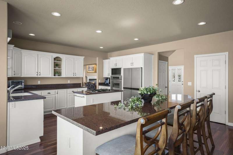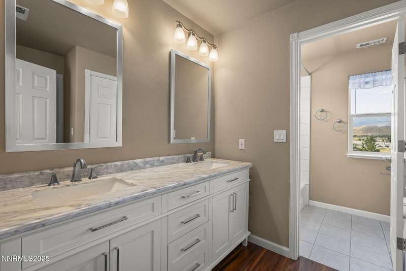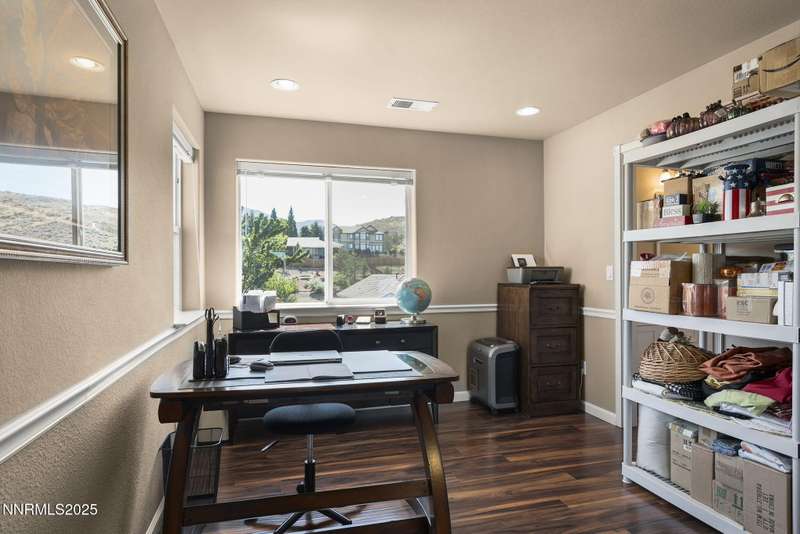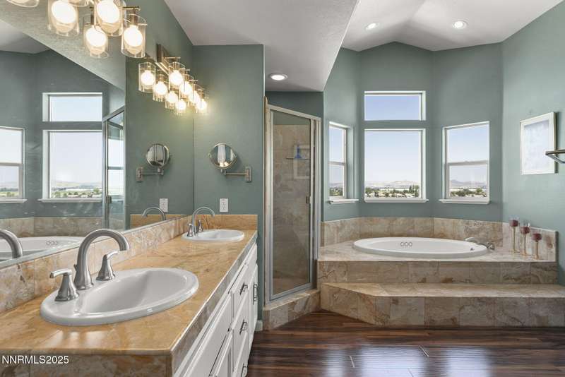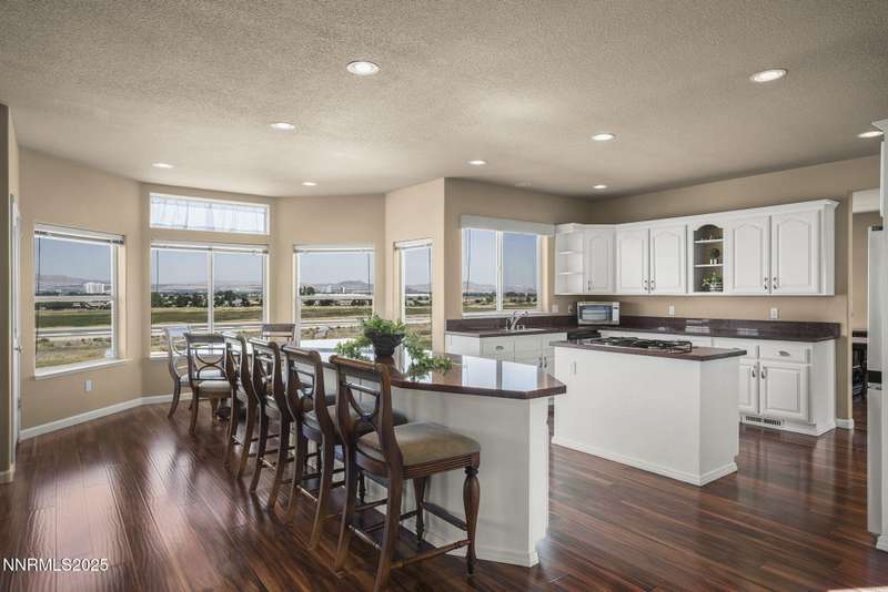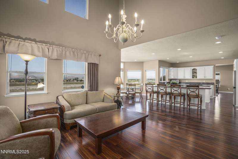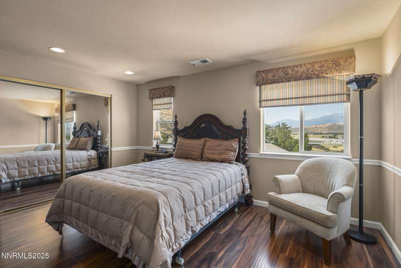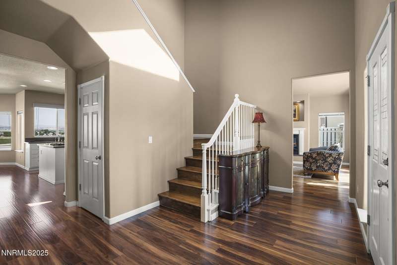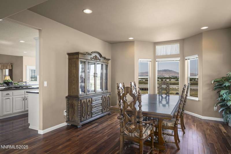 Welcome to one of Rosewood Lake Estates' most captivating homes—perched on a hill with panoramic city and mountain views that will take your breath away. From sunrise to sunset, nearly every window frames a picture-perfect view, offering a daily reminder of why this is one of Reno's most desirable areas. Just down the street from Hidden Valley Golf Course and Country Club, this residence blends refined comfort with thoughtful design and effortless access to both Reno and Sparks. Step inside to find a meticulously maintained interior, intentionally crafted for both energy efficiency and beauty. Expansive windows flood the home with natural light, while dual-zone heating and cooling keep every space perfectly comfortable year-round. The engineered hardwood floors run seamlessly throughout, complementing the finishes and recent updates. The heart of the home is the kitchen—featuring brand-new appliances (all included), central vacuum system, and ample workspace for everyday cooking or entertaining. The formal dining room sets the stage for memorable gatherings, and the living room's gas log fireplace offers a cozy focal point. The spacious primary suite is a true retreat, offering sweeping views, a custom built-in closet system, a large jetted tub. An additional ensuite bedroom on the main level provides flexibility for guests or multi-generational living, while the remodeled bathrooms throughout the home add a fresh, modern feel. An oversized 26-foot, three-car garage with EV charging station offers plenty of space for vehicles, storage, or hobbies. Additional features include instant hot water with dual tanks, extra parking with a gated concrete pad for an RV or trailer, and a storage shed in the backyard. The HOA provides excellent amenities—including a pool, spa, clubhouse, tennis and basketball courts, a private park, and a walking trail. Grocery shopping, dining, and everyday conveniences are less than a mile away. This is more than a home—it's a lifestyle of comfort, convenience, and unmatched views, all in a location that perfectly balances privacy with accessibility.