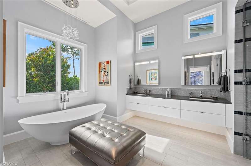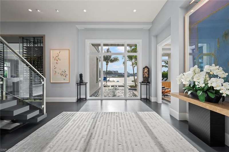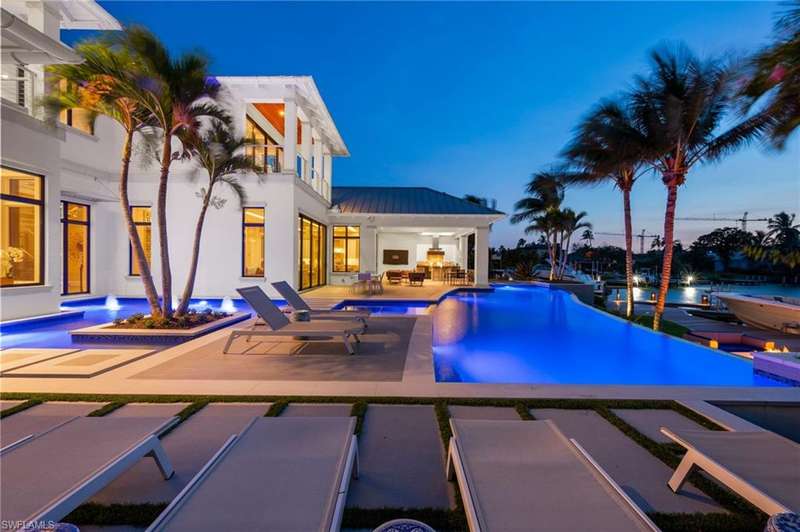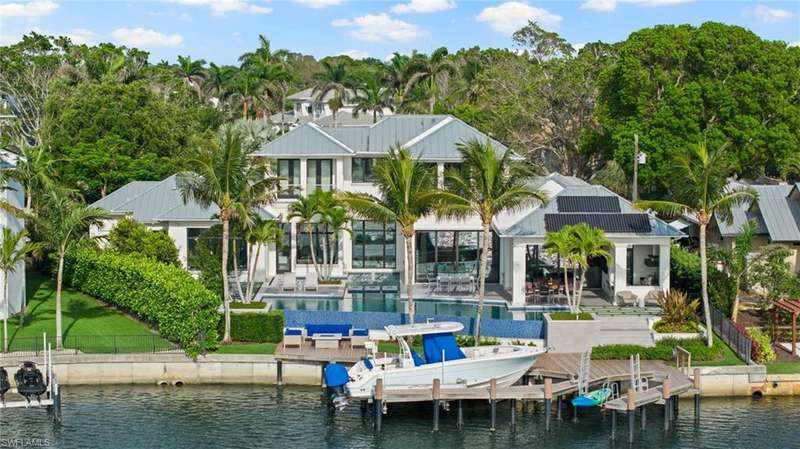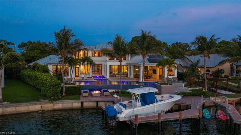 Welcome to your dream retreat in the heart of Coquina Sands one of Naples most desirable neighborhoods. Thoughtfully designed by acclaimed architect Stofft Cooney and built by the renowned Toscana Homes, this elevated custom estate (built at over 10 feet) is a boater s dream, offering direct bay access and everything you need for the ultimate waterfront lifestyle. The private dock is fully equipped with a boat lift, kayak launch, water and power hookups, Snook lights, and a fish cleaning station perfect for sunset cruises or catching dinner right from your backyard. With nearly 1,900 sq ft of open-air deck space, an oversized infinity-edge pool with multi-color lighting, spa, fire pit, and lush landscaping featuring rare tropical trees, the outdoor setting is nothing short of spectacular. Inside, the home makes a striking first impression with a reflection pool and dramatic bay views from the moment you enter. Wide-plank wood flooring flows into the expansive great room, featuring a