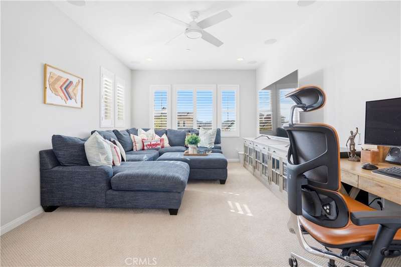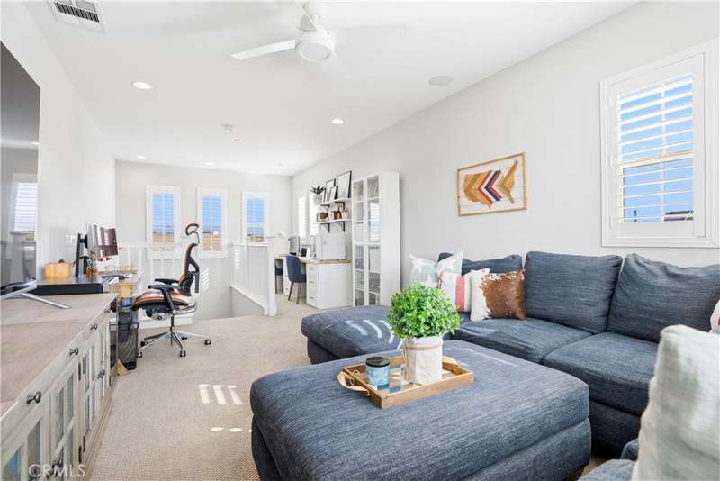 Welcome to 50 Promesa where design, comfort, and community meet. Located in Verandas, one of Rancho Mission Viejo's most loved neighborhoods, this 3-bedroom, 2.5-bath home with a large loft is beautifully upgraded and move-in ready. Step inside and you'll instantly feel the difference. The kitchen is a true showpiece floor-to-ceiling soft-close cabinetry with pull-out drawers, glass uppers with custom lighting, GE Cafe matte white appliances with gold accents, a herringbone backsplash, and a farmhouse sink that ties it all together. The oversized quartz island isn't just beautiful it's where everyone gathers. Upstairs, the primary suite feels like your own retreat with a custom wood accent wall, built-in dresser, integrated speakers, and an ensuite bath. Open the double French doors to your private balcony, the perfect place for your morning coffee or to wind down at sunset. Two additional bedrooms, a full bath, and a convenient upstairs laundry room complete the second floor. Head up to the third level and you'll find one of the home's best surprises, a private loft with built-in double desks, perfect for a home office, creative studio, or homework zone. The loft already has surround sound and is ready to transform into your own home theater or gaming room. Additional highlights include custom shutters throughout, epoxy-coated garage floors with built-in storage, and a 220V outlet for your EV. Best of all, the home comes with fully paid solar, keeping your energy bills low while you enjoy the California lifestyle. 50 Promesa combines thoughtful upgrades, flexible space, and that Rancho Mission Viejo charm that makes every day feel a little more special. Exclusive to Rancho Mission Viejo residents are all amenities in the Villages of Sendero, Esencia, Rienda, and future Villages. There are community amenities for all from breath-taking resort-style pools and spas, Esencia school K-8, community farms, fitness centers, guest house, putting green, bocce ball courts, tennis and pickle ball courts, playgrounds, coffee shop, fire pits, an arcade and so much more!