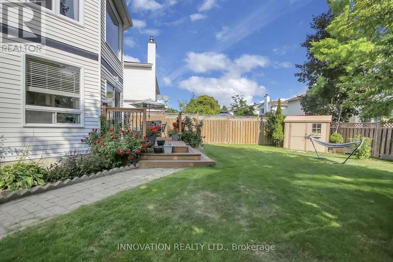 Immaculate. Updated. Spacious, this Bridlewood beauty is ready to welcome its next family. Dont miss it! Stunning 4-bedroom, 3-bathroom detached home with a finished basement, perfectly located on a family-friendly street, you will enjoy quick access to top-rated schools, parks, public transit, and every amenity Kanata has to offer. From the moment you arrive, the curb appeal and extensive updates make a lasting impression. Step inside to a bright and inviting layout featuring formal living and dining rooms, a sun-filled family room with cozy gas fireplace, and a renovated eat-in kitchen with sleek high-end stainless steel appliances. Oversized windows and a central skylight fill the main floor with natural light, complemented by gleaming hardwood floors. Upstairs, the massive primary suite boasts a spacious walk-in closet and a refreshed 5-piece ensuite. Three additional bedrooms are generously sized, served by a fully renovated main bath with glass shower. The finished lower level is a showstopper, offering brand new carpet, pot lighting throughout, and ample space for a recreation area, home office, or gym. Outdoors, enjoy a private, 119-foot deep fenced yard with a large deck, mature trees, and plenty of room for entertaining, family BBQs, or kids to play. The double garage and driveway for 4 cars add to the convenience, along with main floor laundry, powder room and a side entrance.Outdoors, enjoy a private, extra deep premium lot featuring fenced yard with a large deck, mature trees, and plenty of room for entertaining, family BBQs, or kids to play. The double garage and driveway for 4 cars add to the convenience, along with main floor laundry and a side entrance. This home has been meticulously maintained with thoughtful updates: garage slab, driveway, and doors (2017), fence (2016), furnace with blower (2009/2023), AC (2009), patio door and windows (2019). Truly move-in ready. (id:6509)