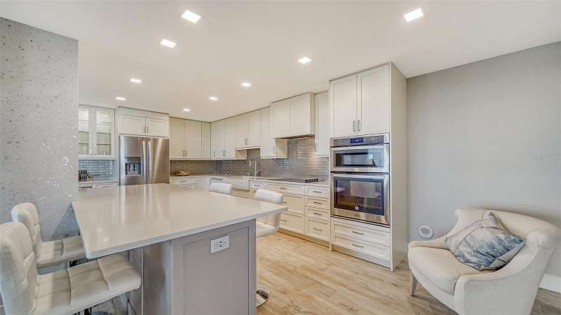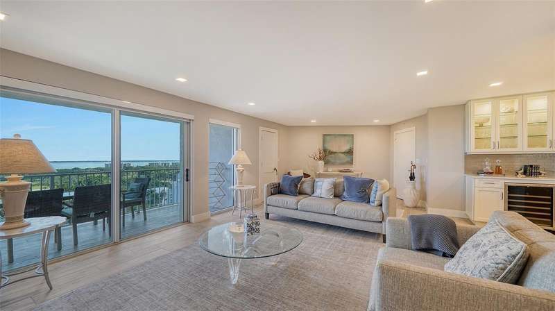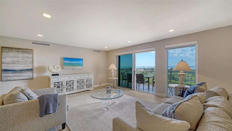 Wonderful "Manhattan Style" beachfront Condo with sweeping views of Sarasota Bay and views of the Gulf now available at the popular Islander Club on LBK. This gorgeous beachfront renovation was completed 4 years ago and truly shows all the craftmanship that went into the process under the owner's direction. Open kitchen beings the morning light into the room for enjoying your coffee or tea as you gaze across the sparking blue waters of the bay. Large 38ft balcony also has views of bay and a bit of the Gulf of Mexico. The Primary suite is a comfortable 13X20 which accesses the balcony and has a large walk-in closet. It is light and bright and a restful haven away from the main living area. The Islander club has recently renovated their clubhouse. The gym overlooks the gulf and the pool. There is a conference room, library, and an Olympic size heated pool, not to mention their Har-Tru tennis courts. The Location is very convenient. The shops of Bay Isles with the Publix and CVS are just a couple of minutes away. It's only 10 minutes to World renown St Armand Circle. Make this your permanent home or your week-end getaway. Secured Building . At The Islander Club "Everyday is a Holiday and Life is an endless vacation.