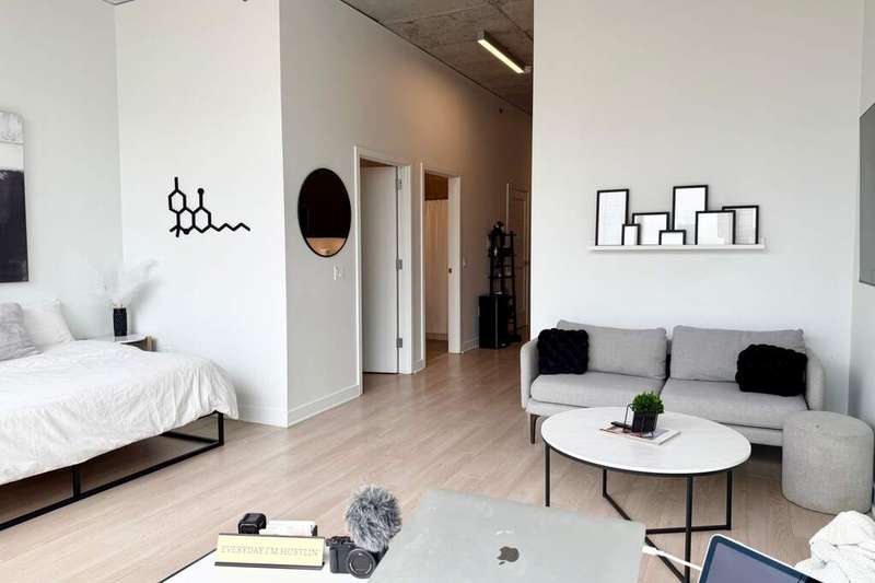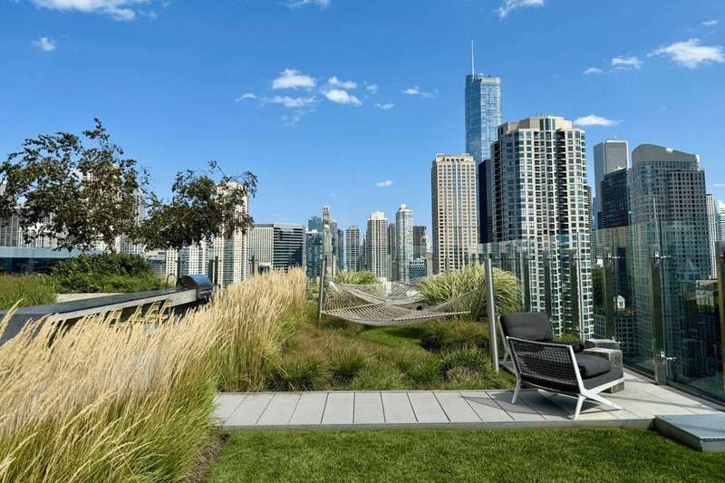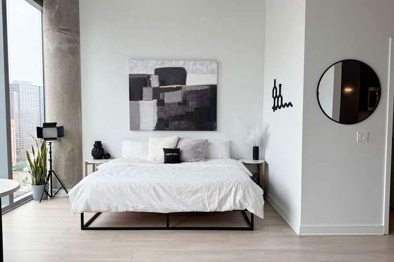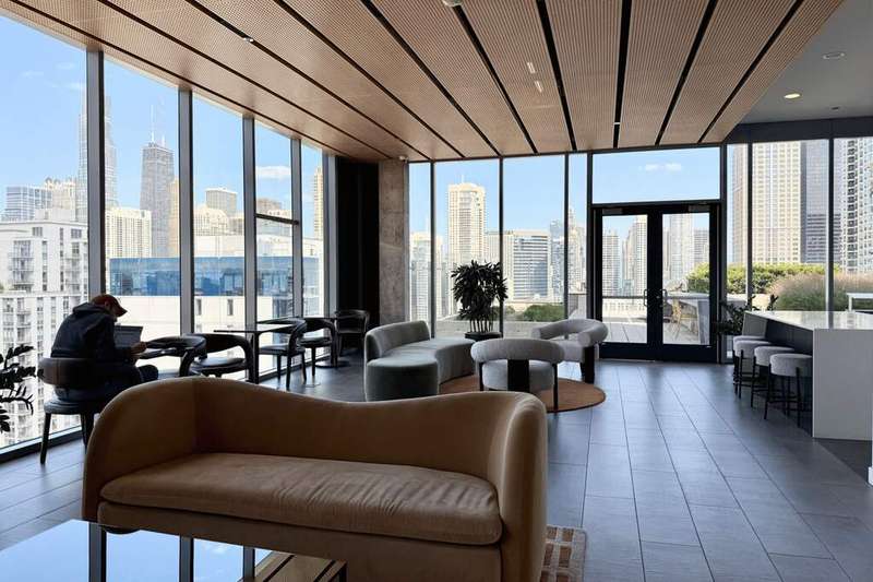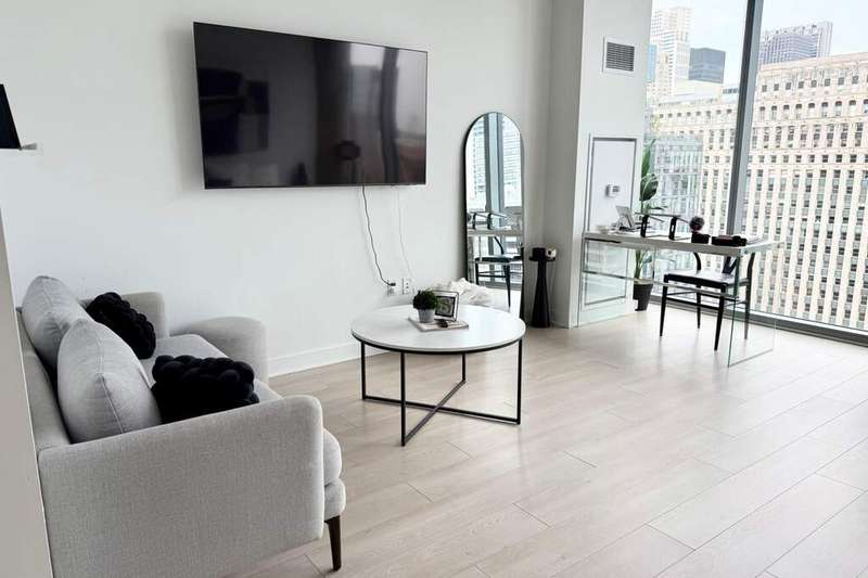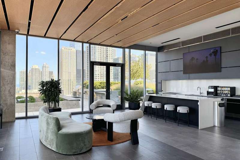Check out this stunning, bright and modern studio on the 19th floor, featuring 638 sq ft of thoughtfully designed living space and soaring 11' penthouse ceiling heights. Floor-to-ceiling, south-facing windows fill the apartment with natural light and offer stunning city skyline views. The home includes full-sized appliances, a spacious walk-in closet, and in-unit laundry for maximum convenience. Residents enjoy a wide range of building amenities, including a rooftop pool with grills, fitness center, coworking lounge with private rooms, pet spa and dog run, EV charging, bike storage, garage parking, and a 24/7 front desk with package lockers. Ideally located near East Bank Club, Clark Street dining, Kinzie nightlife, the Riverwalk, and the Brown Line at Merchandise Mart, this apartment combines light-filled modern living with easy access to everything the neighborhood offers. Garage parking in building available. This is a lease assignment available (Flexible start 10/15 - 11/1/2025) through 5/15/2026 with option to renew.