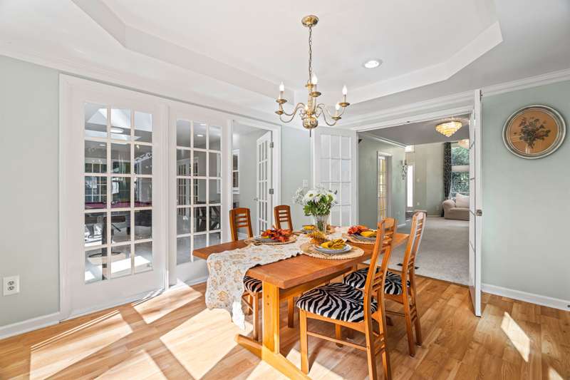 Experience the perfect blend of elegance, comfort, and modern upgrades in this beautifully appointed 4-bedroom, 2.5-bath traditional home located in the highly desirable Shepherd's Vineyard community in Apex, North Carolina. With 3,053 sq. ft. on a 0.29-acre lot, this residence offers both exceptional functionality and a refined lifestyle.The marble-tiled foyer, illuminated by an imported triple-pane Sch?co window and dramatic front door, features a stunning crystal chandelier, which makes a memorable first impression. Chandeliers in the living room area and formal dining room add a luxurious touch, creating the perfect atmosphere for hosting and entertaining.The primary suite serves as a private retreat, complete with a spa-inspired bathroom featuring a jetted soaking tub, sauna, bidet, and a home office?an ideal balance of comfort and practicality.The home's kitchen combines warmth and modern style with newly refinished oak cabinets, new stainless dishwasher, granite countertops, and a center island that is perfect for cooking or gathering. Kitchen French doors flow directly into the billiard room. A custom Sch?co door leads to the 2-car garage with brand-new steel insulated garage doors with glass windows, which elevate both curb appeal and energy efficiency.The billiard room with 3-panel Sch?co door, cheerful playroom, and cozy gathering room overlooking the vibrant banana tree provide distinct areas for relaxation, work, and entertainment. Tile flooring in both the kitchen and billiard room enhances durability and easy maintenance. Step outside to the back deck with a swinging hammock and al fresco dining space, offering the perfect setting for indoor-outdoor living.Each of the upper level four bedrooms features Pergo flooring and abundant natural light, adding warmth and charm throughout the home. Located within a convenient distance of the community clubhouse, pools, tennis, and beach volleyball courts, and just minutes from Apex Peakway, restaurants, shops, Apex Community Park Lake Pine trail, and the community library, this home blends suburban serenity with practicality.This Shepherd's Vineyard residence is more than a home?it's a sanctuary of comfort, style, and thoughtful design, offering multiple areas for living, entertaining, and unwinding in the heart of Apex.