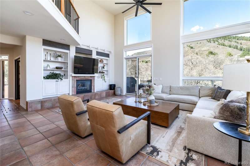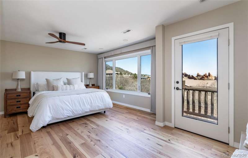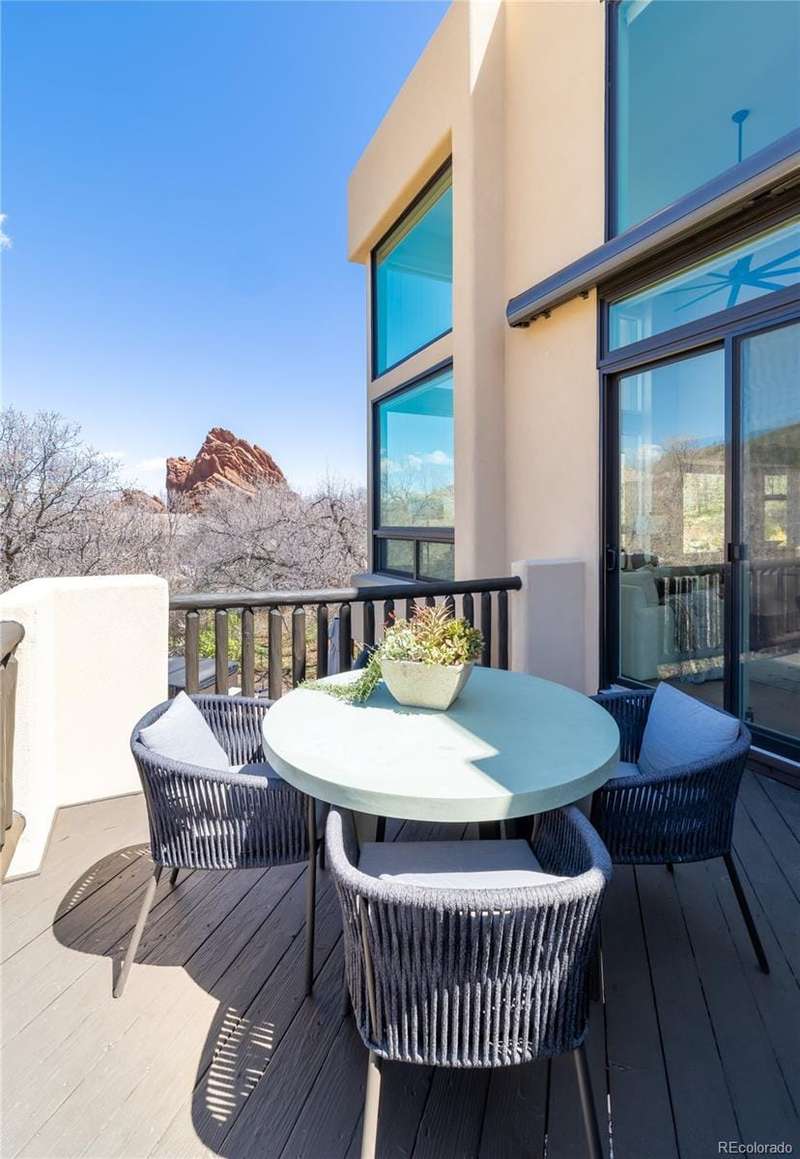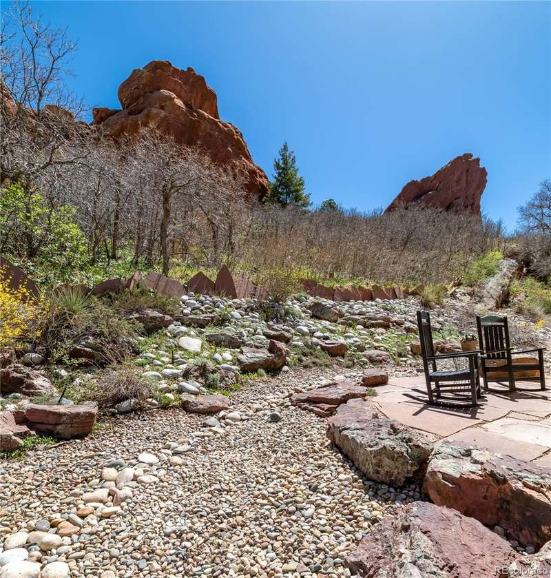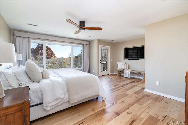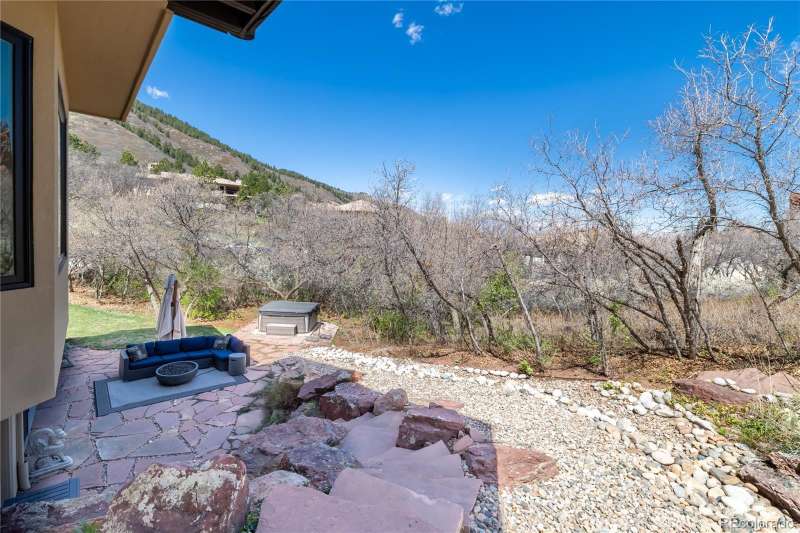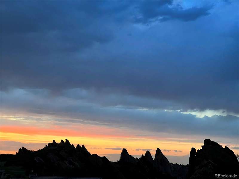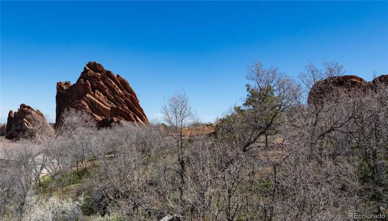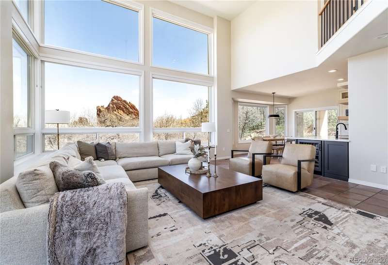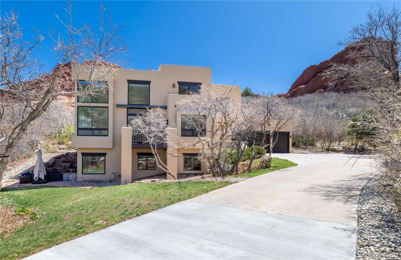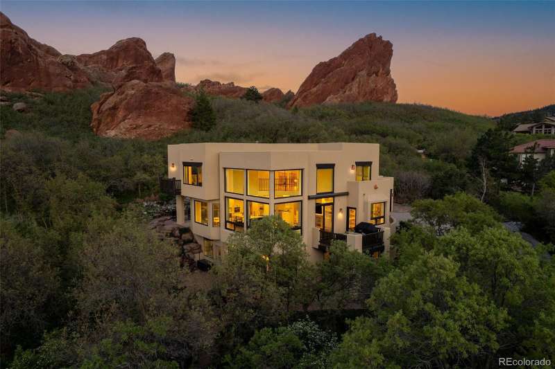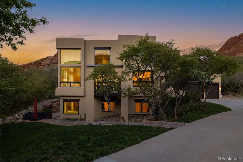 An inspiring setting amongst magnificent red rock formations, this newly renovated home merges seamlessly with its stunning surroundings. The striking contemporary residence has been crafted using the finest materials, perfect for entertaining as well as more intimate family gatherings. Recently replaced stucco + refinished deck, balcony, garage & front doors, and new concrete installed on portions of the front driveway. Freshly painted interior features newer kitchen & baths, new windows by Renewal by Andersen + new automatic blinds, interior fans & light fixtures throughout. Newer HVAC & upgraded electrical systems add to the impeccably maintained property. Enter to a large foyer with beautiful staircase, flanked by handsome study and formal dining room, each with access to patios. Chefs kitchen offers high-end appliances, custom cabinetry, quartzite countertops & marble tile backsplash, open to a sun-drenched breakfast room as well as double-height great room highlighted by tile floors, fireplace & built-ins + 2-story windows looking out to the deck/patio and huge expanses of scrub oak & natural grasses beyond, infusing the entire property with glorious views of the spectacular red rocks. Guest bedroom, powder room & remodeled laundry/mud room complete the main level. On the 2nd level you find a primary suite with newer wood floors, sitting area, balcony, dual walk-in closets & new, spa-like 5pc bath. Loft, bedroom en suite with full bath & 2 bedrooms with adjoining 4pc bath are also upstairs. Walkout level is comprised of spacious family room, 2 bedrooms, full 4pc bath, storage/mechanical as well as private nannys quarters including living room, bedroom, plus newer kitchen & full bath. Both areas open out to a large flagstone patio featuring newer hot tub, perfect for relaxation after hiking on the impressive 12 miles of private hiking trails in the community, or golfing on nearby Roxborough golf course, renowned as the most scenic golf course in Colorado.