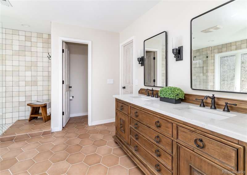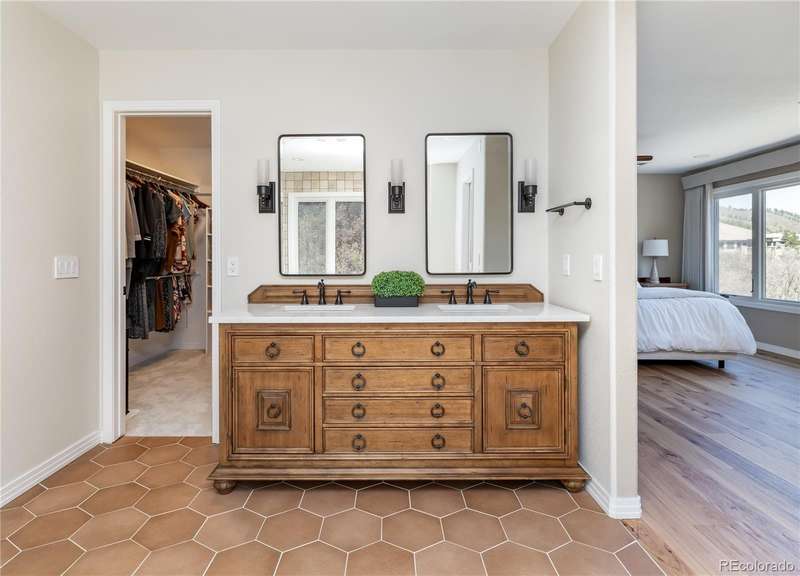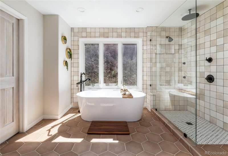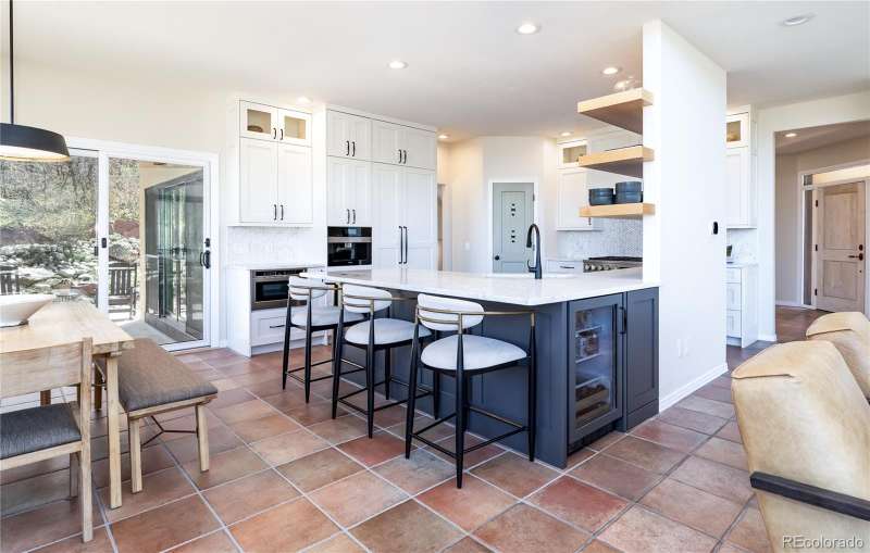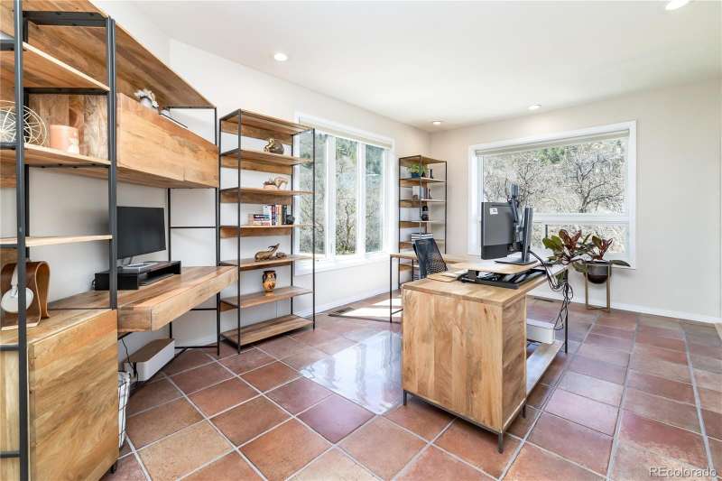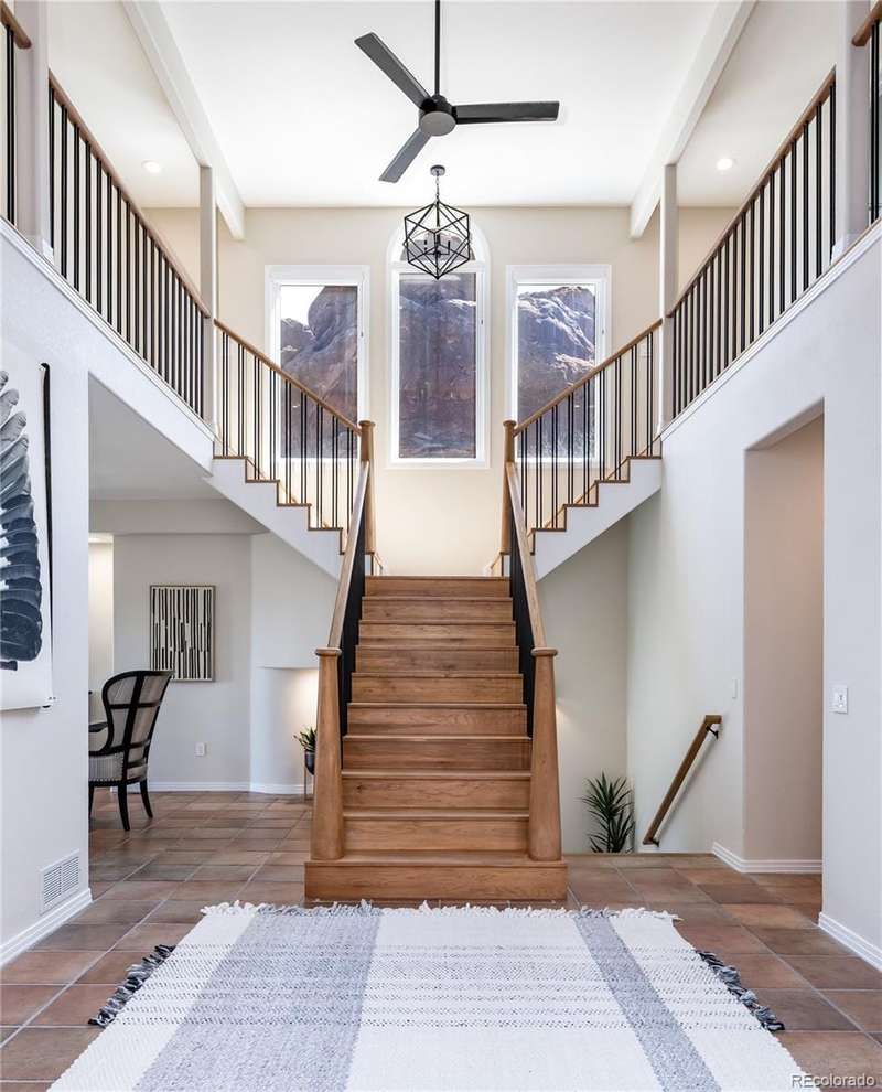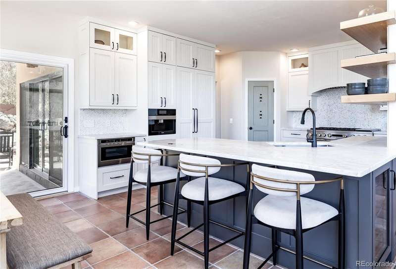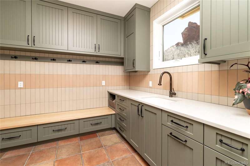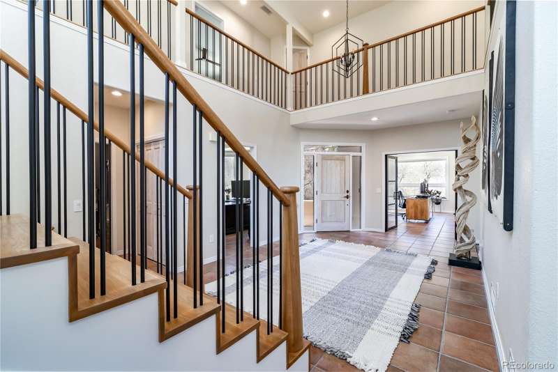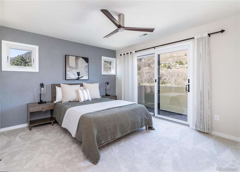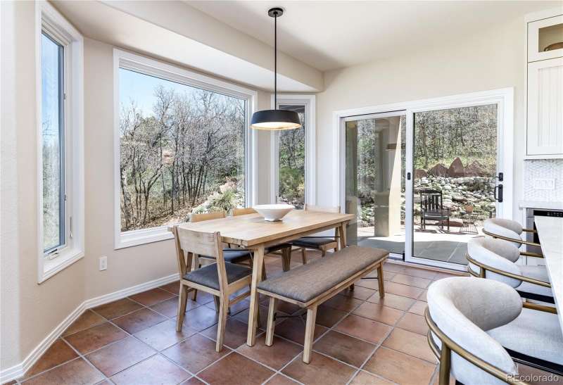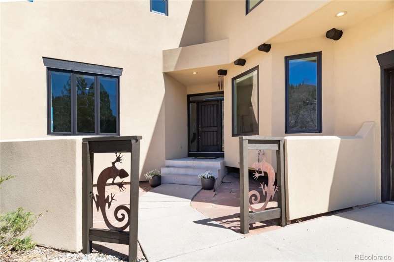 An inspiring setting amongst magnificent red rock formations, this newly renovated home merges seamlessly with its stunning surroundings. The striking contemporary residence has been crafted using the finest materials, perfect for entertaining as well as more intimate family gatherings. Recently replaced stucco + refinished deck, balcony, garage & front doors, and new concrete installed on portions of the front driveway. Freshly painted interior features newer kitchen & baths, new windows by Renewal by Andersen + new automatic blinds, interior fans & light fixtures throughout. Newer HVAC & upgraded electrical systems add to the impeccably maintained property. Enter to a large foyer with beautiful staircase, flanked by handsome study and formal dining room, each with access to patios. Chefs kitchen offers high-end appliances, custom cabinetry, quartzite countertops & marble tile backsplash, open to a sun-drenched breakfast room as well as double-height great room highlighted by tile floors, fireplace & built-ins + 2-story windows looking out to the deck/patio and huge expanses of scrub oak & natural grasses beyond, infusing the entire property with glorious views of the spectacular red rocks. Guest bedroom, powder room & remodeled laundry/mud room complete the main level. On the 2nd level you find a primary suite with newer wood floors, sitting area, balcony, dual walk-in closets & new, spa-like 5pc bath. Loft, bedroom en suite with full bath & 2 bedrooms with adjoining 4pc bath are also upstairs. Walkout level is comprised of spacious family room, 2 bedrooms, full 4pc bath, storage/mechanical as well as private nannys quarters including living room, bedroom, plus newer kitchen & full bath. Both areas open out to a large flagstone patio featuring newer hot tub, perfect for relaxation after hiking on the impressive 12 miles of private hiking trails in the community, or golfing on nearby Roxborough golf course, renowned as the most scenic golf course in Colorado.