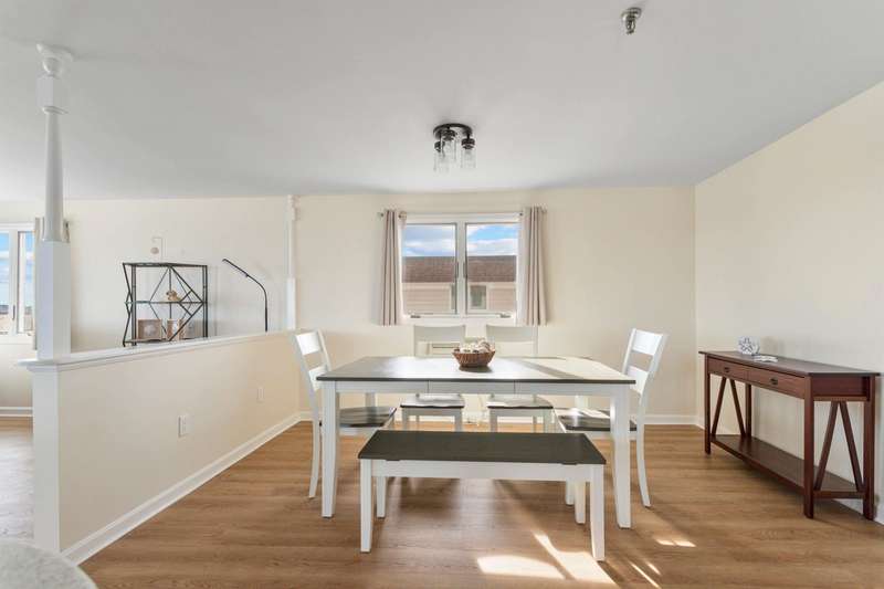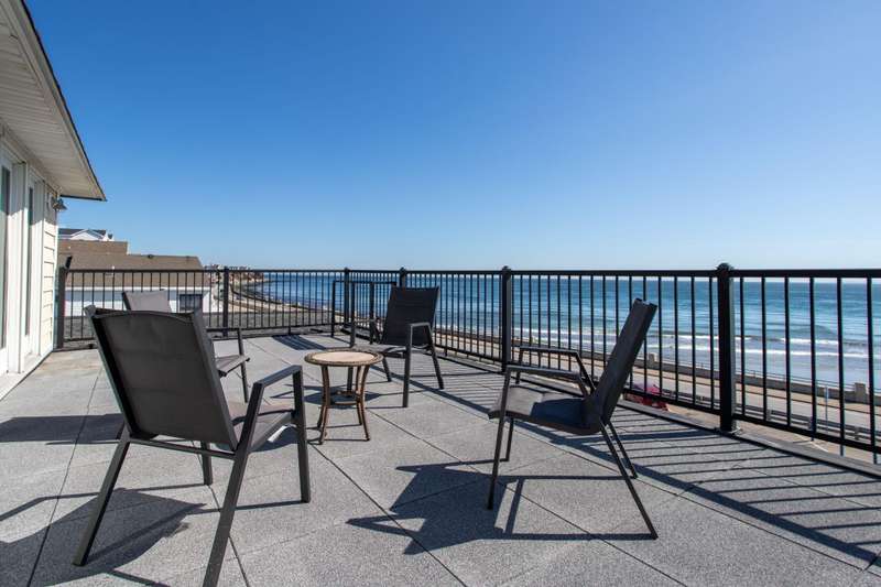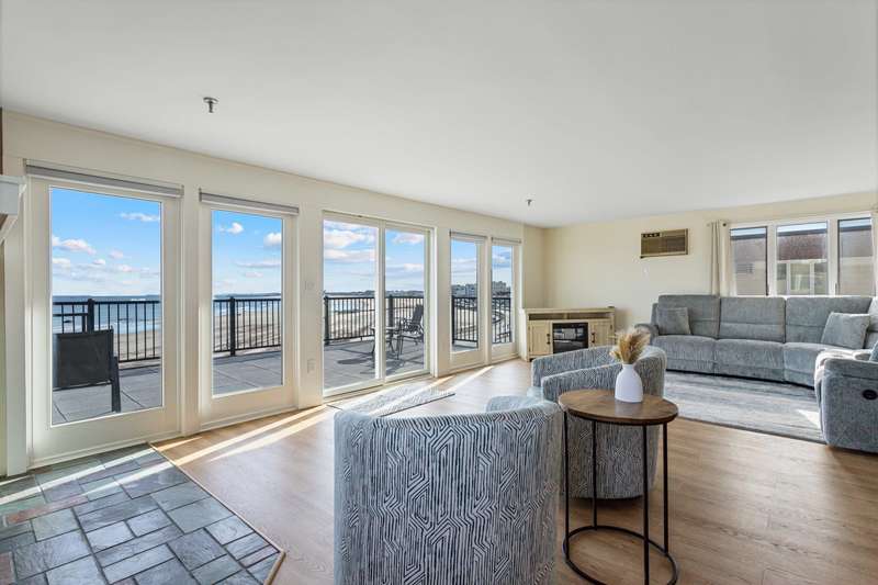 Enjoy oceanfront living in this beautifully furnished penthouse condo, available for a winter rental from September through May, with a flexible rental period offered by the landlord. This newly renovated end-unit features a spacious 12’ x 26’ private deck overlooking the ocean, an open-concept layout, brand-new flooring, fresh paint throughout, and updated bathrooms and kitchen. The living room, dining area, and bedrooms all boast panoramic ocean views, while the updated kitchen includes new stainless steel appliances and refreshed cabinetry. The sun-filled dining room is perfect for gatherings, and the primary bedroom suite offers a walk-in closet and a brand-new full bath. Two additional bedrooms, another full bath, and a laundry room complete the interior. With two garage parking spots, you’ll also enjoy the convenience of being within walking distance to local restaurants, shops, and seasonal attractions. Weekly summer fireworks can be viewed right from your private deck. Please note, the building does not have an elevator and pets are not allowed. This is a rare opportunity to enjoy the beauty of the coast during the quieter months in a stylish, turnkey space.