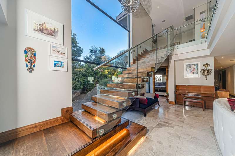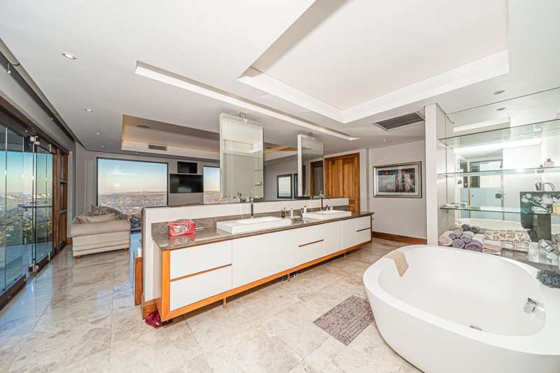 Northcliff Hill?ÇÖs Pinnacle of Prestige- Where Elevated Living Meets Breathtaking Horizons Perched high above Johannesburg on the most coveted slopes of Northcliff Hill, this architectural masterpiece redefines luxury, privacy, and scale. Resting on a 4,700sqm north-east facing estate and offering an impressive 880sqm under roof, it is a private sanctuary where every detail has been curated for an unrivalled lifestyle. Tucked discreetly away from the road, the home unveils itself through landscaped perfection - manicured gardens, mature trees, and panoramic vistas stretching as far as the eye can see. Here, sunrises and sunsets are not just admired - they are lived. Opulent Accommodation Five palatial, light-filled bedroom suites each boast walk?Çæin closets and spa?Çæinspired en?Çæsuite bathrooms, designed for ultimate comfort and seclusion. The primary suite commands awe?Çæinspiring city views, creating a daily backdrop of pure magic. The Heart of the Home At its centre lies a gourmet chef?ÇÖs kitchen, where sleek integrated SMEG appliances meet exceptional function - complete with a butler?ÇÖs walk?Çæin fridge, dedicated pantry, and offset scullery. This culinary haven seamlessly connects to expansive formal and informal lounges, a sophisticated dining room, a stylish bar, a TV lounge, and a private office. Every space flows effortlessly onto glass-framed balconies that embrace the Johannesburg skyline. A Resort?ÇæStyle Lifestyle Crafted for both relaxation and entertainment, the property offers a host of world-class amenities: ?Çó Sparkling pool with sun?Çæsoaked deck and fully equipped pool bar ?Çó Indoor and outdoor gym facilities ?Çó Private rooftop soccer pitch ?Çó Jacuzzi under the stars ?Çó Wood?Çæfired pizza oven nestled beneath romantic grapevines ?Çó State?Çæof?Çæthe?Çæart cinema room for unforgettable movie nights Additional Excellence Completing the picture are a fully self-contained one-bedroom flatlet, three-bedroom staff quarters, and garaging for four cars. Comfort is ensured with underfloor heating, a central air-conditioning system, home automation, generator, central vacuum system, borehole, sprinkler system, and solar geysers. This is not merely a home - it is a statement of achievement and a legacy in the making. For those who demand nothing less than extraordinary, Northcliff Hill?ÇÖs finest offering awaits.