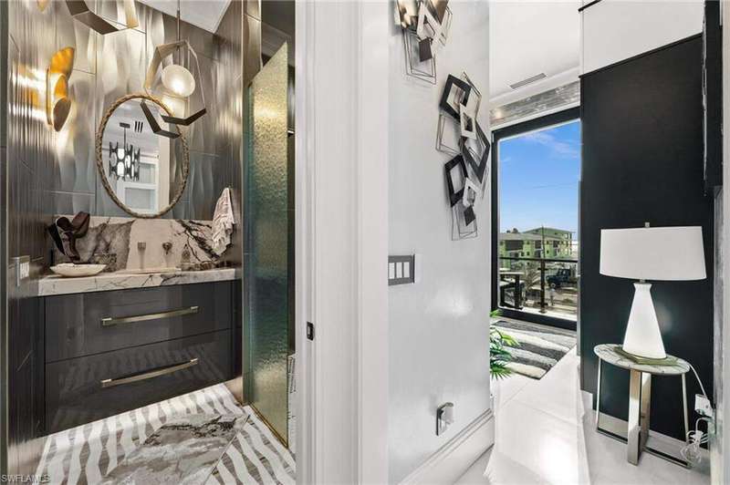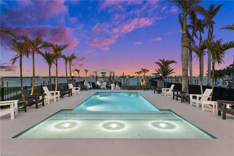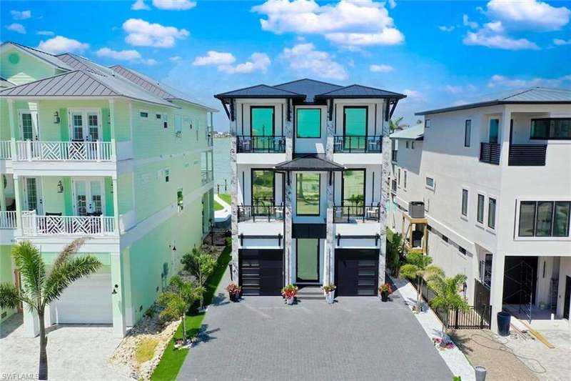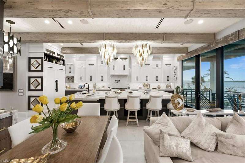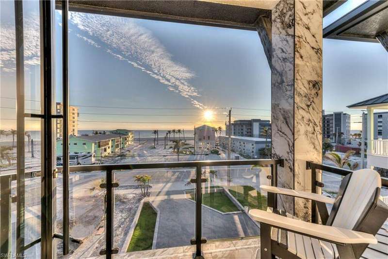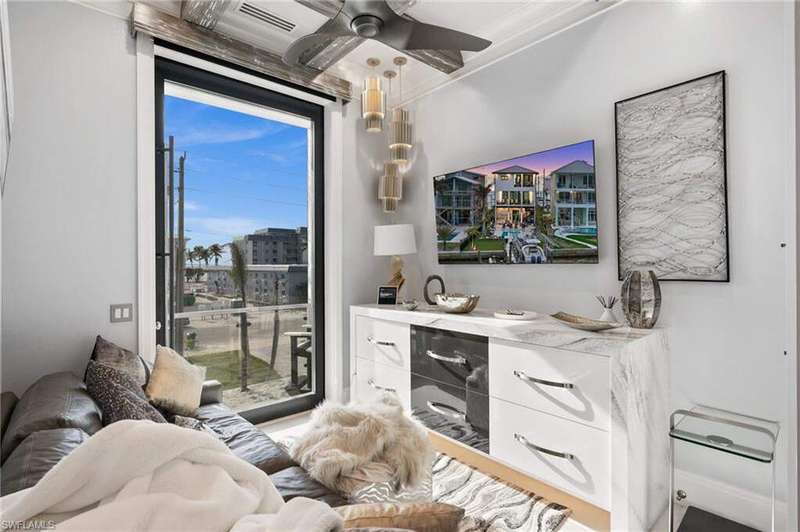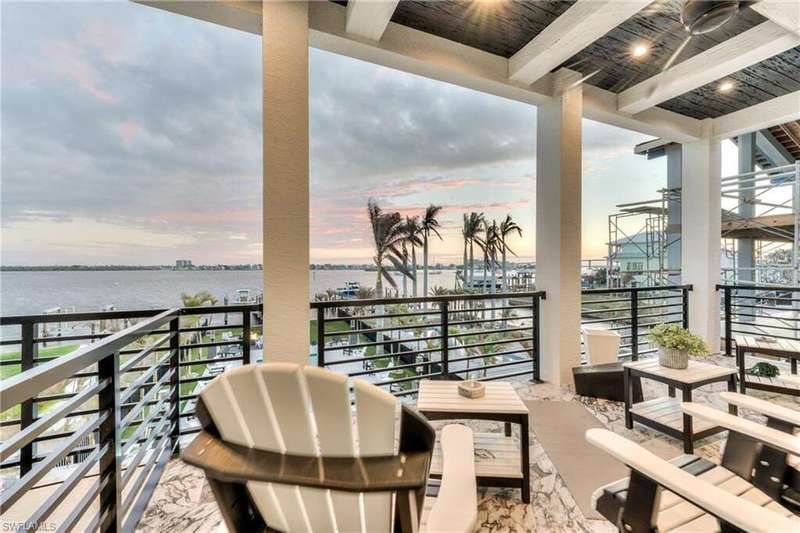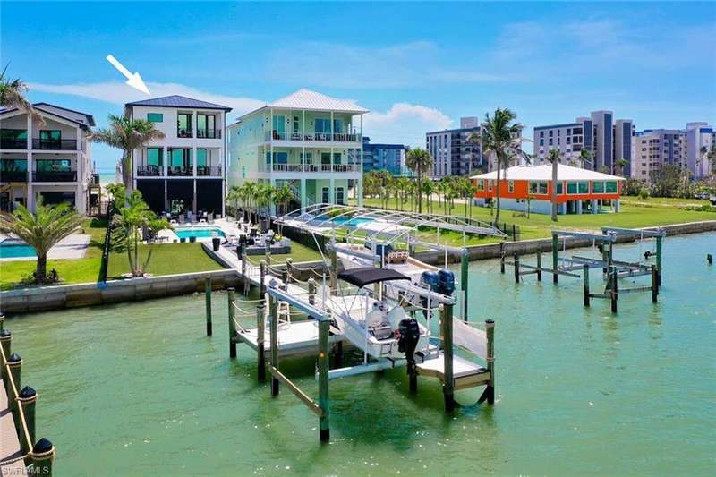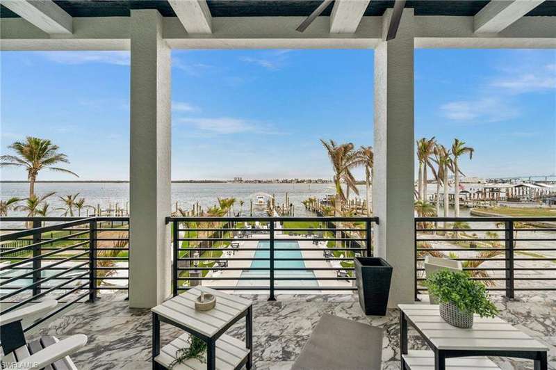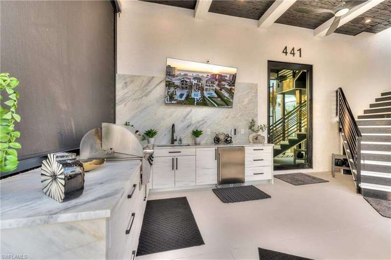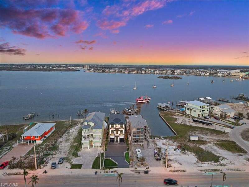441 seamlessly merges modern luxury with coastal elegance while featuring 4 bedrooms and 4 bathrooms. This architectural masterpiece is designed for those who demand the unparalleled. Elevated to perfection, this home features 30-inch reinforced concrete slabs, PGT windows with advanced tinted glass, 2 Insta-hot Water Heaters, and a robust 24-gauge standing seam metal roof. The expansive bayside veranda offers panoramic views of San Carlos Bay and radiant sunrises. Inside, a symphony of curated details creates an ambiance of refined elegance. Architectural resin pecky cypress beam ceilings, monolithic quartzite slab surfaces, and Lauriermax cabinetry add depth and texture. A Sonos entertainment system, smart-controlled blinds, and a full-spectrum LED lighting design enhance modern living. The gourmet culinary space is a showpiece, with a Wolf gas 6-burner stove, Sub-Zero panel refrigerator, quartzite surfaces, and integrated barista system. The living and dining areas are adorned with polished 24"x48" flooring, custom cabinetry, interior gas fireplace, and unobstructed bayfront views. 2 Guest bedrooms offer luxury en-suite baths, while all bathrooms are highlighted by quartzite counters, custom cabinetry, and spa-like showers. All bedrooms offer a private balcony. The owner's suite features a hydrotherapy jet tub, walk-in wardrobe, custom finishes and serene views of the Bay. The exterior is a private oasis with an alfresco culinary space including roll down screens and shutters, a pool featuring custom underwater seating, Outdoor fire pit, Florida landscaping with artificial grass (no cutting!) plus Native palm trees and plants with hydration system. Walk out to the high-performance dock with 2 boat lifts: one up to 15,000 lbs and one up to 6,000lbs, and a brand new seawall! The intricate details and bespoke appointments are abundant, defying description-A true masterpiece that must be experienced to be fully appreciated.
