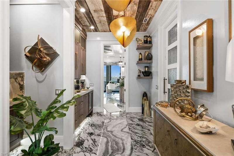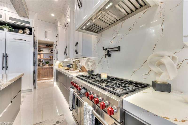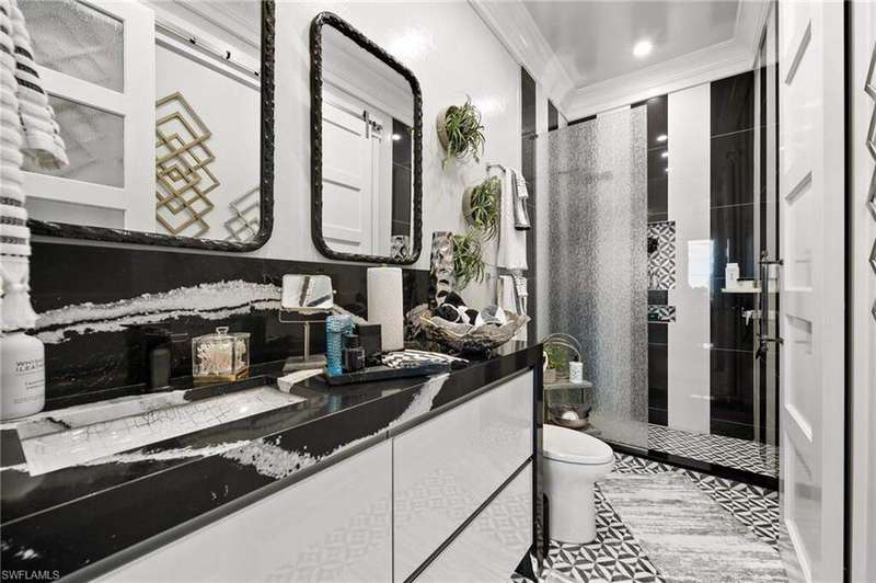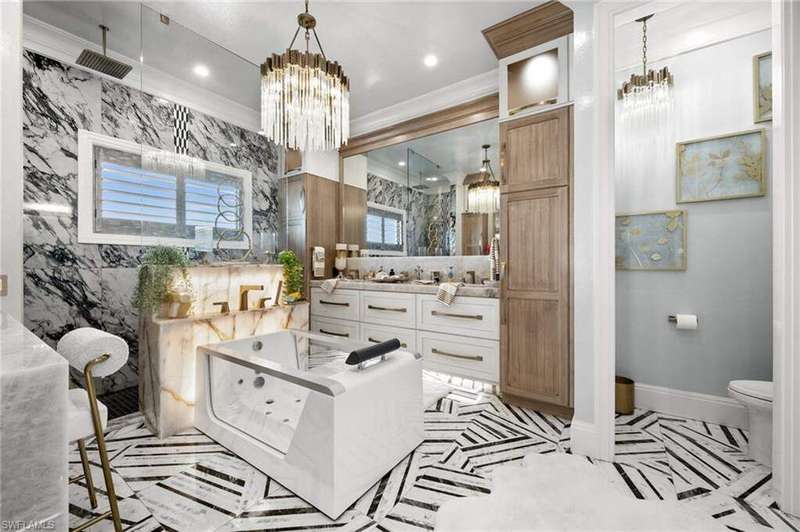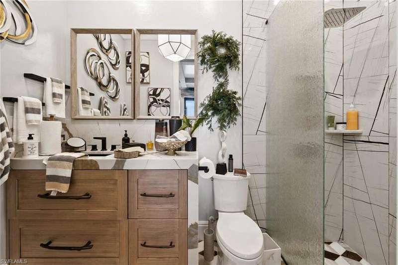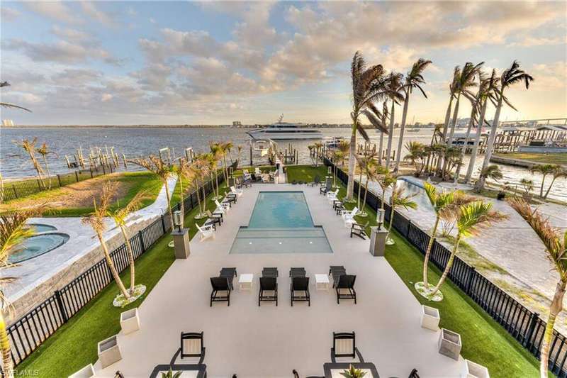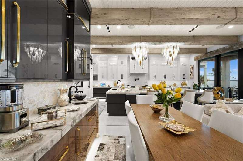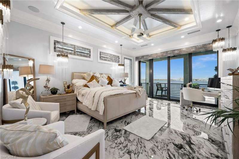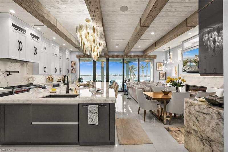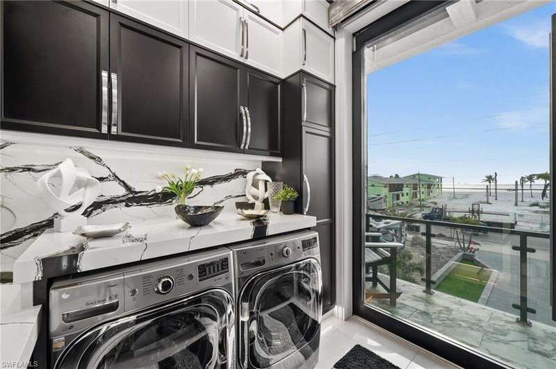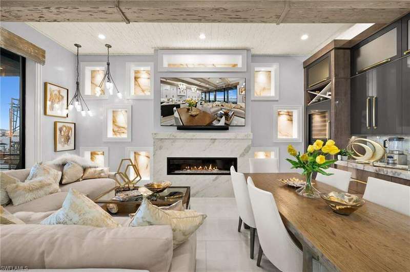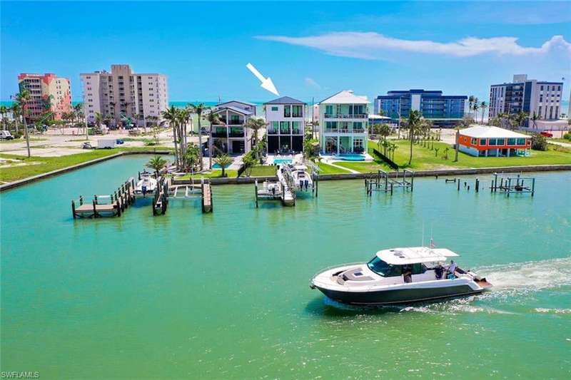 441 seamlessly merges modern luxury with coastal elegance while featuring 4 bedrooms and 4 bathrooms. This architectural masterpiece is designed for those who demand the unparalleled. Elevated to perfection, this home features 30-inch reinforced concrete slabs, PGT windows with advanced tinted glass, 2 Insta-hot Water Heaters, and a robust 24-gauge standing seam metal roof. The expansive bayside veranda offers panoramic views of San Carlos Bay and radiant sunrises. Inside, a symphony of curated details creates an ambiance of refined elegance. Architectural resin pecky cypress beam ceilings, monolithic quartzite slab surfaces, and Lauriermax cabinetry add depth and texture. A Sonos entertainment system, smart-controlled blinds, and a full-spectrum LED lighting design enhance modern living. The gourmet culinary space is a showpiece, with a Wolf gas 6-burner stove, Sub-Zero panel refrigerator, quartzite surfaces, and integrated barista system. The living and dining areas are adorned with polished 24"x48" flooring, custom cabinetry, interior gas fireplace, and unobstructed bayfront views. 2 Guest bedrooms offer luxury en-suite baths, while all bathrooms are highlighted by quartzite counters, custom cabinetry, and spa-like showers. All bedrooms offer a private balcony. The owner's suite features a hydrotherapy jet tub, walk-in wardrobe, custom finishes and serene views of the Bay. The exterior is a private oasis with an alfresco culinary space including roll down screens and shutters, a pool featuring custom underwater seating, Outdoor fire pit, Florida landscaping with artificial grass (no cutting!) plus Native palm trees and plants with hydration system. Walk out to the high-performance dock with 2 boat lifts: one up to 15,000 lbs and one up to 6,000lbs, and a brand new seawall! The intricate details and bespoke appointments are abundant, defying description-A true masterpiece that must be experienced to be fully appreciated.