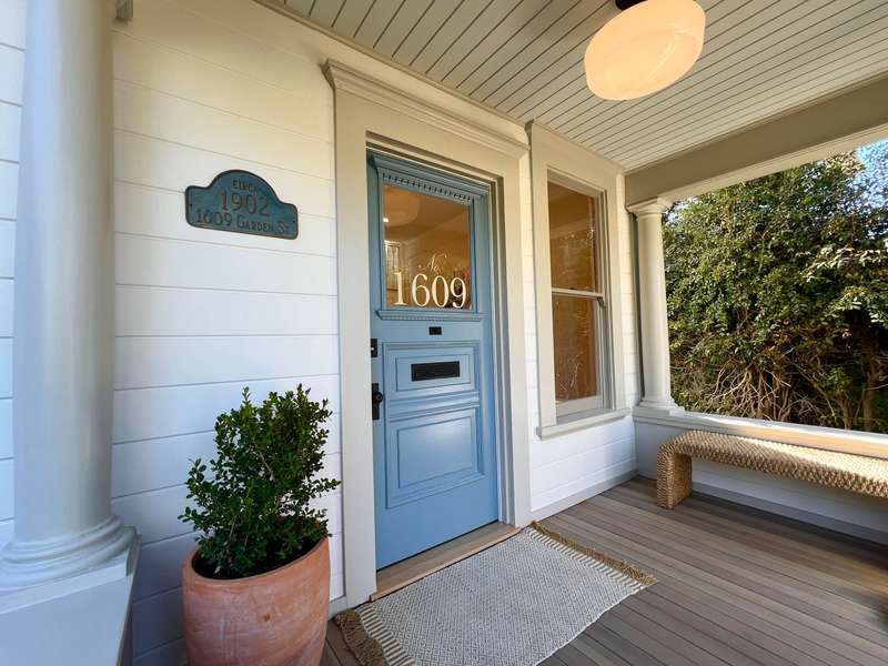 Upstairs, the well-thought-out living area consists of three bedrooms and two bathrooms, including the primary suite. The spacious primary suite features a charming, enclosed sitting porch, custom walk-in closet, and a bathroom with a double vanity, soaking tub, walk-in shower and separate water closet. Additionally, there is a large attic loft accessed by a spiral staircase that would make a perfect office, exercise room or play area.