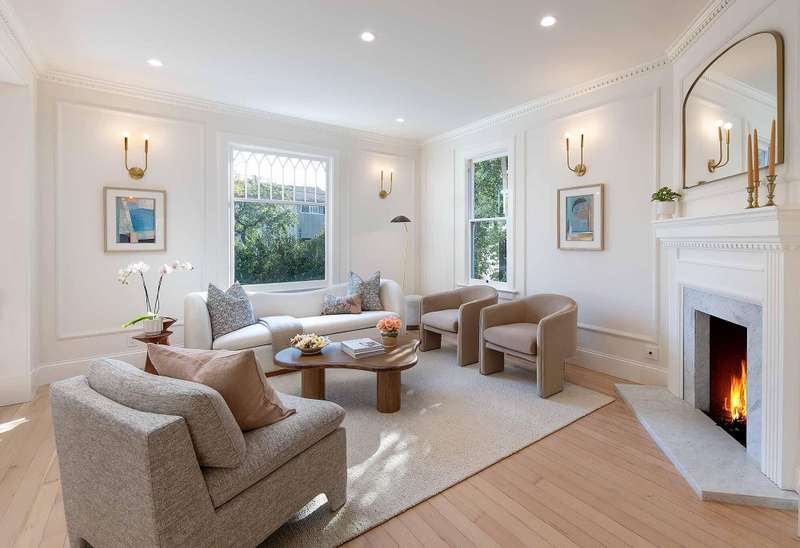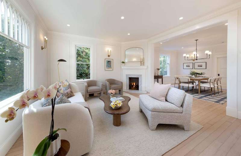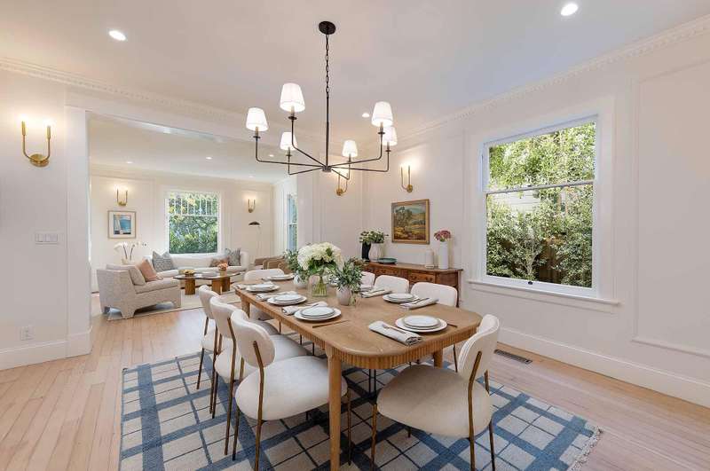 Step inside from the veranda into the stunning parlor with soaring ceilings, the original front door, detailed wood moldings, a powder room, natural light and beautifully restored Douglas fir floors. The downstairs level features a living room with a charming hearth and formal dining room off the open gourmet kitchen, equipped with professional Wolf range, generous island seating, and dedicated beverage bar--a dream for home chefs and entertainers alike. The thoughtful kitchen redesign also includes a walk-in pantry and laundry area. An ensuite bedroom or flex-room is also located downstairs, perfect for visiting guests.