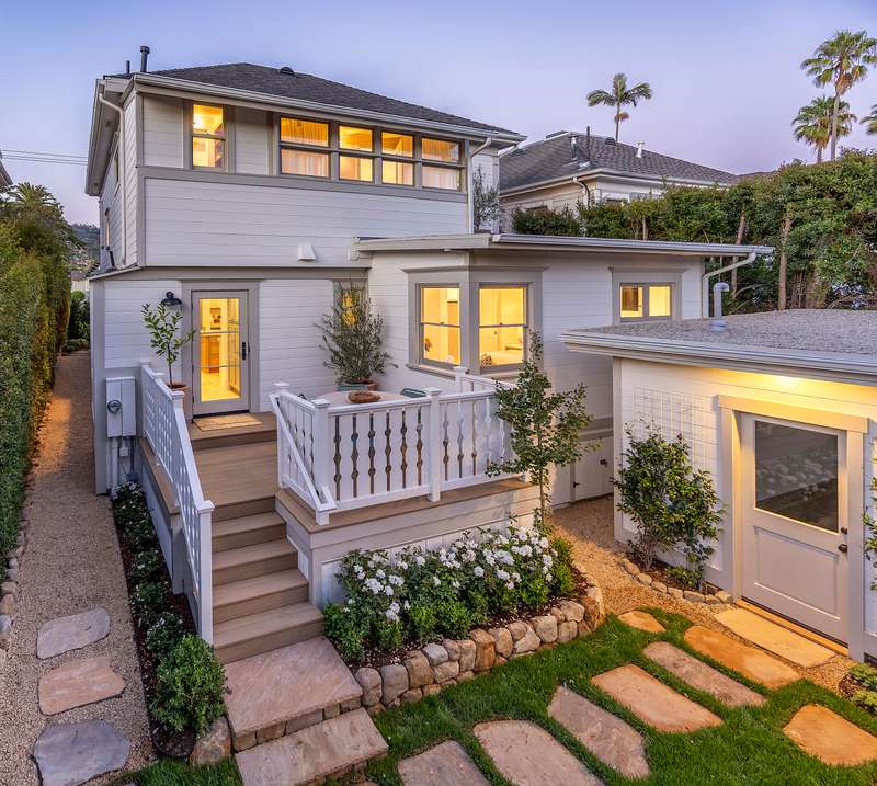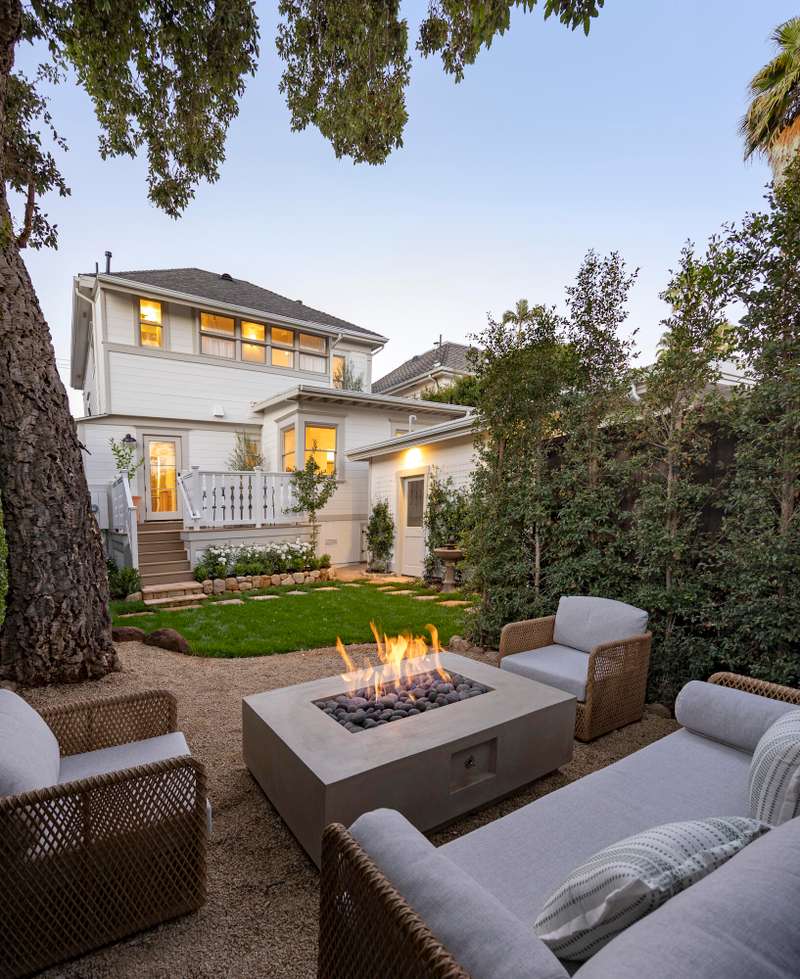 Stepping outside, the living area extends to the outdoor dining deck and inviting garden with an outdoor fire pit, seating area, fountain and lawn. The property is gated and fenced, with a private rear alley entrance to the garage. A short walk to the best Santa Barbara has to offer, including the vibrant Arts District, Farmers' Market, Public Market, and beloved local restaurants. Add in the benefits of eligibility for the Mills Act, providing potential property tax reductions, and this home presents an exceptional opportunity. Don't miss your chance to own a piece of Santa Barbara history, where elegance meets modern living.