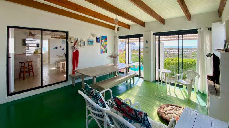 Embrace the Coastal Lifestyle in Dwarskersbos Nestled in the exclusive Kersbosstrand, this coastal haven offers an unparalleled lifestyle where the rhythm of the waves becomes your daily soundtrack. Welcome to a residence where comfort and the allure of beachside living converge seamlessly. A Home Designed for Coastal Living This double-story property provides the ultimate coastal living experience. As you enter the home, you are greeted by a well-sized entertainment braai room with breathtaking sea views. Leading through sliding doors, you'll find the garden area, creating the perfect setting for outdoor gatherings and leisurely afternoon sunsets. Spacious and Functional Interior The well-sized kitchen is user-friendly with ample packing space, a walk-in pantry, a center island with its basin, and a convenient separate scullery. From the kitchen, you pass the bar as you walk into the living area consisting of a dining-lounge area with a built-in fireplace, creating a harmonious space perfect for relaxation and entertaining family and friends. Luxurious Master Suite and Guest Accommodations The downstairs guest bedroom with an en-suite bathroom is fitted with a shower and bath. Ascending to the upper level, you'll discover the master sleeping quarters leading out to its balcony with the most beautiful sea views. A bonus is the walk-in cupboard and dressing room complete with an en-suite bathroom with a walk-in shower. Ample Parking and Storage The house has an extra-large single garage with a double carport that can accommodate 2 cars. The spacious back yard offers room for more parking and also the possibility to build a "Granny Flat". Investment Opportunity with Proven Income This property offers a fantastic opportunity for investors, with a history of excellent guest reviews and consistent holiday bookings. It can also be the perfect retirement home or a tranquil escape for those seeking a life by the sea. Unparalleled Coastal Lifestyle Wake up to the sound of waves crashing on the beach while enjoying a cup of coffee on the balcony as you watch the sunrise. This can be a great money-generating income, which already has a fully booked history on lekkerslaap with great reviews, or just that beautiful retirement home you have been dreaming of. Discover the Beauty of the West Coast The area offers great spots for fishing, crayfish diving, water skiing on the Berg River, paddling, bird watching, 4x4 trails, and much more. Convenient Location Dwarskersbos is less than two hours drive from Cape Town International Airport. Vredenburg is 25 minutes from Dwarskersbos, providing convenient access to a private hospital, a state-of-the-art shopping mall, "The Wekus Mall" offering restaurants, Woolworths, Checkers, Pick & Pay, clothing stores, Dischem, and Clicks to mention a few. Your Coastal Haven Awaits Don't miss this opportunity to embrace the coastal lifestyle in Dwarskersbos. Contact us today to schedule a viewing and make this exceptional property your own.