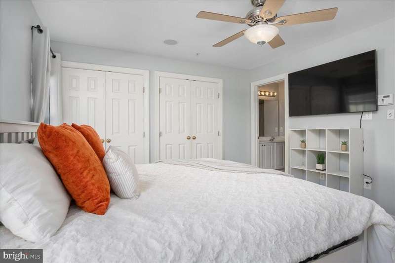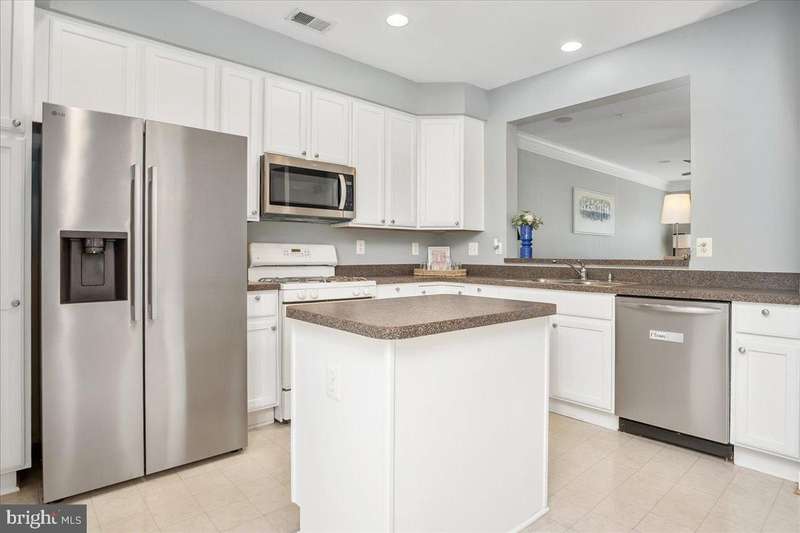 Welcome home! This beautifully maintained two-level condo offers the perfect blend of space, comfort, and convenience. With 2 large bedrooms, 2.5 baths, and a bright open-concept main floor, this home is ideal for easy living and effortless entertaining. The kitchen features freshly painted white cabinetry, a spacious center island, and upgraded appliances - all opening to a large deck, perfect for relaxing or hosting friends. Neutral paint tones, elegant crown molding, and thoughtful updates give this home a modern, move-in-ready feel. Upstairs, the primary suite easily accommodates a king-sized bed and includes a private bath with excellent storage. The secondary bedroom is bright and spacious, and the upper-level laundry adds everyday convenience. Recent updates include a Natural Gas HVAC (2022), new hot water heater (2025), and newer microwave, dishwasher, and refrigerator - giving you peace of mind for years to come. Enjoy NO city taxes and a prime location close to commuter routes, shopping, dining, and recreation. Everything you need is right here - schedule your showing today and discover why this one feels like home the moment you walk in!