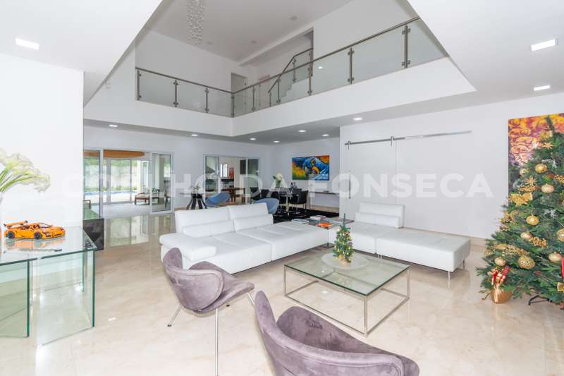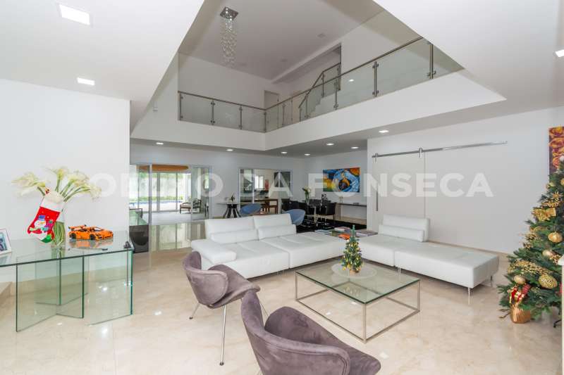 Casa de 691m² de bom gosto ambientes claros. Possui 05 suítes espaçosa e luxuosa, elevador, escritório, home theater e uma garagem para 08 carros, adicionando comodidade e conforto.