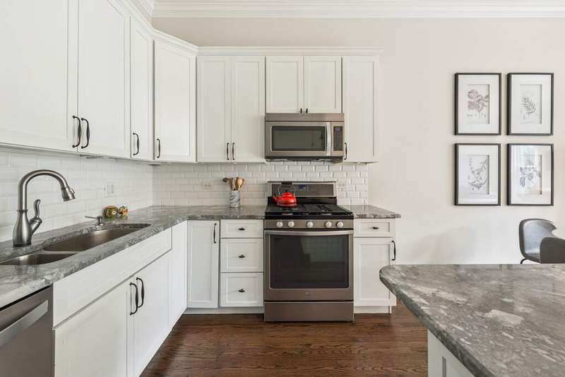 Located in the heart of Roscoe Village within the coveted Level 1+ Audubon School District, this spacious 3Bd/2.5Ba home in an elevator building offers the perfect blend of style and convenience. The open-concept living and dining room features soaring 10' ceilings, 8' doors, a gas starter fireplace, hardwood floors throughout, floor to-ceiling windows, and a Juliet balcony that fills the home with natural light. The airy primary suite includes a large walk-in closet and a luxurious ensuite bath with dual vanity, water closet, and a full-body spray shower. Two additional generously sized bedrooms share a full bath, plus a convenient powder room and laundry closet. Enjoy coveted garage parking, a private roof deck and additional storage. Recent updates include fresh paint throughout, refinished/stained hardwood floors, new lighting and faucets, new hardware in kitchen & bathrooms, painted cabinetry and added soft close, quartz countertops in all bathrooms, new mirrors in all bathrooms and new can lighting throughout. Move right in and enjoy modern living in one of Chicago's most vibrant neighborhoods.