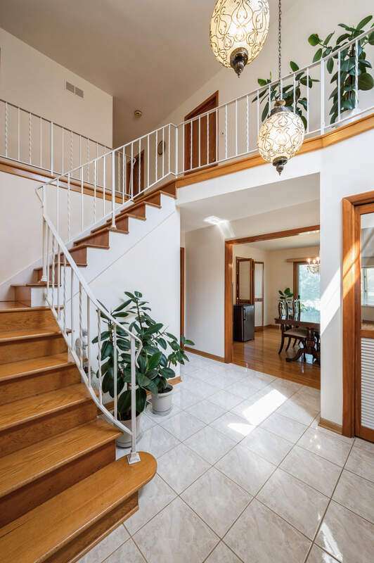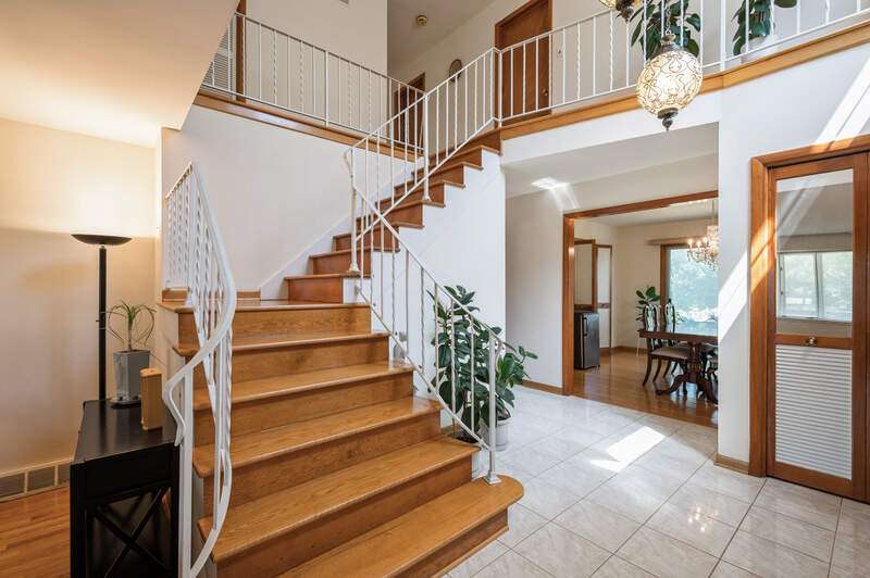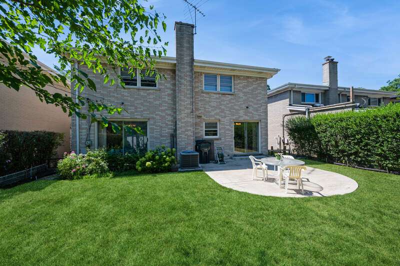 Pristine single-family home in the heart of Lincolnwood featuring a two-car attached garage and a large, private backyard-perfect for family living and entertaining. This meticulously maintained home offers four generously sized bedrooms on the upper level and a functional, flowing layout throughout. The welcoming two-story foyer is filled with natural light and showcases an extra-wide, winding hardwood staircase. The sun-filled living room features a charming bay window with a window seat overlooking the front yard. A separate formal dining room provides easy access to both the kitchen and backyard via a sliding glass door. The updated eat-in kitchen boasts granite countertops, stainless steel appliances, and a bright breakfast area with direct access to the patio and yard. The main level also includes a spacious paneled family room, hardwood floors throughout (tile in foyer), a convenient first-floor laundry room, and a powder room. Upstairs, you'll find four large bedrooms-all with expanded closets. Three bedrooms share a full bath with a skylight, while the primary suite includes a spacious walk-in closet, separate dressing area with vanity, and a private bath. The upper hallway is bright with hardwood flooring and a large window for added light. All bedrooms are carpeted for comfort. The large, dry basement offers endless possibilities for finishing or storage. Additional recent updates include a newer furnace and A/C (2022), newer water heater, and fully redone concrete work including driveway, entryway, patio, and walkway. Located just off Touhy Avenue, east of the Edens Expressway-offering easy access to downtown, top-rated schools, excellent restaurants, beautiful parks, shopping, and more. A truly move-in ready home in an unbeatable location!