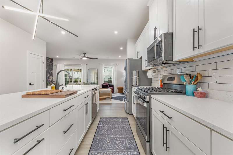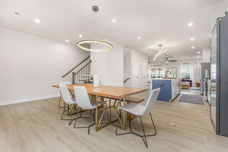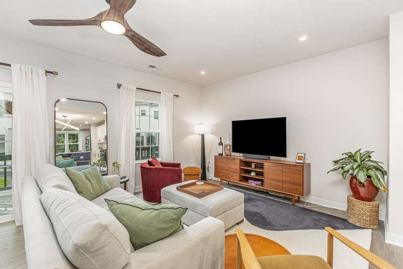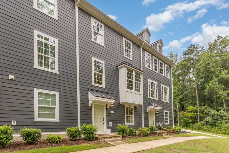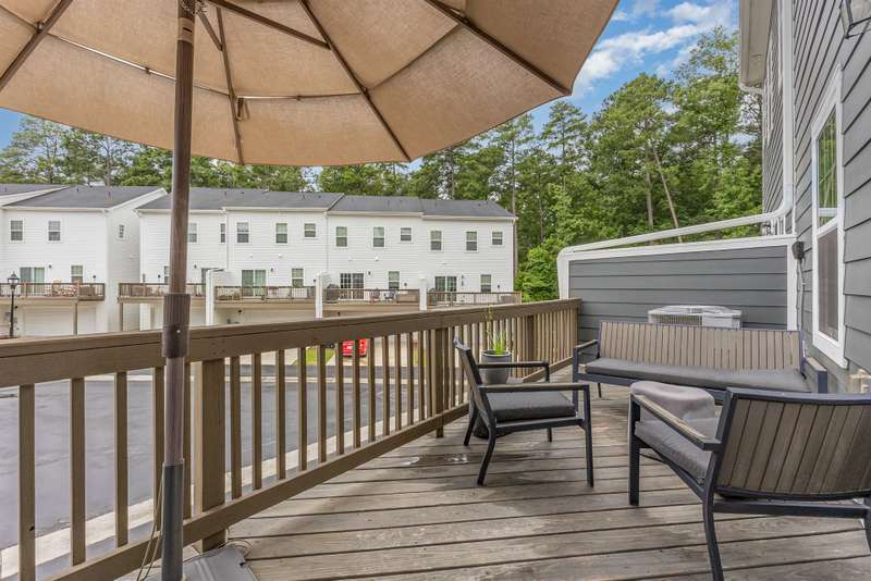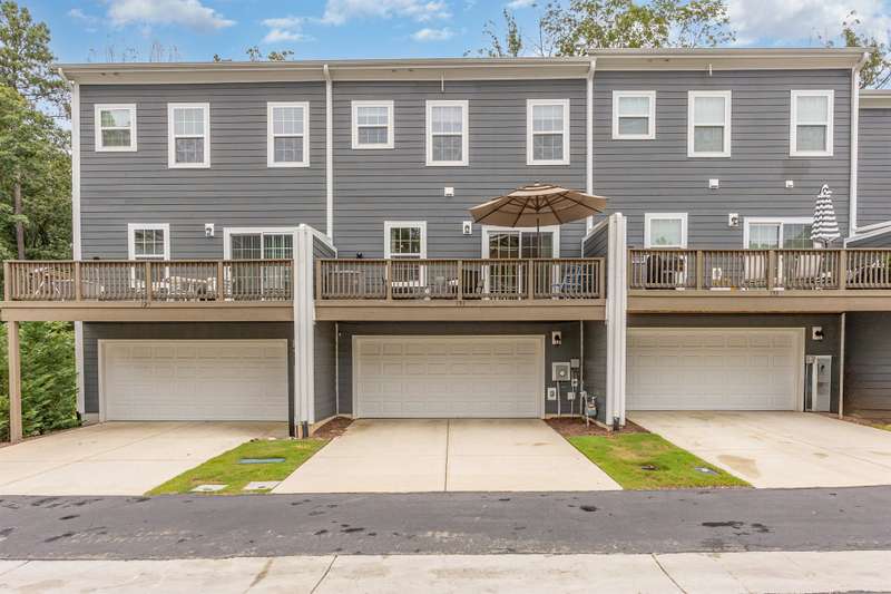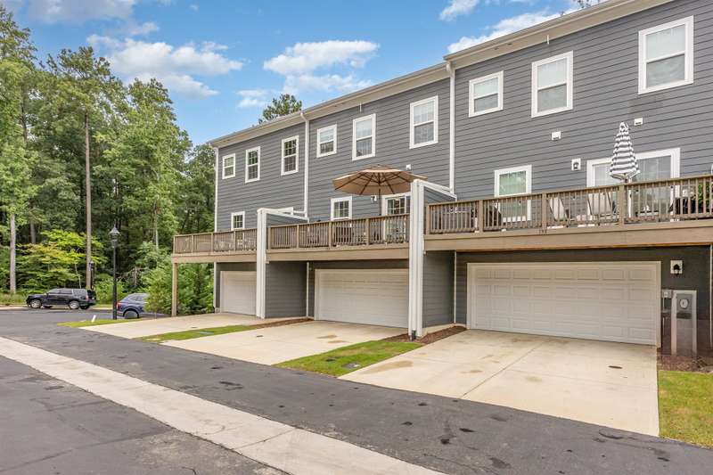 Turnkey living in the heart of South Durham! Built in 2022 and thoughtfully upgraded beyond builder-grade finishes, this beautifully maintained townhome offers wooded views, abundant natural light, and a spacious, open layout. The main level features updated lighting throughout and a stunning kitchen with quartz countertops, subway tile backsplash, and a seamless flow into the living and dining areas.A private first-floor office with French doors offers flexibility to serve as a fourth bedroom, conveniently located next to a full bath. Upstairs, retreat to a luxurious primary suite complete with a large walk-in closet, dual vanity, frameless glass shower, and a soaking tub. The two-car garage fits two SUVs with ease, and the deck provides the perfect spot to enjoy your morning coffee on crisp fall days.Enjoy resort-style living with community amenities including a fitness center, outdoor pool, playground, and clubhouse. Ideally located just minutes from Southpoint Mall, UNC, RTP, and the American Tobacco Trail ? this is a rare opportunity to own in one of Durham's most desirable areas!
