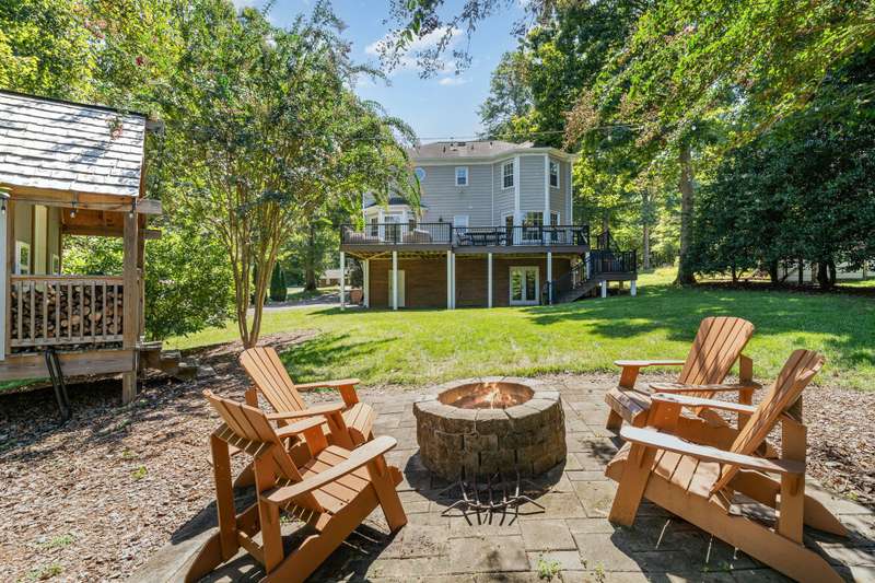 The backyard is a true retreat, complete with a cozy firepit and a charming playhouse that sparks imagination and outdoor fun. Downstairs, a finished den space with a fireplace offers a welcoming escape—perfect for movie nights, game days, or quiet relaxation. Two new HVAC systems (2020) ensure year-round comfort and efficiency, while the home’s overall care and upkeep reflect pride of ownership.