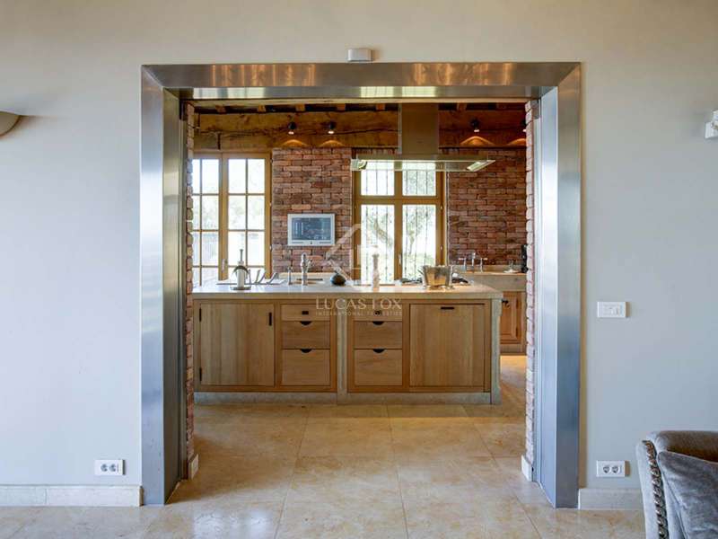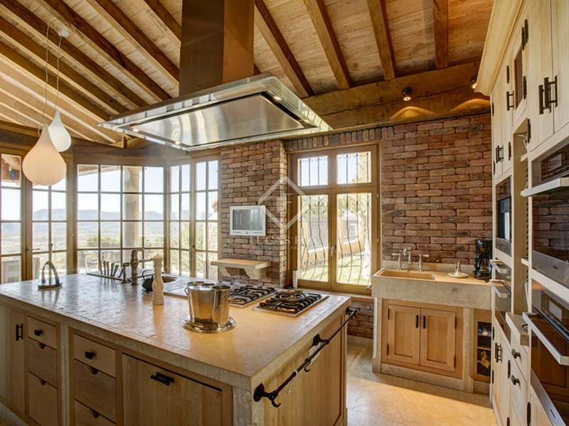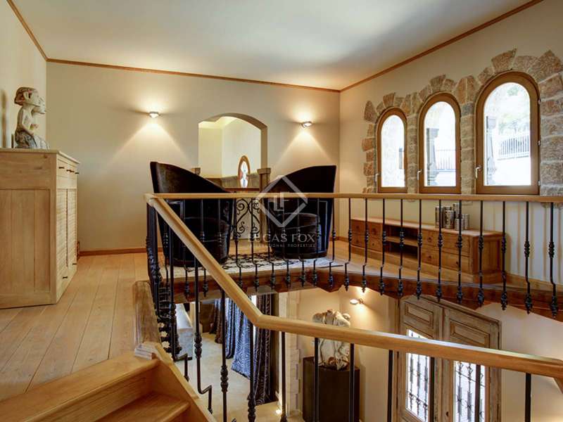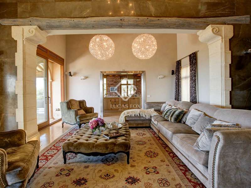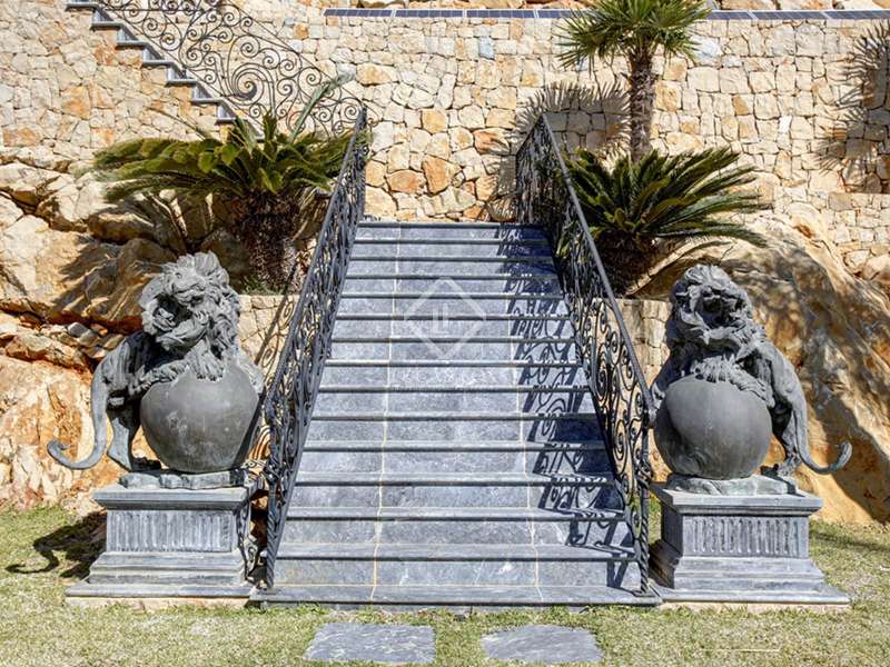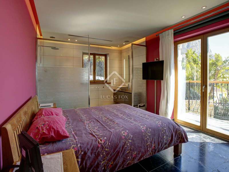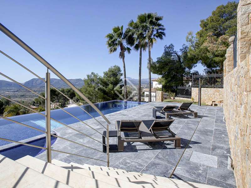 This wonderful house sits in lovely spacious grounds in the foothills of the dramatic Montgó mountain and natural park, an elevated setting that provides stunning views across the countryside. Built into the hillside just 6 years ago, the house is arranged across 3 floors, with large windows to embrace the vistas and let in the natural Mediterranean light, and stylish terraces and tiered gardens from which to enjoy the perfect climate. The design combines modern luxury with traditional style, and sleek modern finishes blend seamlessly with impressive use of stone, marble, wood and historic elements. Standout features include the front door, which is more than 400 years old, and rose windows that date back even further to the beginning of the 15th Century. 21st Century family comfort is a priority inside and out, from the large covered terrace overlooking the spectacular pool and gardens to the home cinema, games room, gym and opulent sauna and Jacuzzi. The bedrooms and bathrooms are of the highest quality and were designed by Antonio Luppi. Furthermore, the property includes exquisite furniture designed by Ascensión Latorre. The double-height sitting room is ideally oriented to take in the views and leads out onto the large main terrace, while the very cool kitchen uses expansive glass to make the most of its corner position and is warmly finished in wood and brick with stainless steel details.
