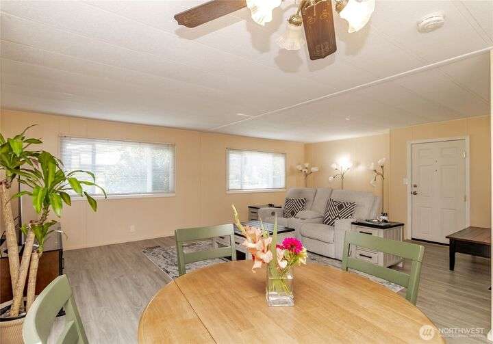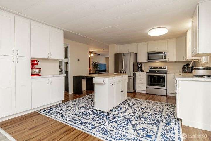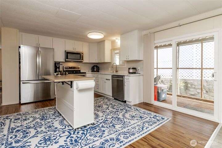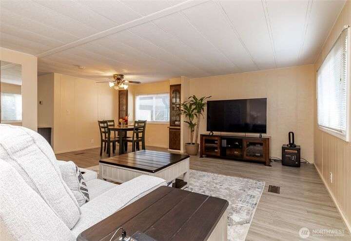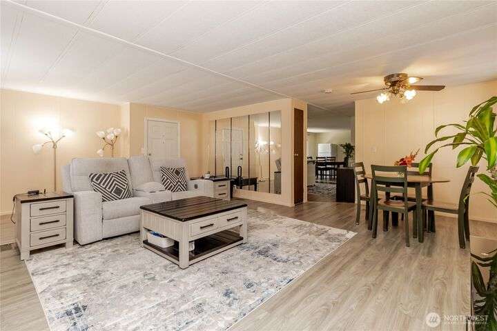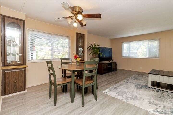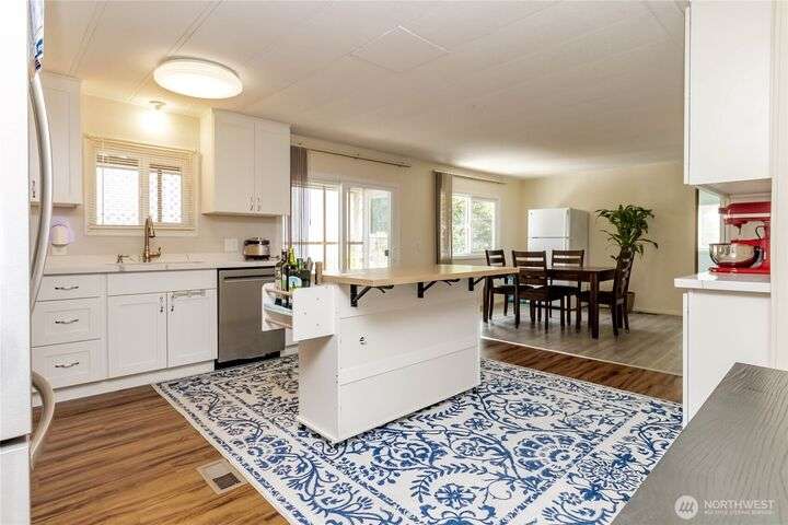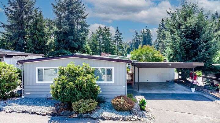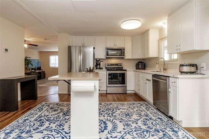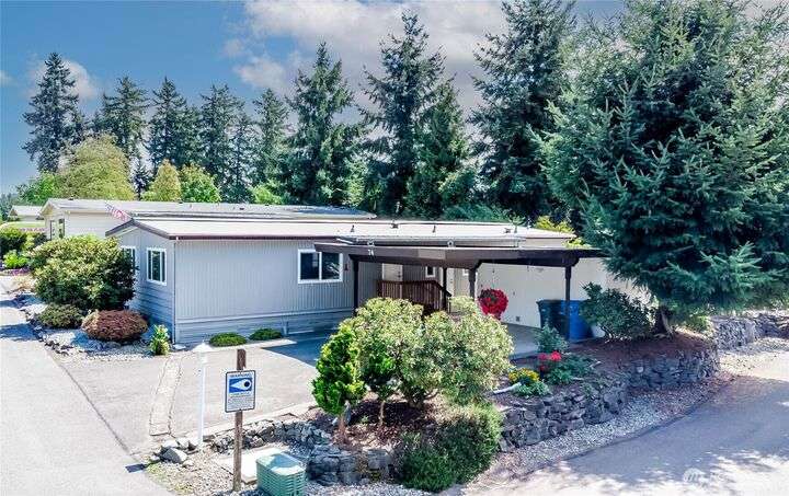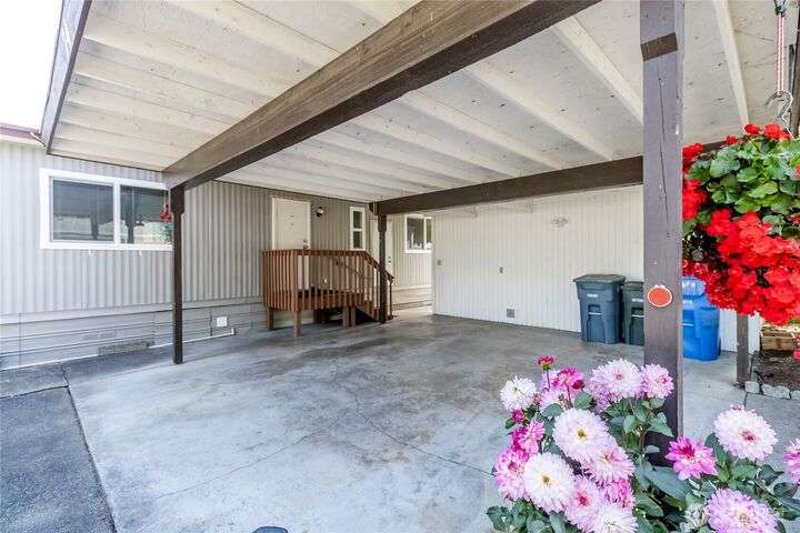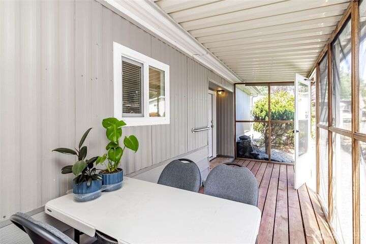 You will LOVE this completely remodeled, and immpecably cared for home in popular Canyon Terrace, a vibrant 55+ community! Move in ready. The many features include a brand new kitchen with custom white shaker soft close cabinets, gorgeous quartz countertops and stainles steel appliances. New laminate and carpet flooring throughout, new insulated windows, and new heat pump. Two bedrooms: one Primary bedroom with an attached bath, plus an additional bedroom with its own full bath. The screened-in covered porch is airy and can be enjoyed throughout the year. Plus, a spacious storage shed. You will love the open, spacious feel of this warm and inviting home. Completely move in ready. Park rent covers water, garbage, & septic. Don’t miss it!