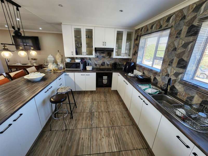 Lovely Family Home This lovely house offers 3 bedrooms, 2 bathrooms, and a large, open plan lounge, dining room and kitchen. The large, enclosed stand, allows a safe play-space for children and a safe area for your four-legged friends. The double garage has been converted into a large open entertainment room. A built-in braai on the back stoep for those lovely family braai days completes the house. The kitchen has recently been revamped with lovely wall and floor tiles to welcome you into the heart of the home. This house is ready to move in and stay and is situated in a quiet street close to the Kloof.