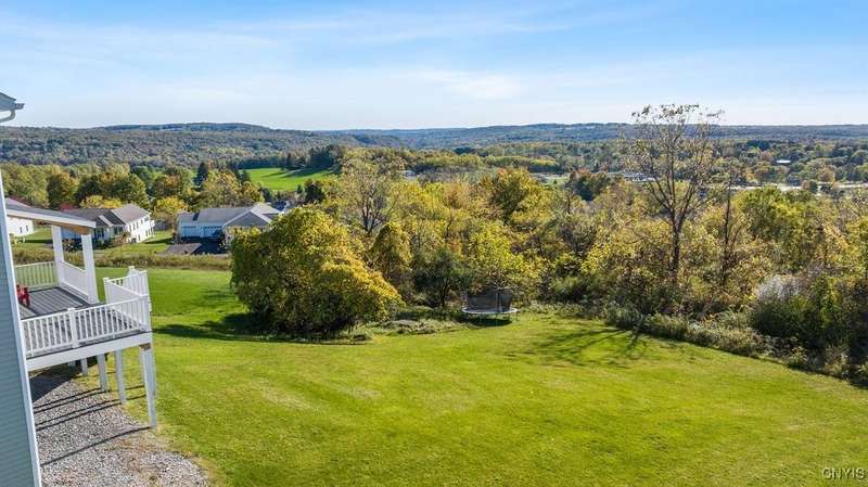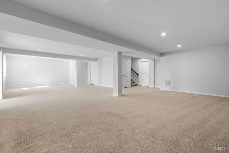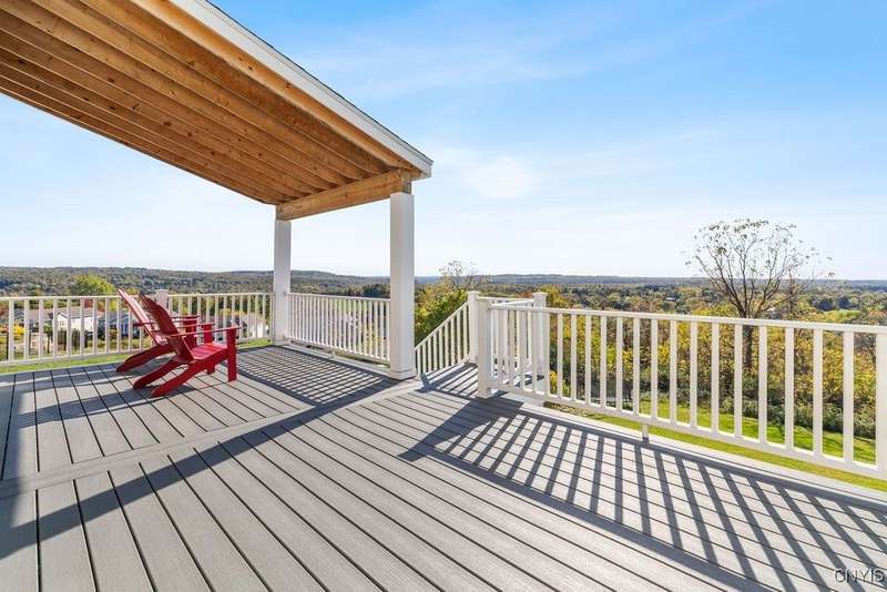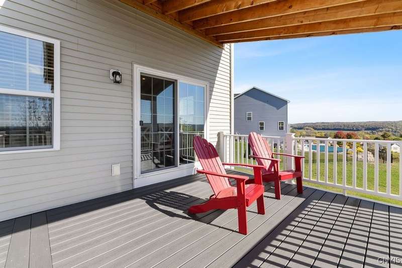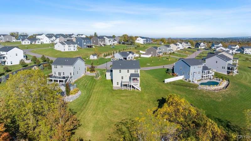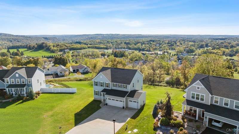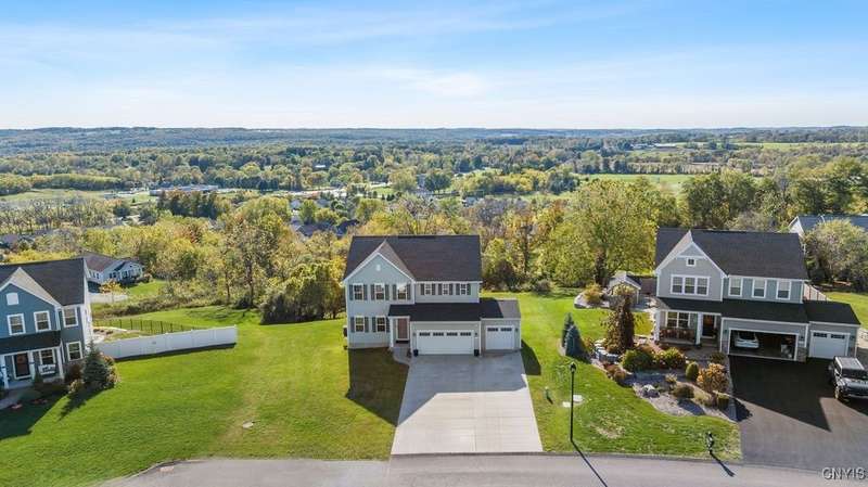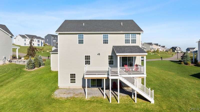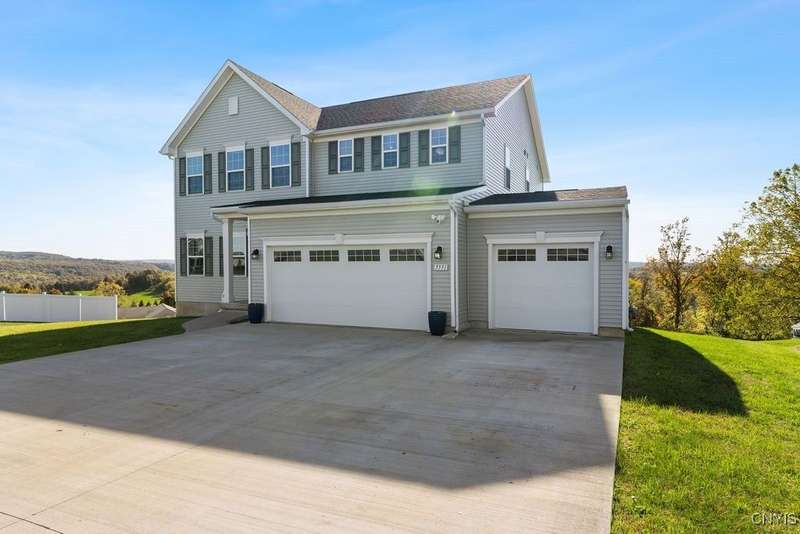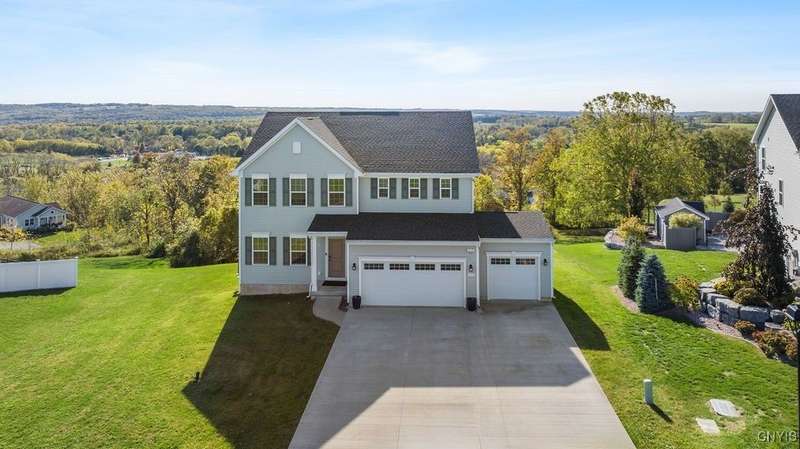 Why wait to build when your dream home is ready now? This stunning five-bedroom, three-full-bath Colonial in the highly sought-after West Genesee School District offers over 3,000 square feet of beautifully designed living space, plus approximately 1,000 additional square feet in the finished basement with a roughed-in full bath for future expansion. Nestled on over an acre of land with breathtaking vista views, this home features a first-floor guest or in-law suite, an open-concept kitchen, dining, and family room with elegant quartz countertops throughout, and a versatile first-floor flex space perfect for a formal dining room, office, or living area. The spacious primary suite includes two walk-in closets and a luxurious bathroom with a Roman shower, while the second floor offers an additional flex area ideal for a playroom or lounge. Enjoy both covered and open deck spaces for outdoor living, along with a three-car garage and a triple-wide concrete driveway. With its perfect blend of comfort, quality, and modern design, this home truly has it all.