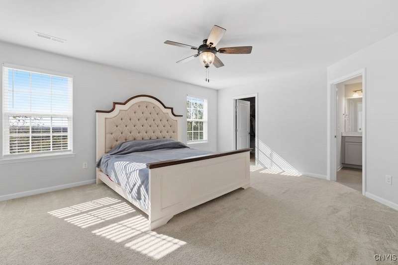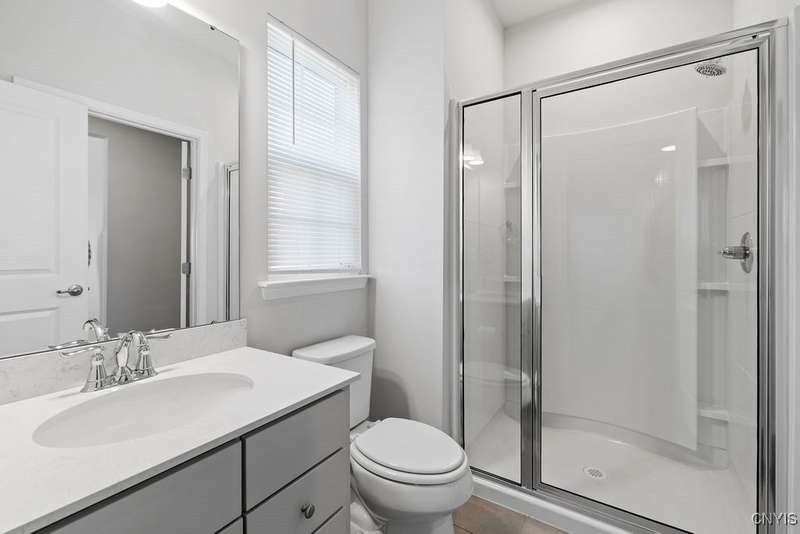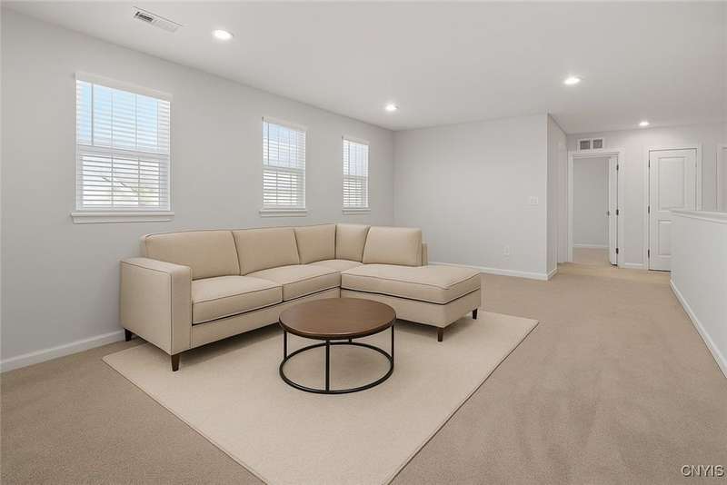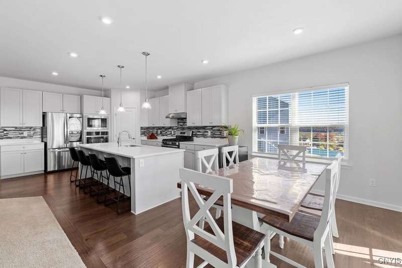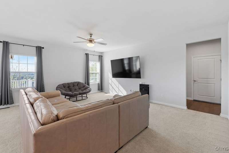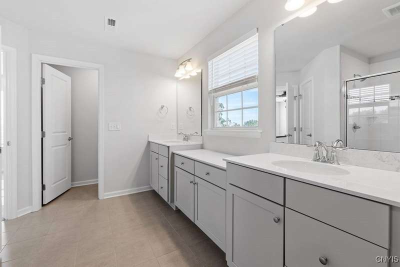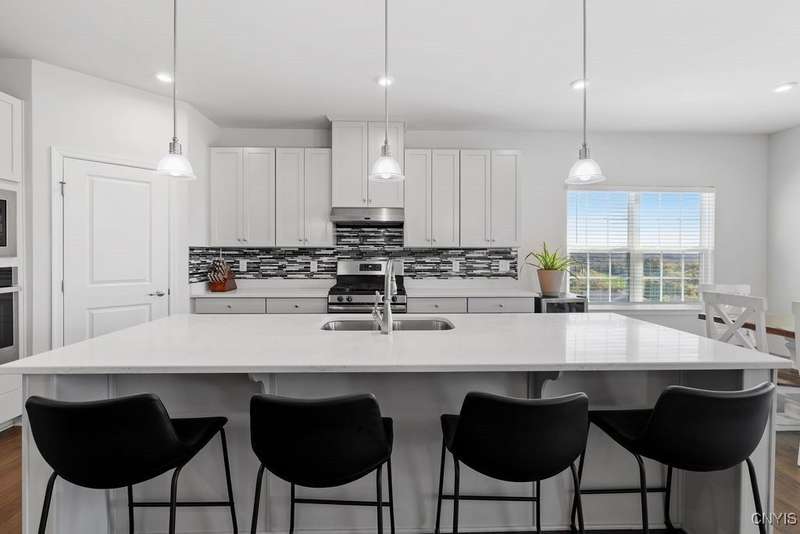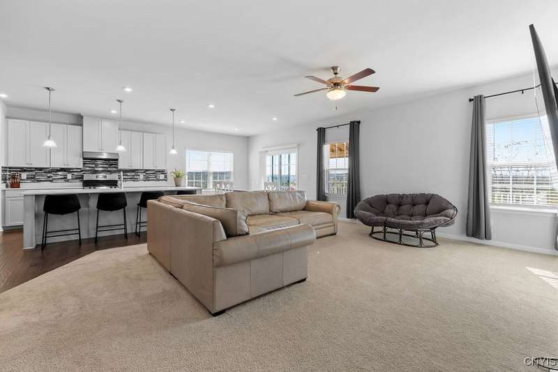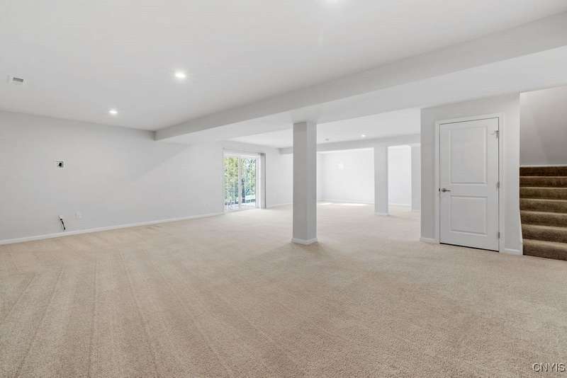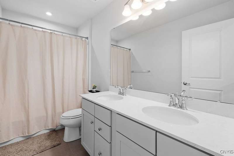 Why wait to build when your dream home is ready now? This stunning five-bedroom, three-full-bath Colonial in the highly sought-after West Genesee School District offers over 3,000 square feet of beautifully designed living space, plus approximately 1,000 additional square feet in the finished basement with a roughed-in full bath for future expansion. Nestled on over an acre of land with breathtaking vista views, this home features a first-floor guest or in-law suite, an open-concept kitchen, dining, and family room with elegant quartz countertops throughout, and a versatile first-floor flex space perfect for a formal dining room, office, or living area. The spacious primary suite includes two walk-in closets and a luxurious bathroom with a Roman shower, while the second floor offers an additional flex area ideal for a playroom or lounge. Enjoy both covered and open deck spaces for outdoor living, along with a three-car garage and a triple-wide concrete driveway. With its perfect blend of comfort, quality, and modern design, this home truly has it all.