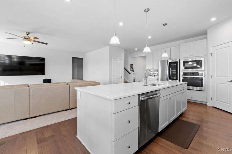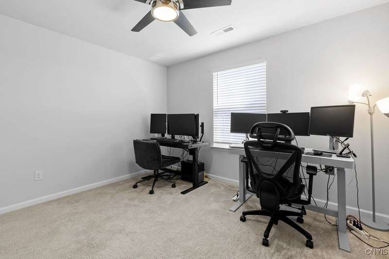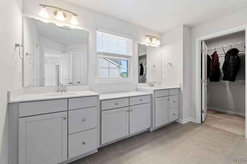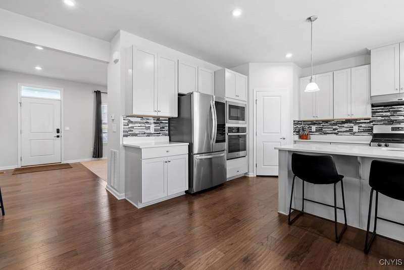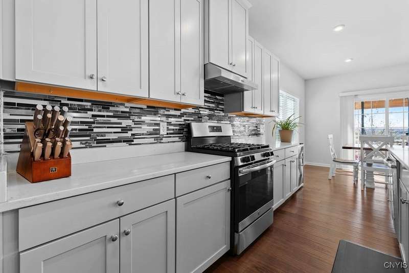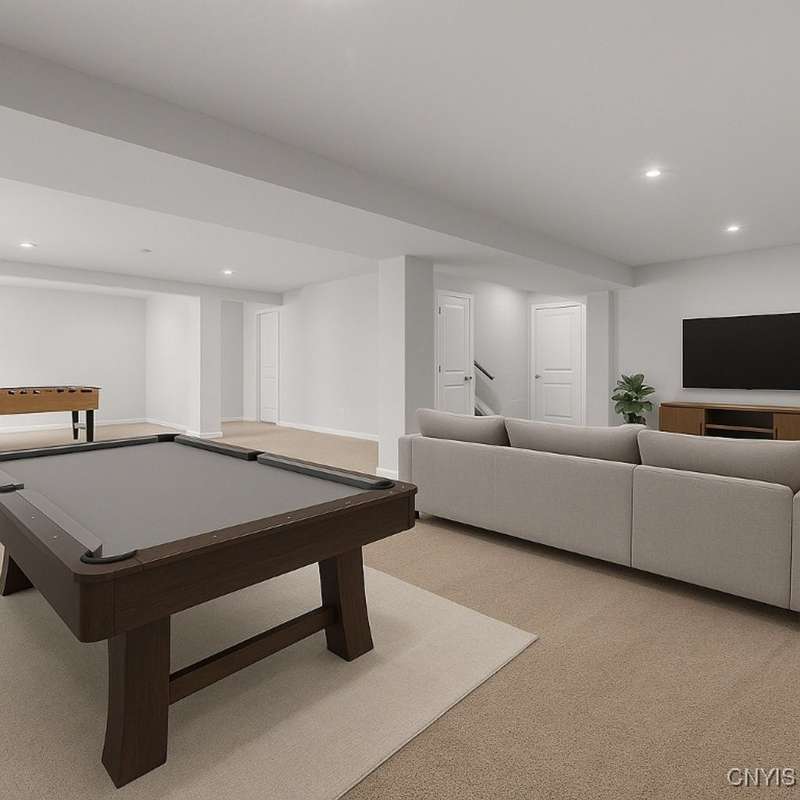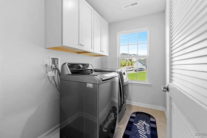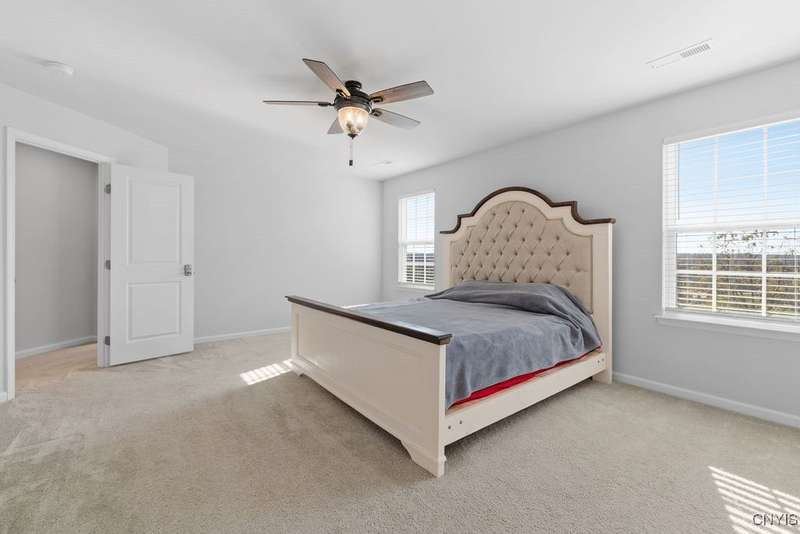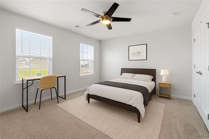 Why wait to build when your dream home is ready now? This stunning five-bedroom, three-full-bath Colonial in the highly sought-after West Genesee School District offers over 3,000 square feet of beautifully designed living space, plus approximately 1,000 additional square feet in the finished basement with a roughed-in full bath for future expansion. Nestled on over an acre of land with breathtaking vista views, this home features a first-floor guest or in-law suite, an open-concept kitchen, dining, and family room with elegant quartz countertops throughout, and a versatile first-floor flex space perfect for a formal dining room, office, or living area. The spacious primary suite includes two walk-in closets and a luxurious bathroom with a Roman shower, while the second floor offers an additional flex area ideal for a playroom or lounge. Enjoy both covered and open deck spaces for outdoor living, along with a three-car garage and a triple-wide concrete driveway. With its perfect blend of comfort, quality, and modern design, this home truly has it all.
