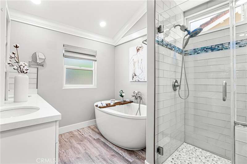 Seller to credit buyer $10,000 towards closing costs at close of escrow. Step into the epitome of single-story luxury in the coveted El Dorado enclave of Mission Viejo. Nestled on a quiet, single-loaded street, this fully transformed home greets you with a charming Mediterranean-style entry and floods of natural light. The heart of the house is an entertainer's dream: a chef's kitchen with a generous quartz-topped island, bespoke cabinetry, a stainless-steel farmhouse sink, and top-of-the-line appliances that seamlessly flow into an open family room. Kick back by the stone hearth fireplace, or wander through a sleek slider onto the covered patio, where recessed lights, a built-in bar, and a barbecue station set the stage for unforgettable gatherings. Behind the scenes, modern comforts abound: dual-zone A/C, tankless hot water, upgraded insulation, recessed lighting, high-end laminate floors, a new roof, and so much more. A spacious laundry room with custom cabinets keeps chores effortlessly organized. Three versatile bedrooms include a dreamy primary suite, complete with sliding barn-door closets and a spa-caliber bath with separate soaking tub and walk-in shower. The second bedroom surprises with a custom-built staircase leading to a lofted nook ideal for gaming, reading, or extra storage while the third offers peaceful comfort for guests or a home office. Outside, a spacious backyard shed provides versatile storage or a secluded hideaway for relaxation and hobbies. Beyond its impeccable upgrades, including CertainTeed presidential shake(r) TL shingles (cool roof) installed, this home offers membership to the Lake Mission Viejo Association and sits steps from top-rated schools, boutique shops, and fine dining. Meticulously re-piped and maintained, it's truly move-in ready. Discover your sanctuary in El Dorado where style, comfort, and community converge.
