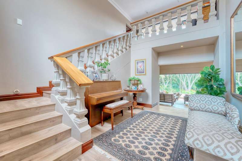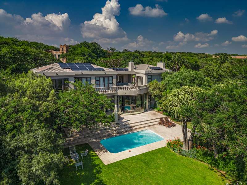 A Luxury Home Nestled in a sought after Estate in Kyalami! Owner asking R9.5m. Step into luxury with this stunning 5-bedroom home, designed for both comfort and entertainment. The grand entrance hall, with its striking staircase, seamlessly flows into the informal lounge, where floor-to-ceiling glass doors open to the lush garden. Built-in speakers and a stylish bar area set the scene for relaxed gatherings. The formal dining room offers picturesque views of the atrium, while the open-plan kitchen boasts ample cupboard space, built-in ovens, a microwave, and a gas stove. A separate scullery leads to the informal dining area, which transitions effortlessly into the third lounge, creating a perfect space for family living.Of the homes 5 bedrooms,2 of them can be used as additional accomadation or guest wings. In addition there are house keeping quarters on the property. A private study provides the ideal work-from-home setup, while the pajama lounge offers a cozy retreat. It can double as a craft room or display area. The formal lounge, also fitted with built-in speakers, adds another layer of sophistication. Upstairs, the main bedroom impresses with a walk-through closet and a full en-suite bathroom, while all bedrooms feature air conditioning for year-round comfort. Speakers are thoughtfully placed throughout the home, enhancing the living experience. Elegantly staged to allow guests to absorb all that this luxury property has to offer. Outdoor living is just as impressive, with a beautifully landscaped garden and a sparkling pool, perfect for relaxation and entertainment. A balcony offers exclusive access to the rooftop, where you can enjoy breathtaking views. A double garage completes this exceptional property, ensuring both convenience and security. This home is an entertainer?ÇÖs dream, combining elegance with modern functionality in every detail. So call today.!!!Make your dreams come true!!