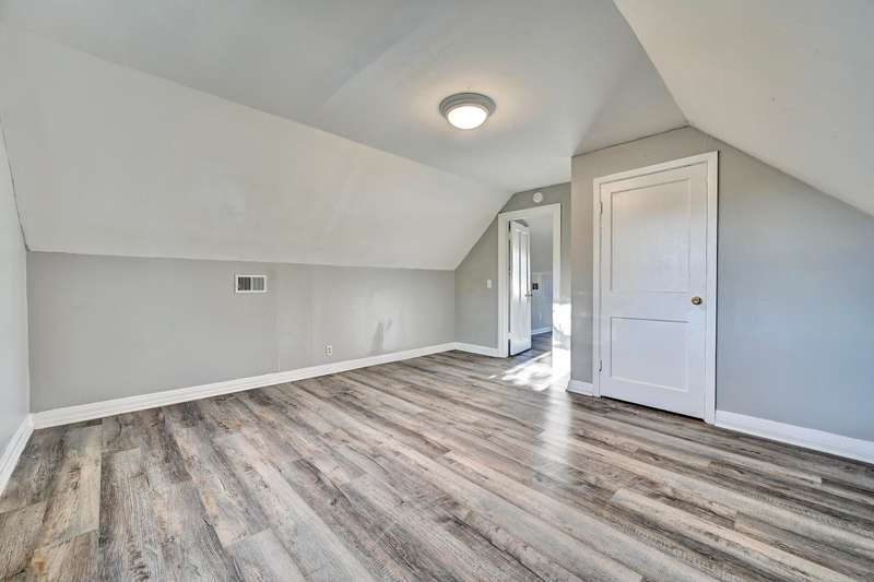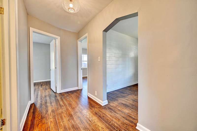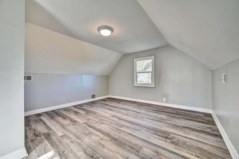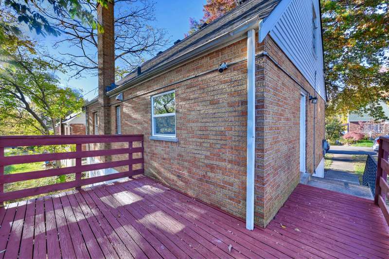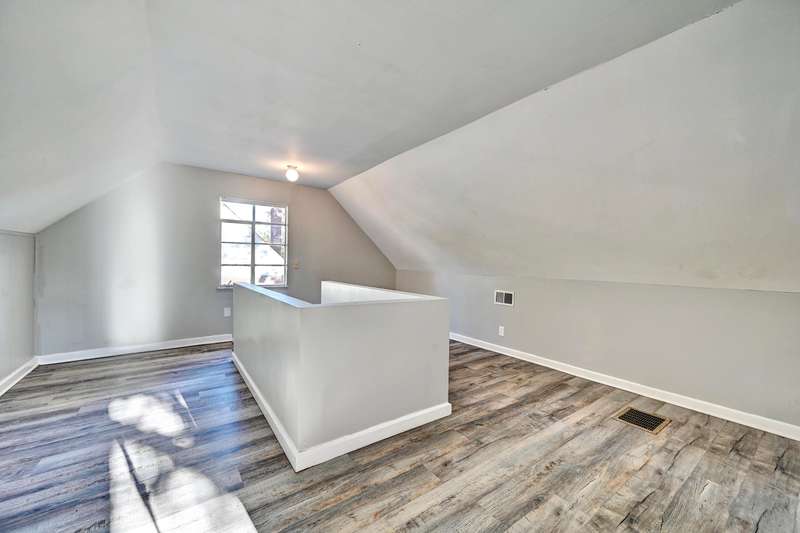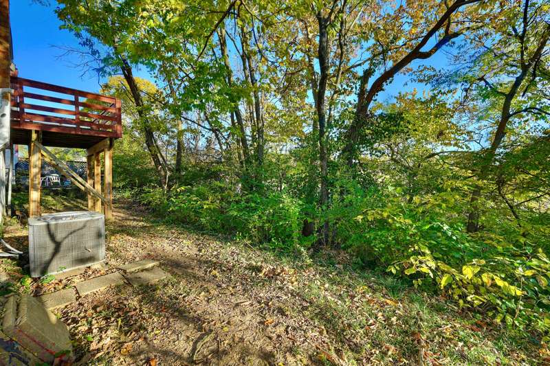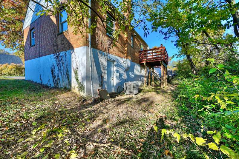 Charming 3-bedroom, 1-bath home with additional flex space for an office, set on a quiet street with a private, wooded backyard. Bright and cheerful with neutral tones, hardwood floors and lots of natural light throughout. The welcoming living room features wainscoting and a large picture window that adds warmth and character. The walk-out kitchen includes an island with seating and extra storage. Two cozy bedrooms are on the first floor, with a third spacious bedroom upstairs and a flex space ideal for an office, hobby room or computer room. Relax or entertain outdoors on the deck overlooking the peaceful wooded backdrop. Recent updates: Roof (2023), HVAC & Air (2023), Hot Water Heater (2023), Electric & Panel (2023), Four New Windows and Front Door (2025), and Fresh Paint throughout (2025). Basement offers a walk-out and full bath rough-in for future finishing. Convenient to shopping, restaurants, and highways a great value in a desirable location!