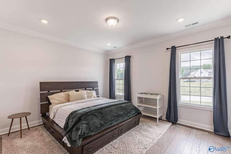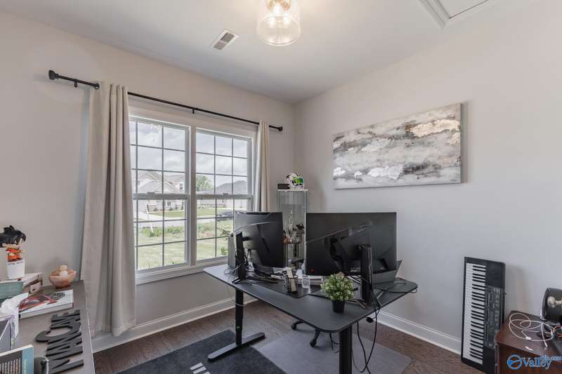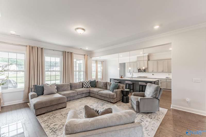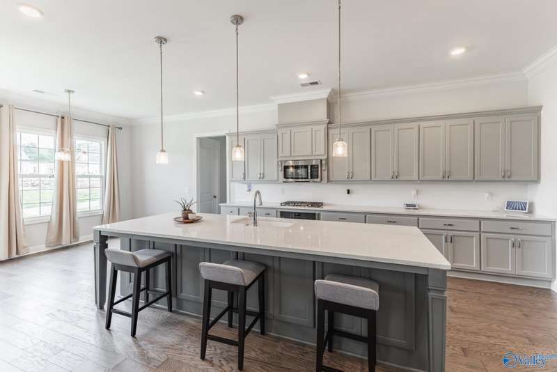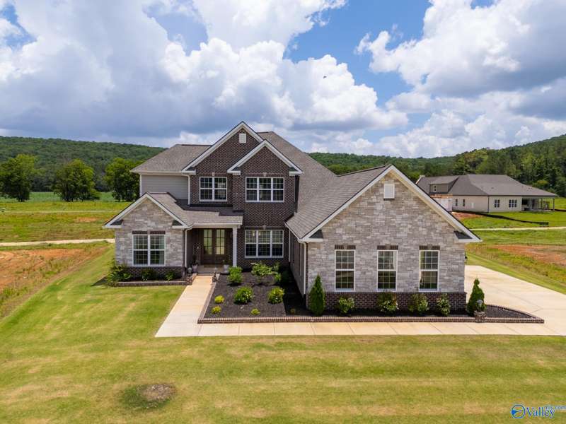 Hampton Cove Schools! Seller is offering $10K Concessions! Why wait for a new home to be built when this beautiful 2yo home is ready now! Experience refined living surrounded by captivating Mountain Views. This community has it all - walking/ hiking trails, community pool, fishing pond, sidewalks and a lake. This home features a Bathroom En Suite for each bedroom. The open flow kitchen stuns with an 11 foot island, quartz countertops, and custom cabinets. Oversized shower and soaking tub in primary. A secluded Home Office is tucked away on the first floor. TWO additional flex spaces and a mudroom. Minutes from shopping, golfing, and a nature preserve. 30 minutes to Lake Guntersville.