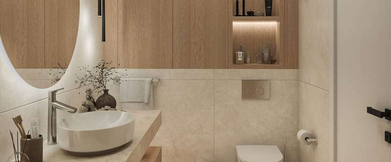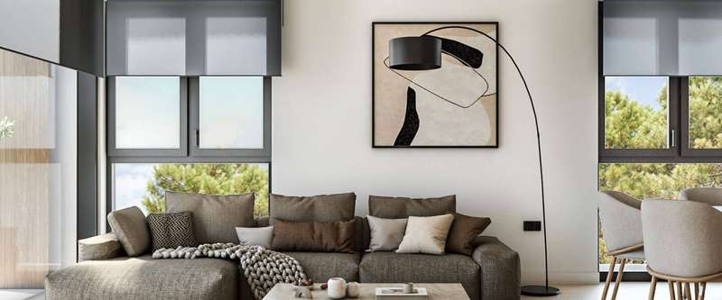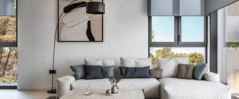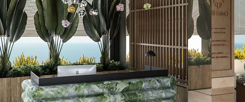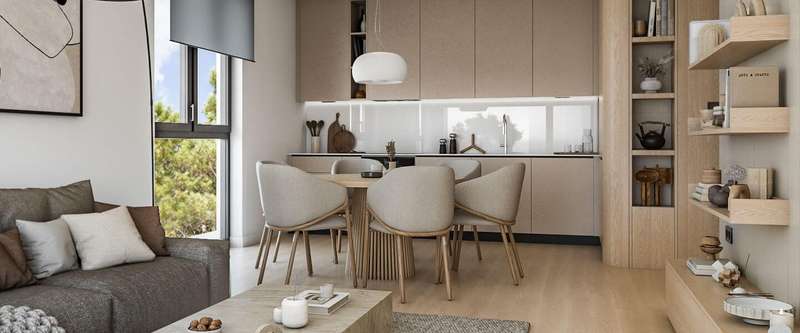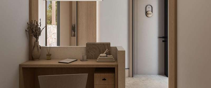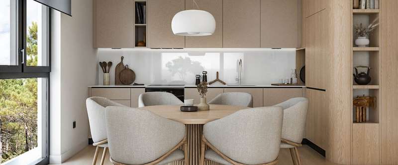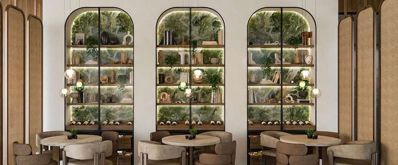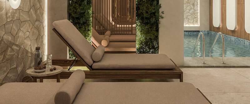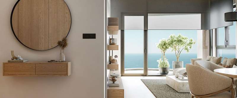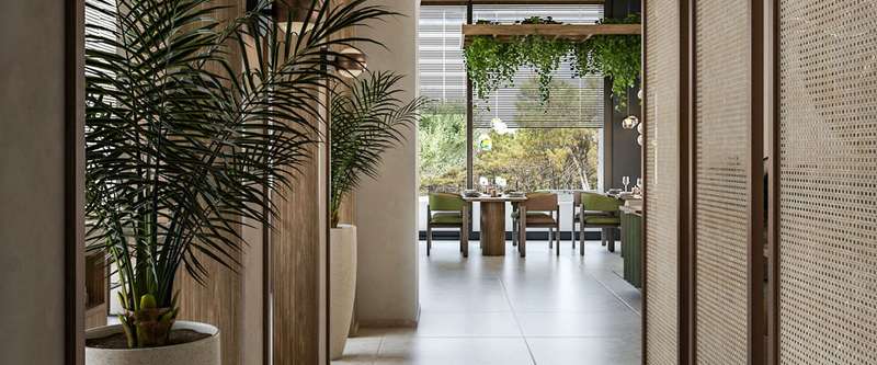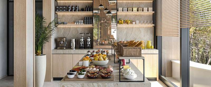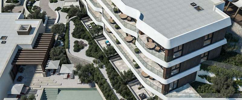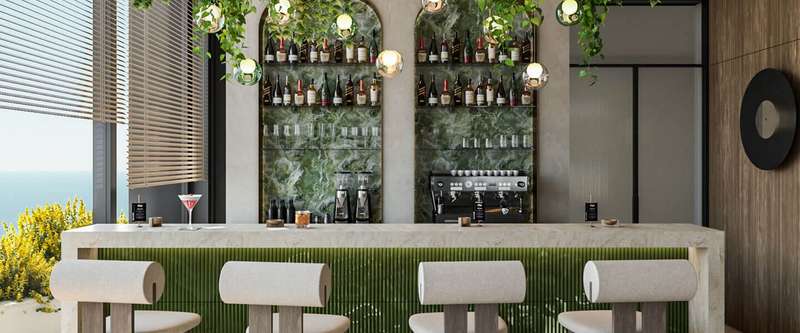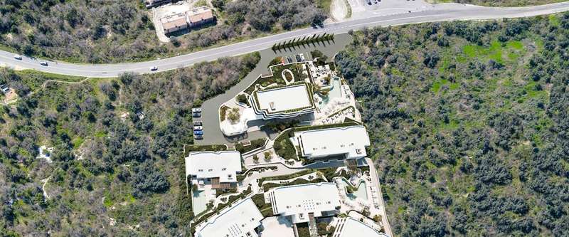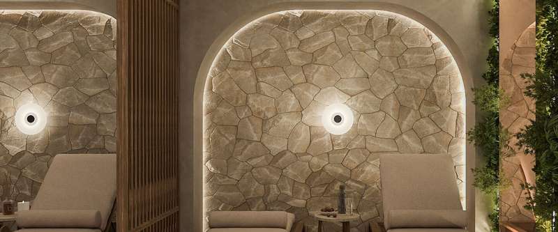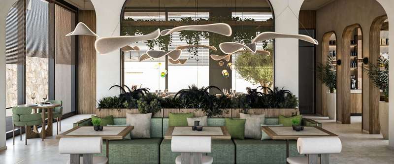 * Natural stone facades and interior finishes inspired by Mediterranean landscapes