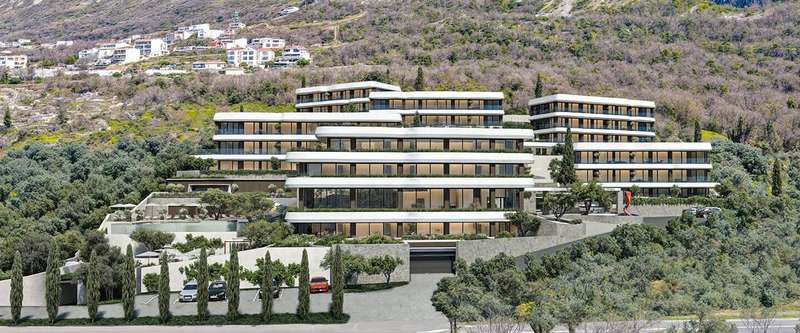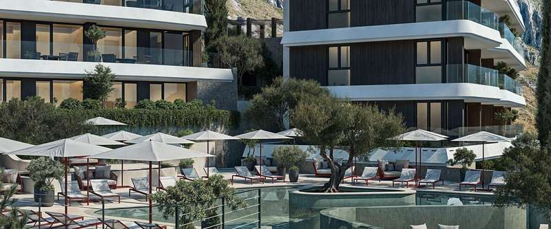 Onia Hills Resort & Residences presents a rare opportunity to own a stylish one-bedroom apartment within a sustainable luxury complex, situated in the lush hills of Reževici, just minutes from the Adriatic coast. With breathtaking panoramic sea views, exceptional architecture, and resort-style amenities, this development is designed for those seeking both tranquility and comfort.