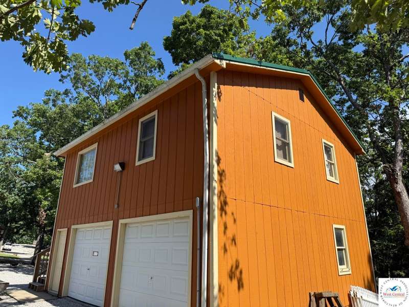Eagles Nest is a two-bedroom cabin, one bedroom has two full beds and the other a queen and a full, there is also a sleeper sofa and two recliners in the living room area. Fully equipped kitchen. Located above the garage with outside stairs. Just down the road from Truman State Park Marina giving you quick and easy access to Truman Lake, while also being close to Drake Harbor where you can access the Lake of the Ozarks. This cabin has been a successful rental and has a long client list. Could be utilized as an Airbnb or long-term rental on the side.