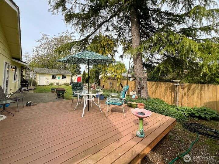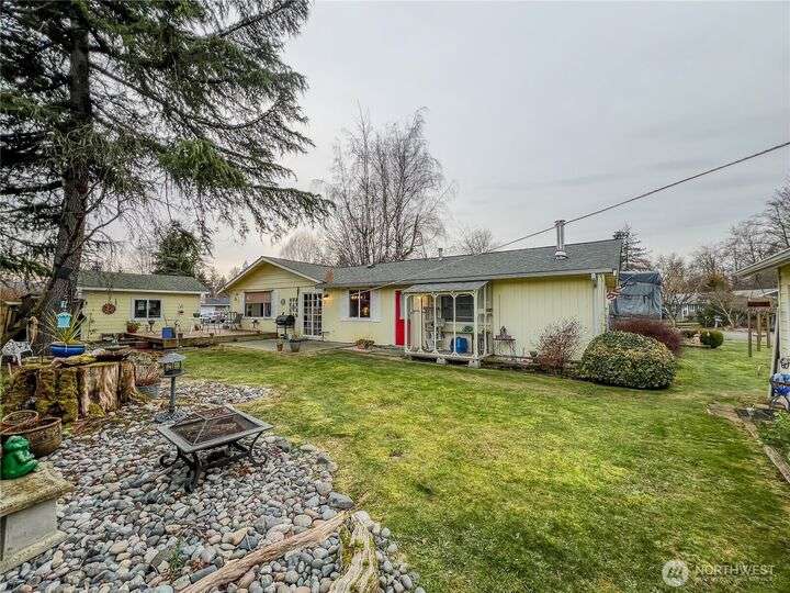Looking for a one-level, easy-living home on a large lot? Here it is! This well-kept home features numerous updates, including a new roof with sheathing and insulation, exterior paint, and a crawl space vapor barrier. The kitchen offers newer American Woodmark cabinets with pullouts, a gas range, and refrigerator. A center island provides ample bar seating. The living room has a cozy fireplace insert. The primary suite connects to the main bath. The spacious family room includes a ¾ bath, washer/dryer, wood stove, and separate entry—ideal as a guest suite. The large yard includes two garages, a deck, patio, and garden areas. Located in the desirable Lynden School.