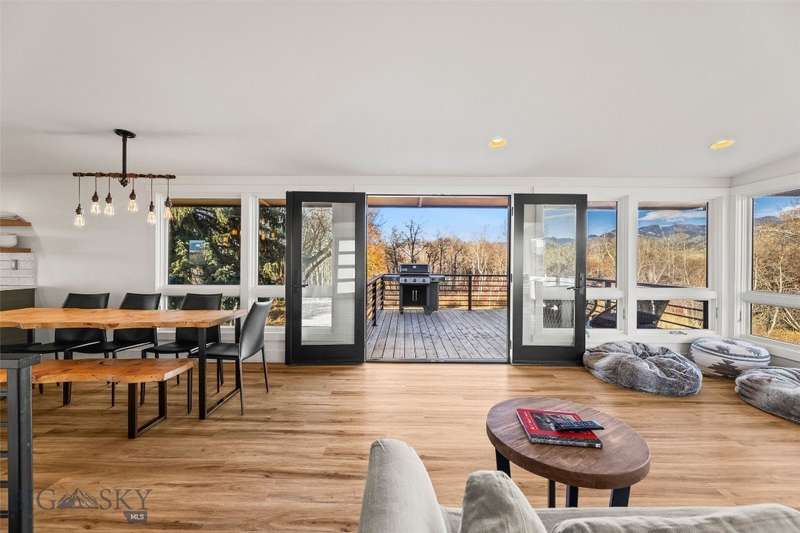Welcome to your newly remodeled mountain-modern home, nestled in a peaceful forest cove with stunning mountain views. Step outside to fish the East Gallatin River, explore nearby trails, or stroll into town via the Main Street to the Mountains trail system-connecting you effortlessly to all that downtown Bozeman has to offer. Set on 1.4 private acres adjoining a 49-acre Montana Fish & Wildlife park, this property is ideal for adventurers, nature lovers, and anyone seeking a serene Montana retreat. Originally built in 1959, the home underwent a complete, down-to-the-studs, high-end remodel in 2018 and is being sold furnished for a truly turnkey experience. Inside, you'll find 4 bedrooms, 2 bathrooms, a well-appointed kitchen, a spacious family room, and a versatile lower-level rec room. Take in Bridger Range views from the back deck and living room, or unwind in the outdoor hot tub. Additional panoramic vistas include Hyalite and the Spanish Peaks to the south. With no covenants and current zoning that allows for additional dwellings, this property offers exceptional potential. All information is deemed reliable but not guaranteed. Buyers and agents are encouraged to conduct their own due diligence. Owner is a licensed real estate agent in the State of Montana.