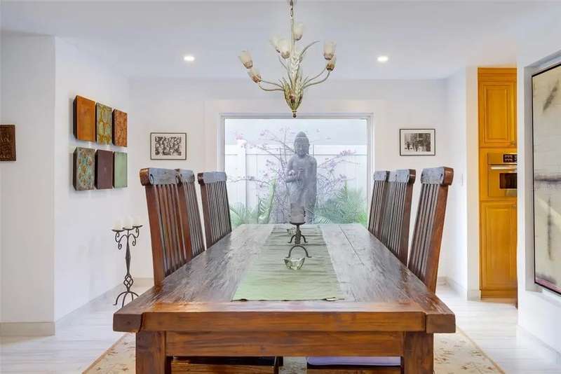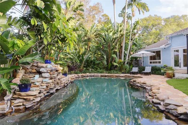 Furnished luxury rental in Allendale situated in the heart of St. Petersburg, stands as an enchanting and historic neighborhood. The picturesque streets are adorned with splendid live oak tree canopies, creating a warm and inviting atmosphere. Nestled amidst majestic oaks and mature landscaping, this meticulously designed 3-bedroom, 3-bathroom split plan home spanning 2,629 square feet, tailor-made for family living. The kitchen, a culinary haven, features modern upgrades including granite counters, double ovens, a warming drawer, and a gas stove. The adjacent dining room has plenty of space for family and friends to enjoy long dinners and special moments. Designed with entertainment in mind, this residence seamlessly connects the kitchen and great room, creating a harmonious flow into the backyard where a stunning natural stone pool enveloped by lush landscaping awaits, a true tropical oasis for relaxation. Upstairs is a loft master bedroom, with an en suite bathroom ensuring complete privacy from the rest of the home. This master retreat includes sliding doors that open to a private balcony, providing an ideal spot for savoring morning coffee or evening cocktails. Conveniently located, this well-maintained residence is a mere 4 miles from the iconic Downtown St. Pete, offering a wealth of museums and restaurants. Additionally, it is 20 minutes from Tampa International Airport and just 15 minutes from the renowned St. Petersburg Beach, consistently rated as the #1 beach in the country.