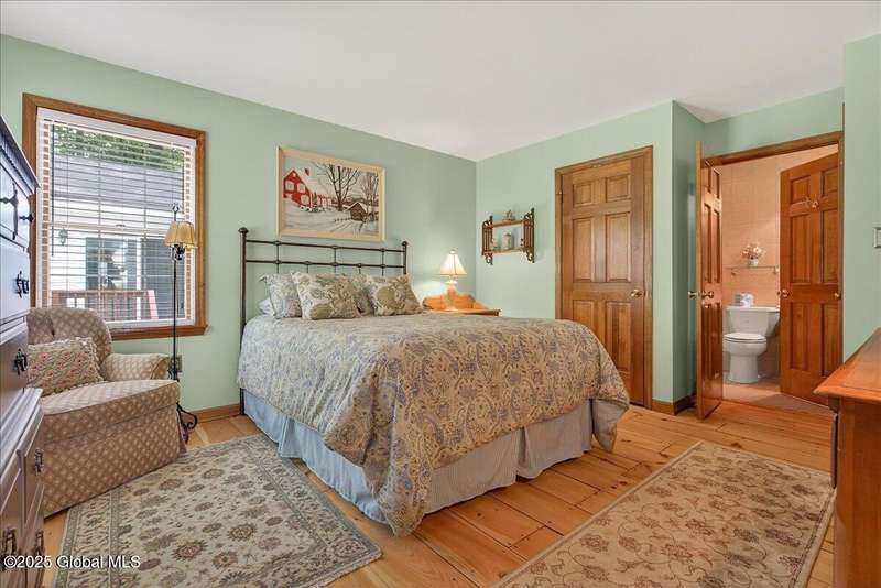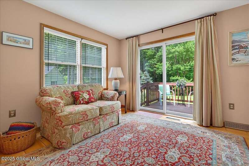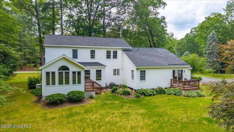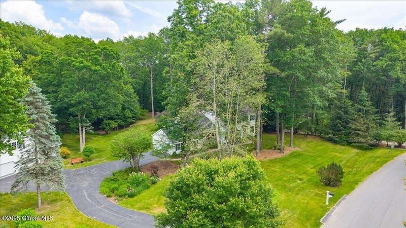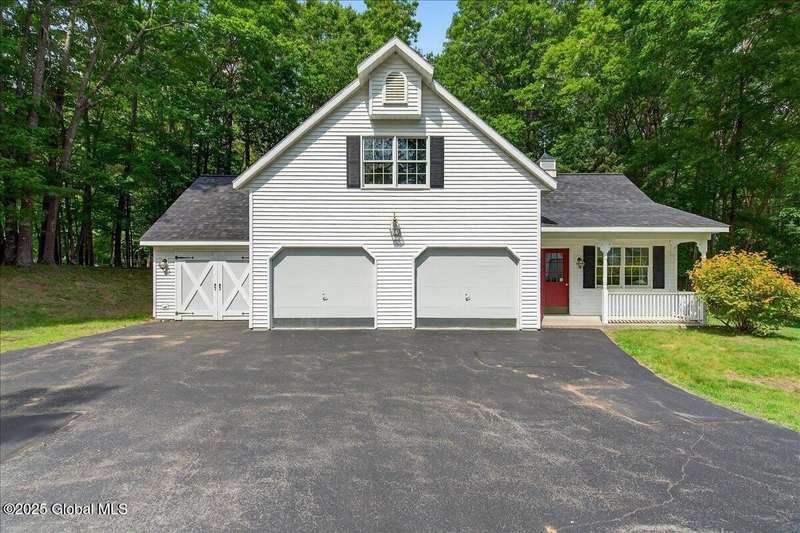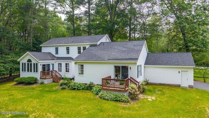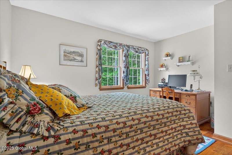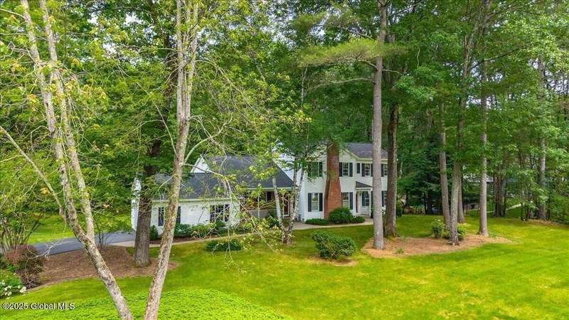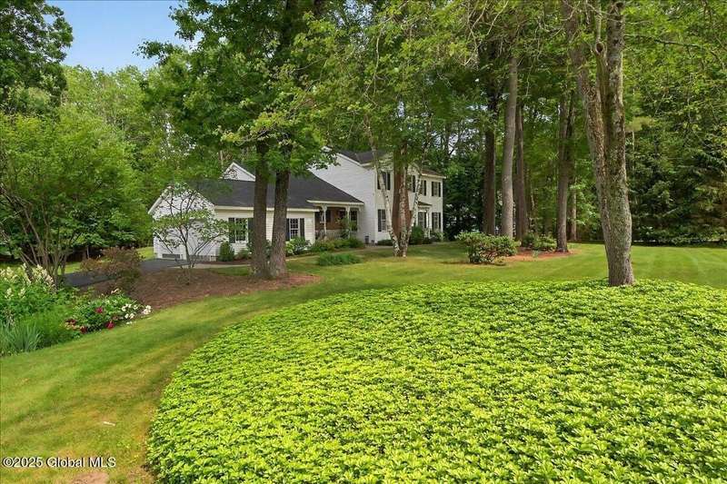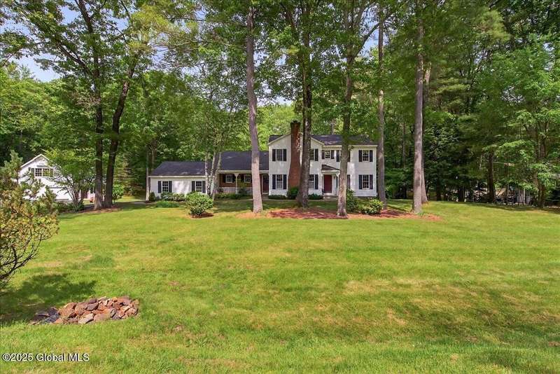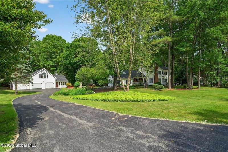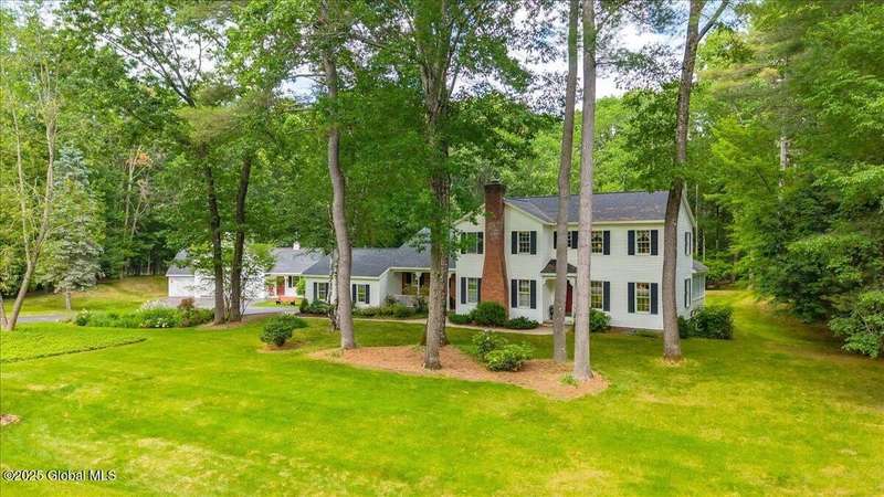 PRICE REDUCED! Located in the beautiful Knoll Spring Park neighborhood, this fabulous one-owner Colonial sits on a peaceful private 2+ acre lot & features 1st floor guest quarters/in-law suite including kitchen, LR/dining area & separate BR with full bath walk-in shower. Step inside to an open kitchen with DR, sitting area, & wide plank HDWD floors. A formal LR & bright sunroom add elegance while the three-2nd story BR's, 2 baths, including a generously sized primary BR offers private retreat. The detached carriage house is a standout feature, complete with heated workshop, lav, & additional 2+ bay garage & unfinished 2nd floor. Details include lovely landscaping w/ established perennial gardens, Generac generator, new roof in 2022, minutes to shopping, highway & downtown Saratoga!