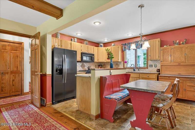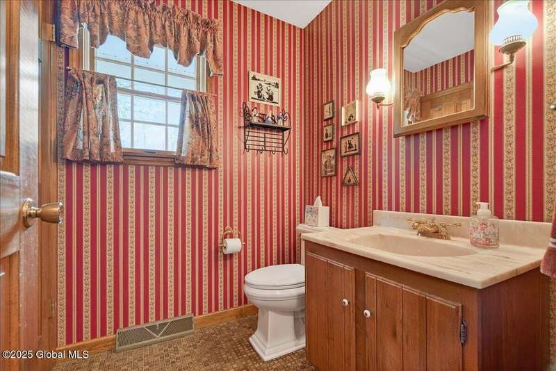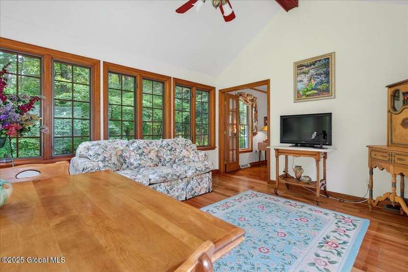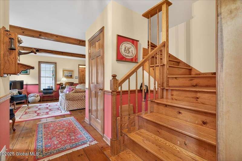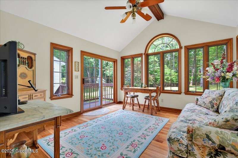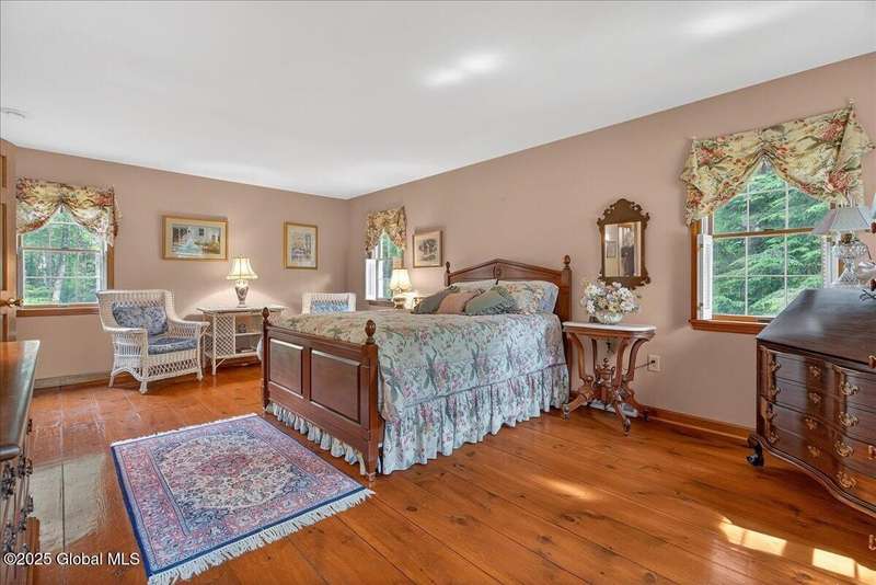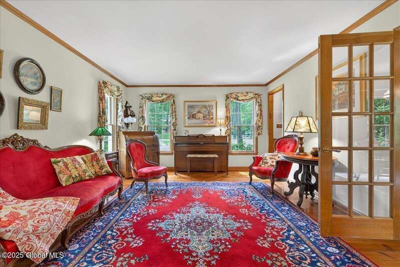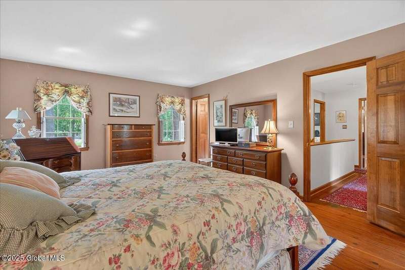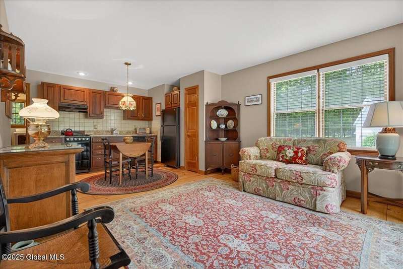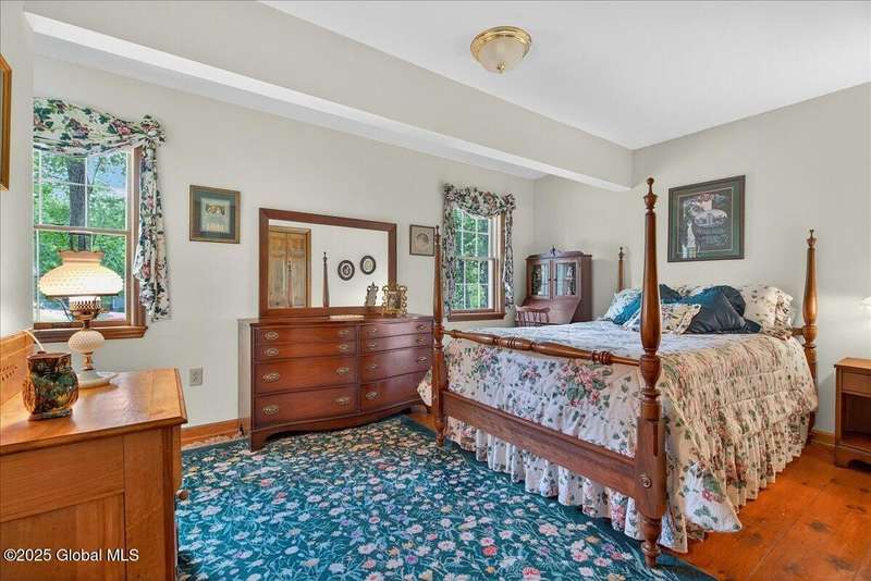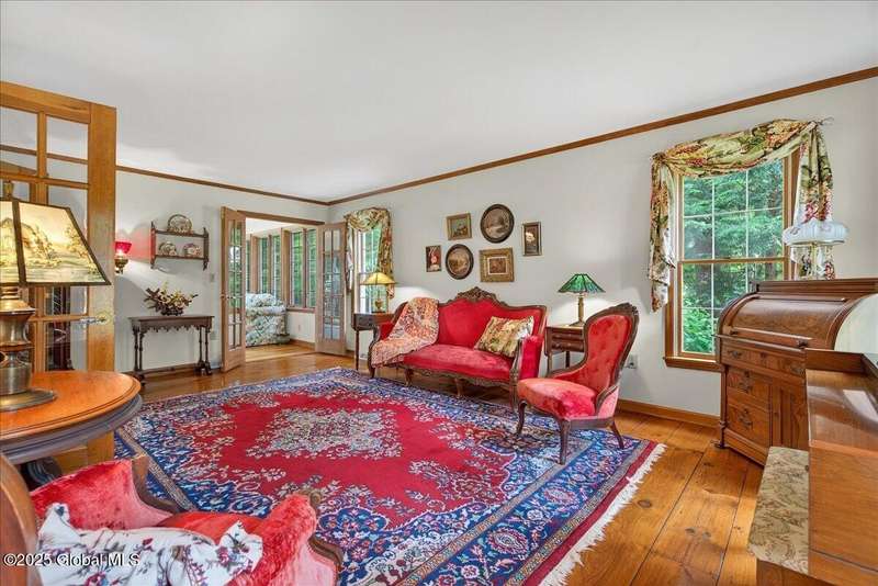 PRICE REDUCED! Located in the beautiful Knoll Spring Park neighborhood, this fabulous one-owner Colonial sits on a peaceful private 2+ acre lot & features 1st floor guest quarters/in-law suite including kitchen, LR/dining area & separate BR with full bath walk-in shower. Step inside to an open kitchen with DR, sitting area, & wide plank HDWD floors. A formal LR & bright sunroom add elegance while the three-2nd story BR's, 2 baths, including a generously sized primary BR offers private retreat. The detached carriage house is a standout feature, complete with heated workshop, lav, & additional 2+ bay garage & unfinished 2nd floor. Details include lovely landscaping w/ established perennial gardens, Generac generator, new roof in 2022, minutes to shopping, highway & downtown Saratoga!