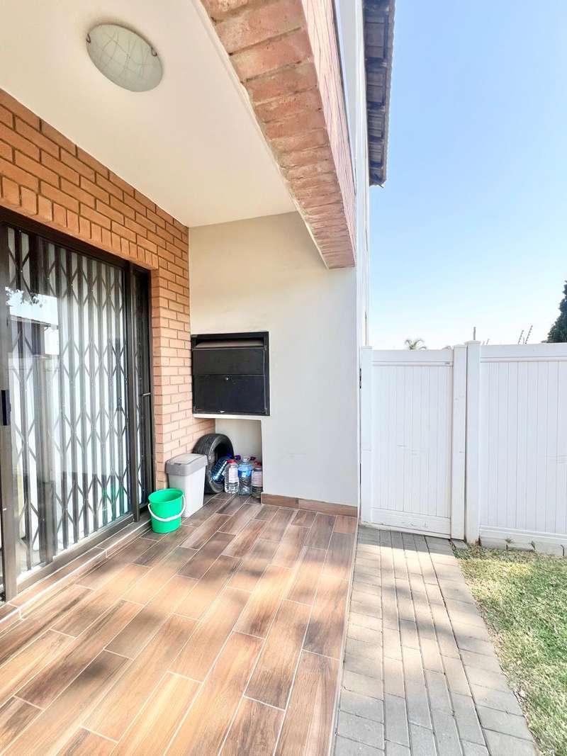 Discover your dream home in Pomona with this charming ground floor townhouse, now available for sale! Perfectly situated in a sought-after complex, this property boasts 2 spacious bedrooms and 2 well-appointed bathrooms. The master bedroom features a private ensuite with a modern shower, while the second bathroom, also fully tiled, offers additional convenience. Step inside to find a welcoming living space with an open plan design. The kitchen is a standout, equipped with granite countertops and ample space for both a washing machine and a dishwasher. The adjacent built-in braai area is ideal for entertaining and leads out to a generous garden, providing plenty of space for outdoor activities and relaxation. This townhouse includes practical features like one covered carport and one open parking space, ensuring you'll never have to worry about parking. The complex also offers a delightful kiddies' play area, making it a great choice for families. With its fresh presence on the market, this property is an opportunity not to be missed. Call me today to arrange a viewing and see all that this wonderful home has to offer. Don?ÇÖt let this chance slip away!