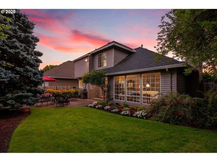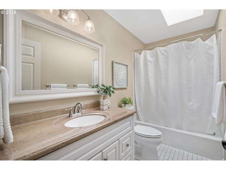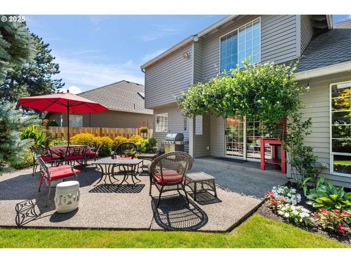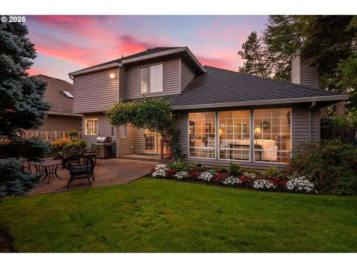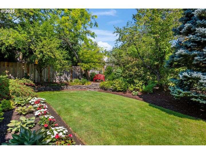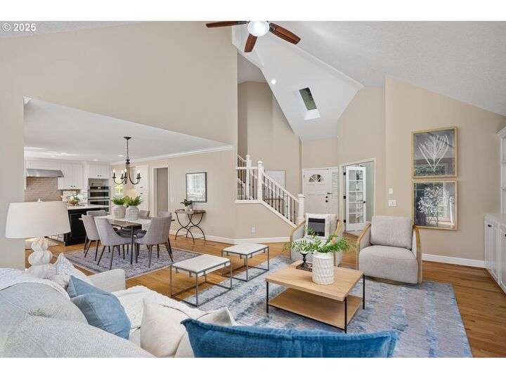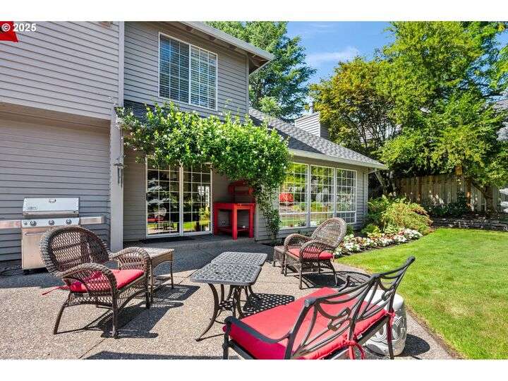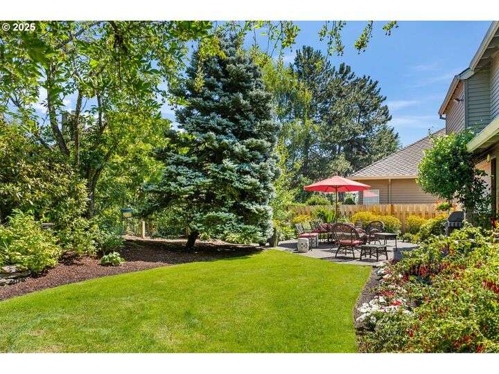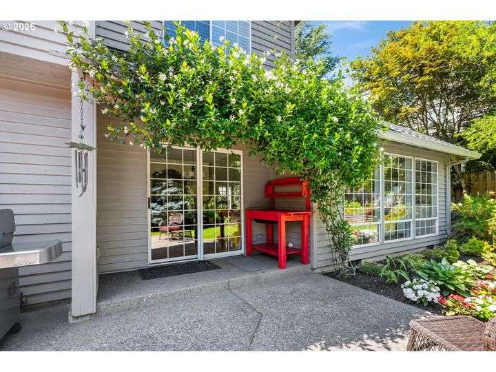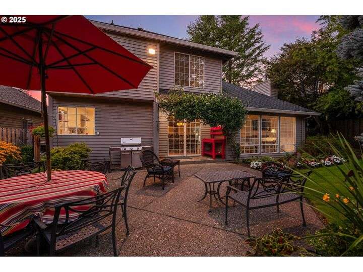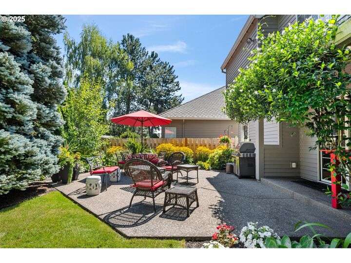 HOSTED BROKER TOUR TUES 9/30 11am-2pm. Discover this 1987 built Sterling Heights home; a peaceful retreat in an enclave of 35 quality homes developed by Randall Meyers and built by Blazer Homes, Inc. Located on a non-through street near Westlake Park, Oak Creek Elementary School, the “Westlake Loop” walking trails and Mountain Park. High quality updates and pride of ownership shine from the moment you open the front door into the foyer with its soaring ceiling and skylight. A great room with an impressive 18' vaulted ceiling flows into the dining area and kitchen to create a highly desirable circular floor plan. Throw open sliding glass doors to a spacious patio graced by fragrant jasmine vines, a bubbling water feature and the tranquility of birdsong. Outdoor spaces offer a gas hook up for the barbecue, flat lawn for kids and pets to romp and colorful mature gardens.The thoughtfully updated kitchen features stainless Jenn-Air appliances, custom cabinets with quartz counter tops and a generous-sized island with eating bar. The upper level primary bedroom suite has a a walk-in closet and fully appointed bath that was remodeled in 2024. This meticulous home has many options for how to use the rooms and suit your lifestyle. The main floor bedroom can be used as an office while an over sized upstairs bedroom is also suitable for media, playroom, workout space or shared childrens' sleeping quarters. The home has abundant storage and an attached 2 car garage with a circuit for an electric car. The neighborhood holds great appeal for those with a deep appreciation for nature and a strong community. It’s a place where privacy and calm prevail in synch with the seasons, yet this setting is just minutes to downtown Lake Oswego, Tigard, Tualatin, Wilsonville and Portland city center.