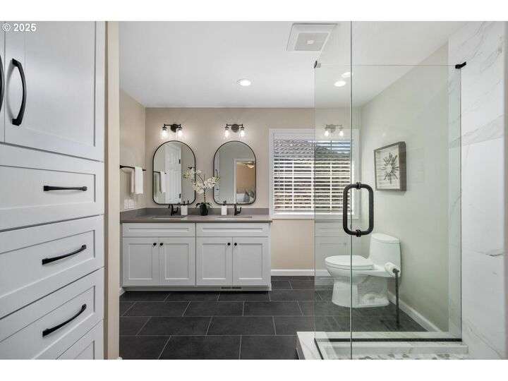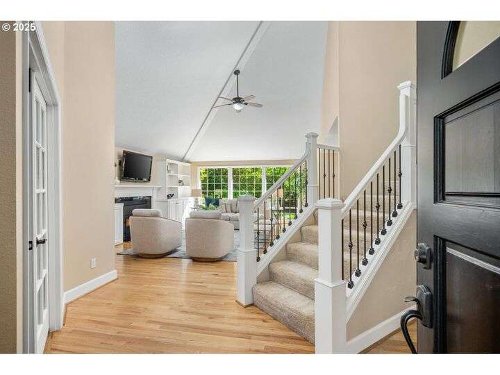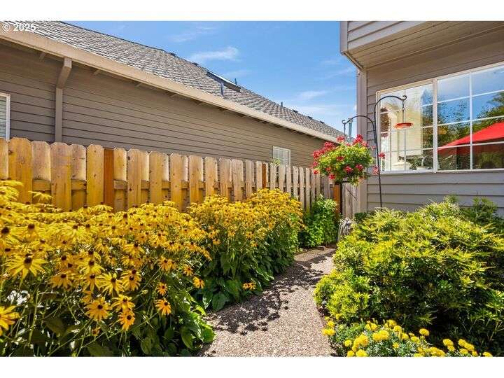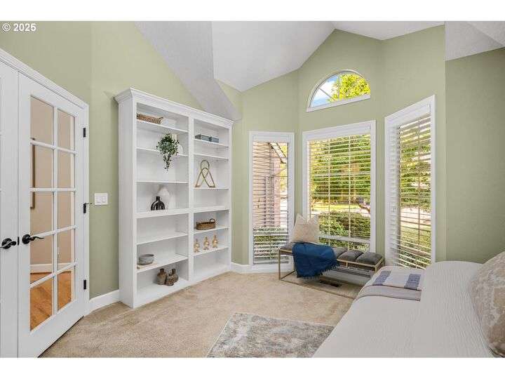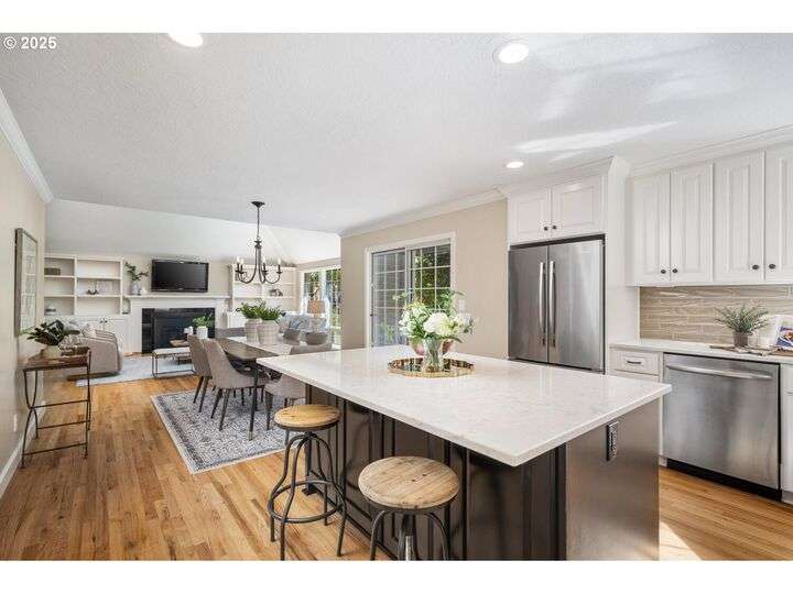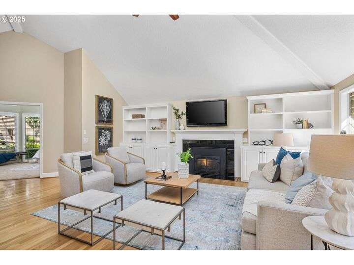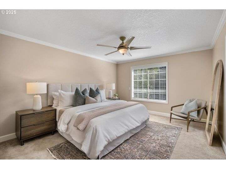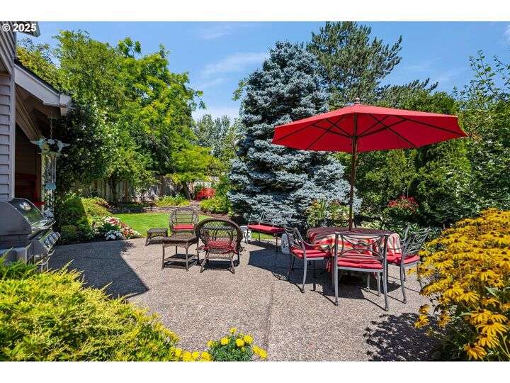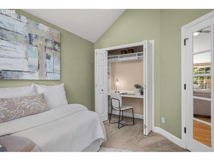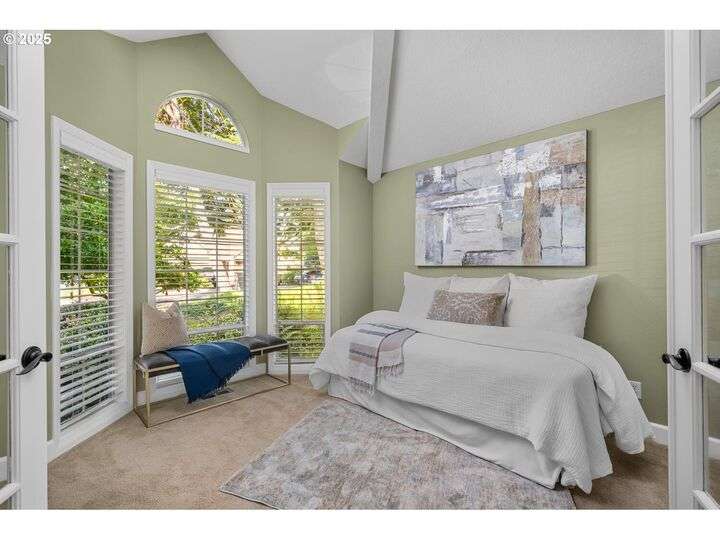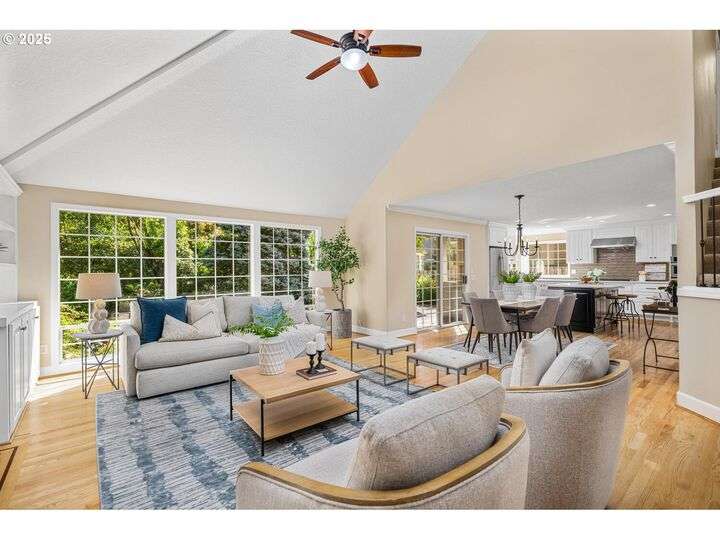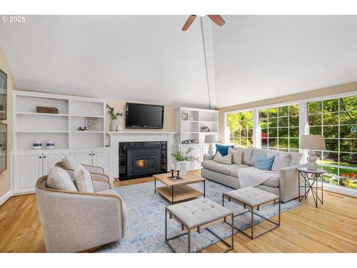 HOSTED BROKER TOUR TUES 9/30 11am-2pm. Discover this 1987 built Sterling Heights home; a peaceful retreat in an enclave of 35 quality homes developed by Randall Meyers and built by Blazer Homes, Inc. Located on a non-through street near Westlake Park, Oak Creek Elementary School, the “Westlake Loop” walking trails and Mountain Park. High quality updates and pride of ownership shine from the moment you open the front door into the foyer with its soaring ceiling and skylight. A great room with an impressive 18' vaulted ceiling flows into the dining area and kitchen to create a highly desirable circular floor plan. Throw open sliding glass doors to a spacious patio graced by fragrant jasmine vines, a bubbling water feature and the tranquility of birdsong. Outdoor spaces offer a gas hook up for the barbecue, flat lawn for kids and pets to romp and colorful mature gardens.The thoughtfully updated kitchen features stainless Jenn-Air appliances, custom cabinets with quartz counter tops and a generous-sized island with eating bar. The upper level primary bedroom suite has a a walk-in closet and fully appointed bath that was remodeled in 2024. This meticulous home has many options for how to use the rooms and suit your lifestyle. The main floor bedroom can be used as an office while an over sized upstairs bedroom is also suitable for media, playroom, workout space or shared childrens' sleeping quarters. The home has abundant storage and an attached 2 car garage with a circuit for an electric car. The neighborhood holds great appeal for those with a deep appreciation for nature and a strong community. It’s a place where privacy and calm prevail in synch with the seasons, yet this setting is just minutes to downtown Lake Oswego, Tigard, Tualatin, Wilsonville and Portland city center.