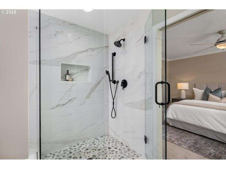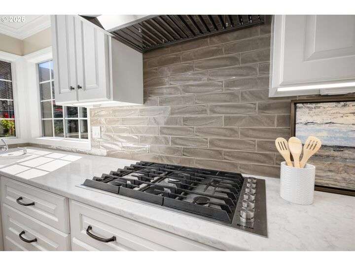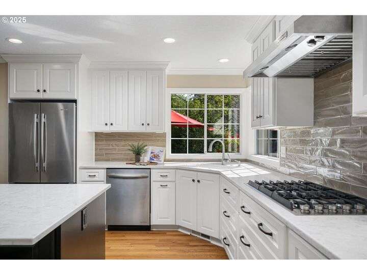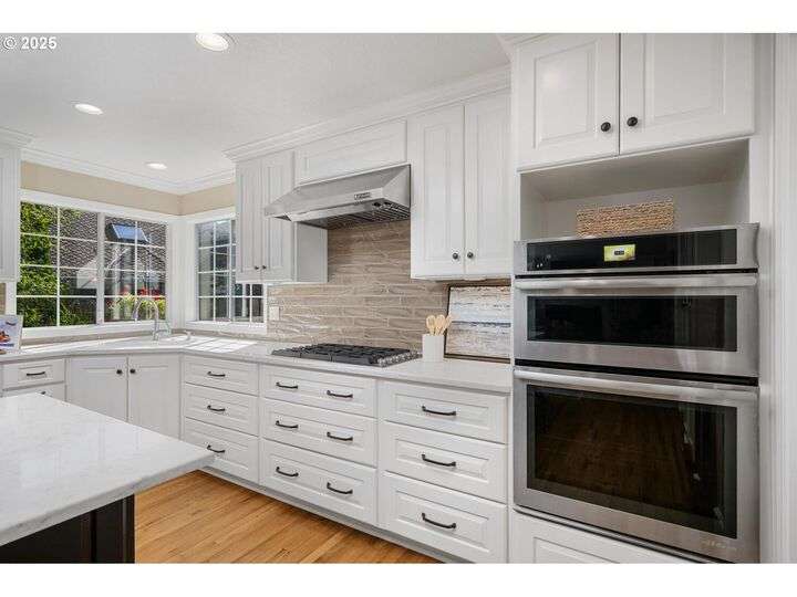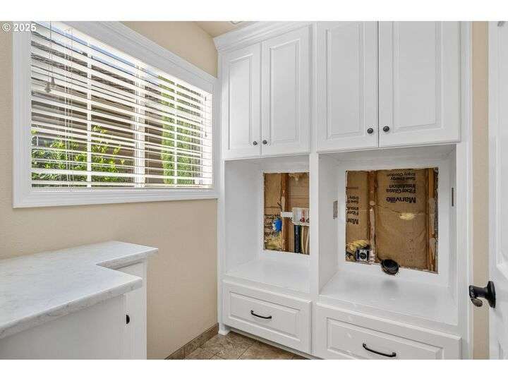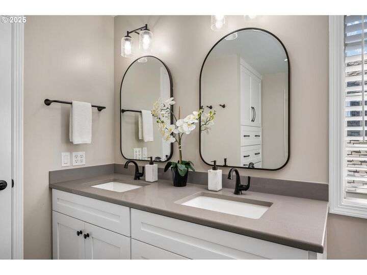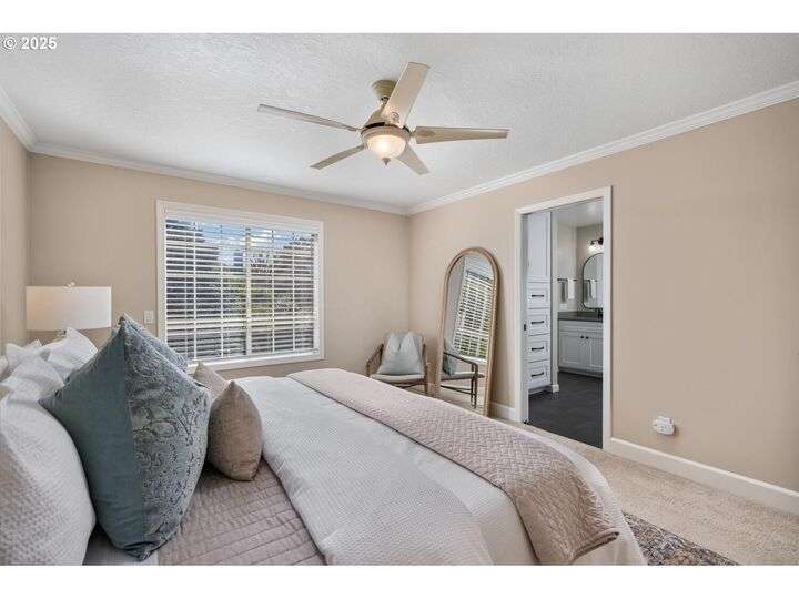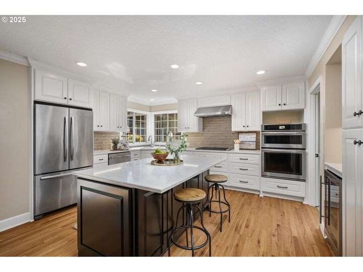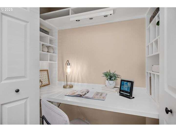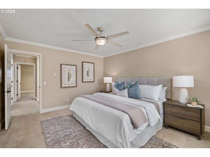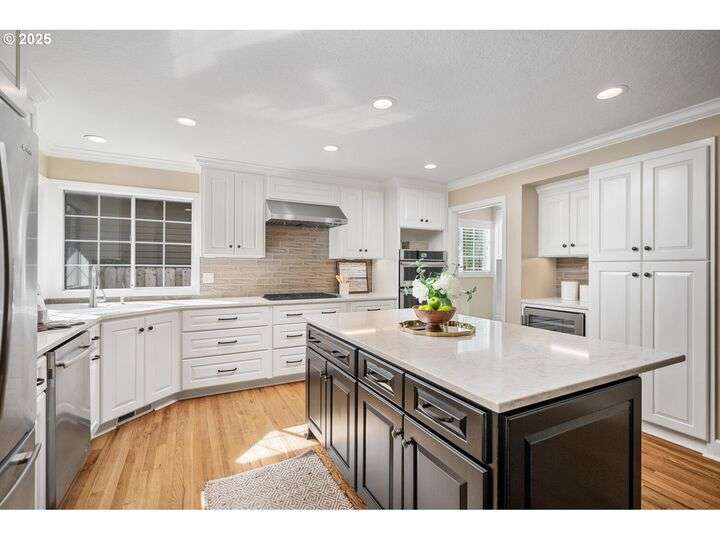 HOSTED BROKER TOUR TUES 9/30 11am-2pm. Discover this 1987 built Sterling Heights home; a peaceful retreat in an enclave of 35 quality homes developed by Randall Meyers and built by Blazer Homes, Inc. Located on a non-through street near Westlake Park, Oak Creek Elementary School, the “Westlake Loop” walking trails and Mountain Park. High quality updates and pride of ownership shine from the moment you open the front door into the foyer with its soaring ceiling and skylight. A great room with an impressive 18' vaulted ceiling flows into the dining area and kitchen to create a highly desirable circular floor plan. Throw open sliding glass doors to a spacious patio graced by fragrant jasmine vines, a bubbling water feature and the tranquility of birdsong. Outdoor spaces offer a gas hook up for the barbecue, flat lawn for kids and pets to romp and colorful mature gardens.The thoughtfully updated kitchen features stainless Jenn-Air appliances, custom cabinets with quartz counter tops and a generous-sized island with eating bar. The upper level primary bedroom suite has a a walk-in closet and fully appointed bath that was remodeled in 2024. This meticulous home has many options for how to use the rooms and suit your lifestyle. The main floor bedroom can be used as an office while an over sized upstairs bedroom is also suitable for media, playroom, workout space or shared childrens' sleeping quarters. The home has abundant storage and an attached 2 car garage with a circuit for an electric car. The neighborhood holds great appeal for those with a deep appreciation for nature and a strong community. It’s a place where privacy and calm prevail in synch with the seasons, yet this setting is just minutes to downtown Lake Oswego, Tigard, Tualatin, Wilsonville and Portland city center.
