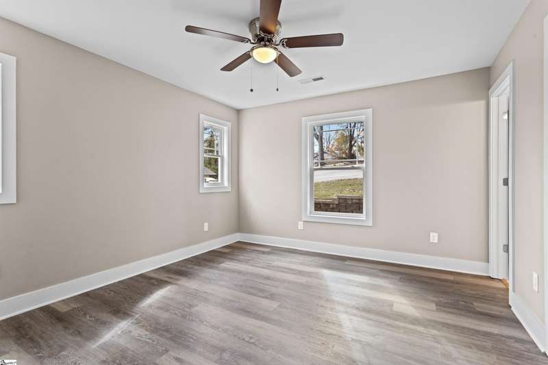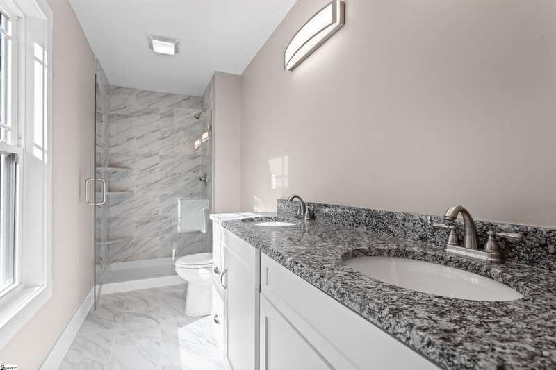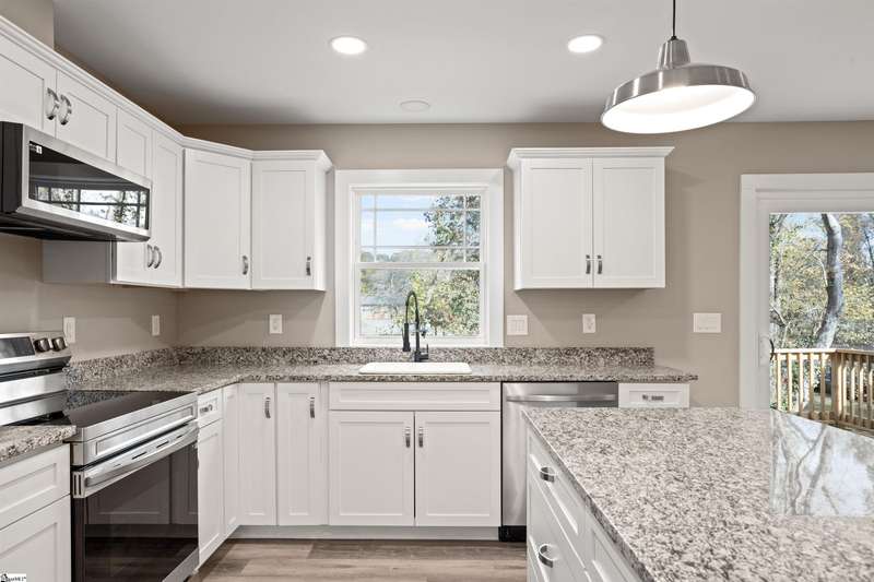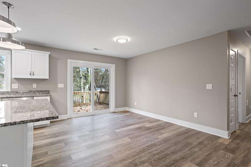 Nestled on nearly half an acre, this stunning home offers privacy, space, and comfort in an ideal setting. Located on a quiet corner lot, this 5-bedroom, 3-bath residence blends modern updates with timeless charm. Step through the front door into the expansive great room, where luxury vinyl plank flooring and an abundance of natural light create a warm and inviting atmosphere. The open-concept design flows seamlessly into the kitchen, featuring granite countertops, an abundance of cabinetry, stainless steel appliances, and sliding glass doors that lead out to a spacious rear deck. Enjoy relaxing or entertaining while overlooking a lush backyard with mature trees providing shade and serenity. The main level features a generous primary suite with two closets-including custom built-in shelving-and a luxurious en-suite bath with upgraded Carrara tile, dual granite vanities, and a walk-in shower. Two additional guest bedrooms on the main level share a well-appointed full bathroom. Downstairs, the finished lower level offers a large flex room perfect for a family room, media space, or even an additional bedroom. This level also includes a full bathroom, a laundry room, another guest bedroom, and direct access to the backyard-ideal for guests or multi-generational living. A spacious two-car garage offers ample room for parking and storage. Don't miss your chance to own this exceptional home in a peaceful, sought-after location. Schedule your showing today!