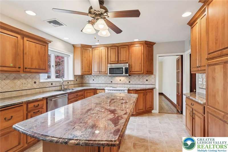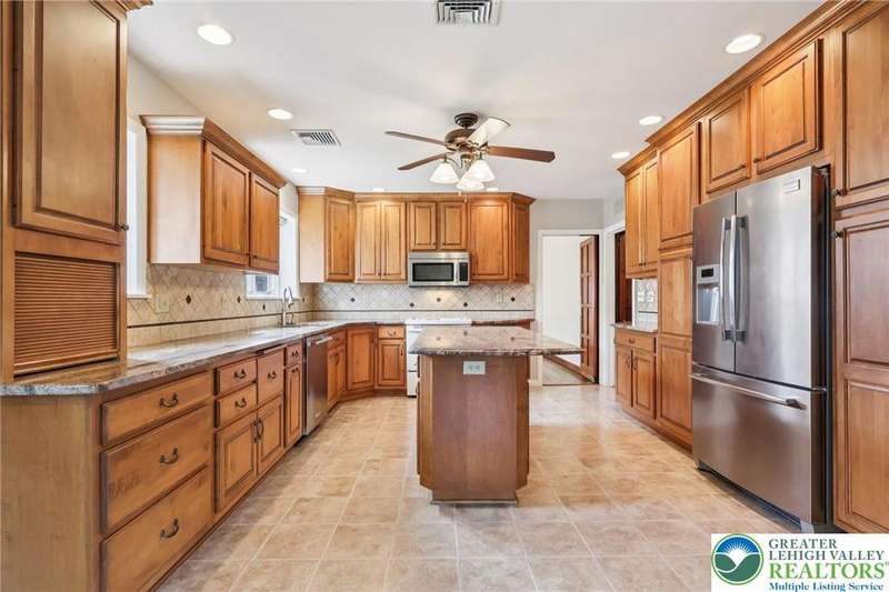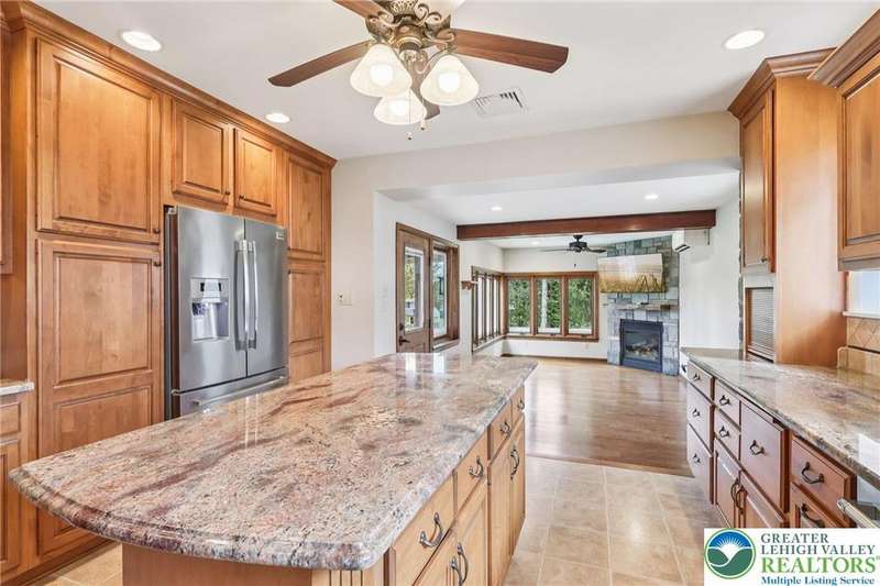 Authentic and Exquisite. The beautiful all stone home in West Bethlehem is an absolute dream home. Original features of woodwork, doors, architecture is recognized throughout the home and all improvements have been made with great effort of maintaining original quality and design. Often admired exterior makes a wonderful first impression. The solid wood front door is welcomes you. The living room features cathedral ceiling and exposed beams, plaster walls and gorgeous wood burning stone fireplace. The library/office is tucked in a corner. Through the dining room of random plank and pegged hardwood floors, with intriguing corner window and crown molding. Updated kitchen and family room addition blend the new quality and design with original impressive character. Beautiful cabinetry, accented with granite counters, stainless appliances, recessed lights create a stunning kitchen, further accented with pantry purposed cabinets, center island and ceiling fan, all connected to an incredible family room, floor to ceiling propane fireplace and wonderful view through updated casement windows overlooking multi-level terrace and one of a kind side yard. Two bedrooms on first floor with fully tiled bath, 2 bedrooms on 2nd floor with full bath and a fun basement with rec room, 3rd full bath and 3rd stone fireplace in incredible entertaining room complete with taps, cooler and stunning built in serving bar. Absolute incredible location, property and home. Take a close look today.