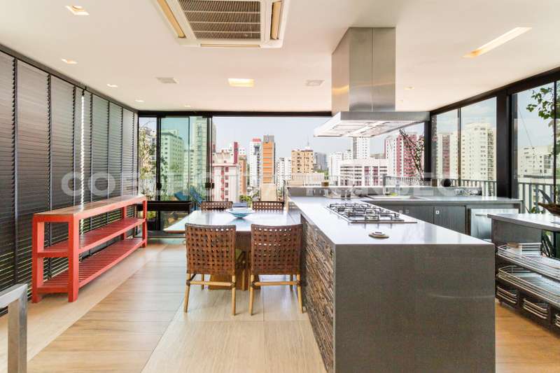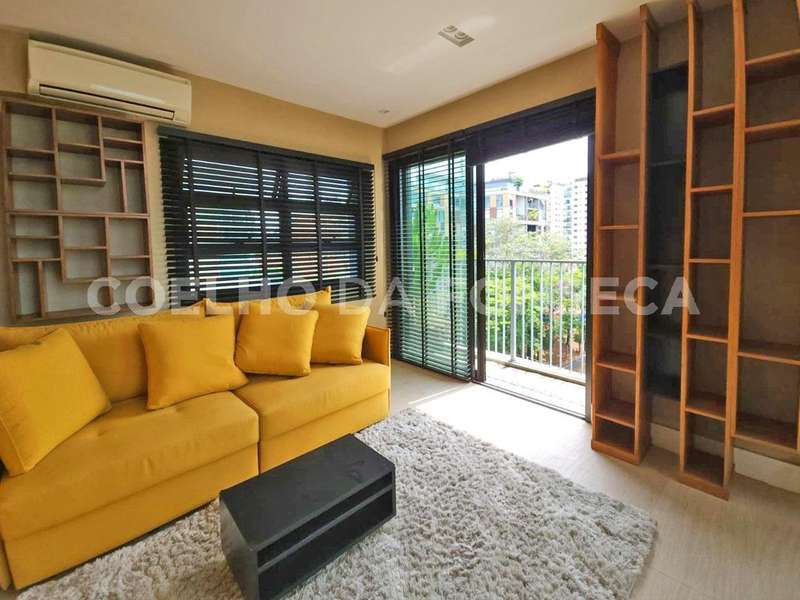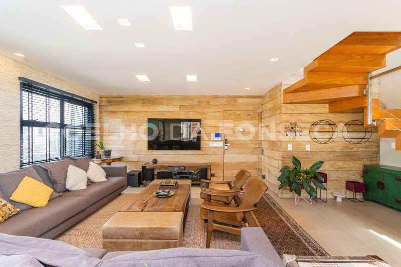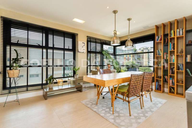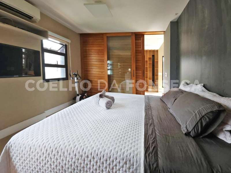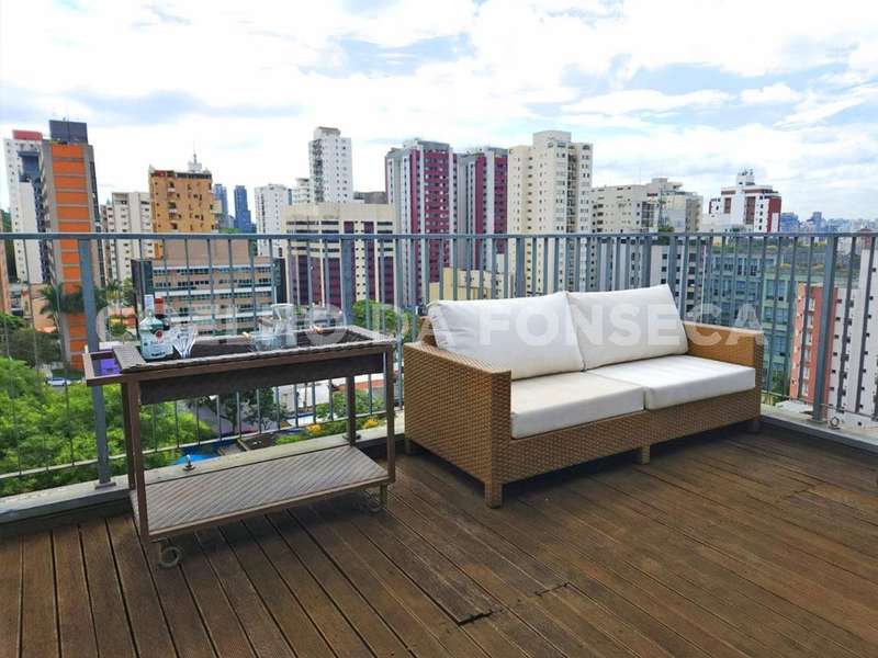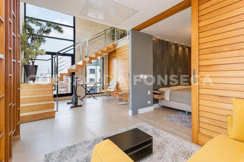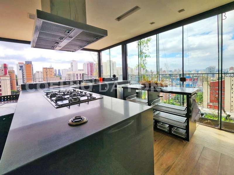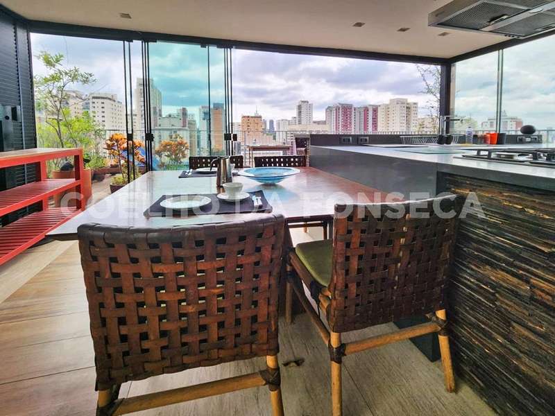 Cobertura tríplex mobiliada, com acabamento impecável. Projeto conceituado e ousado, escolhido para integrar a Bienal de Arquitetura de Veneza. Projetado pelo escritório franco-brasileiro Triptyque, destaca-se pelas formas e cor negra. Localizado em rua de muito charme. Imperdível!