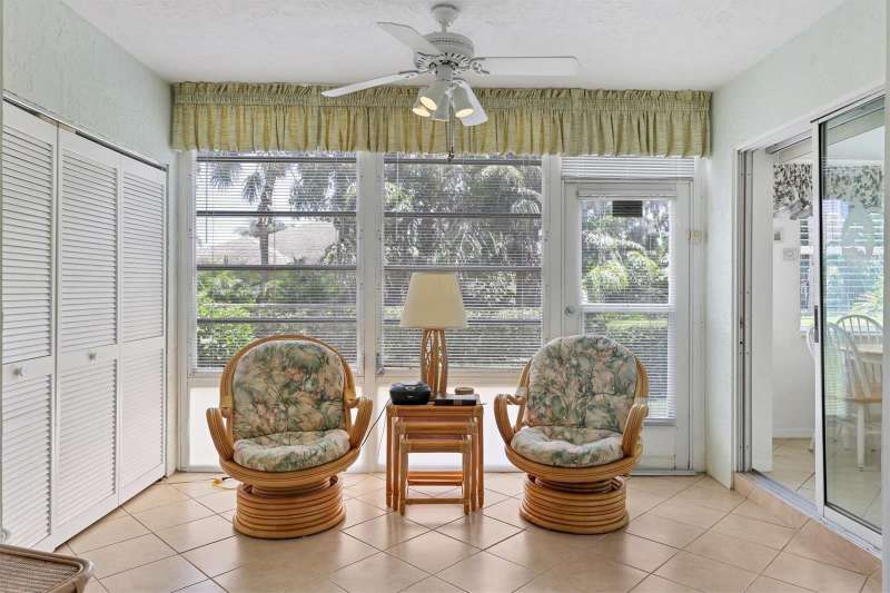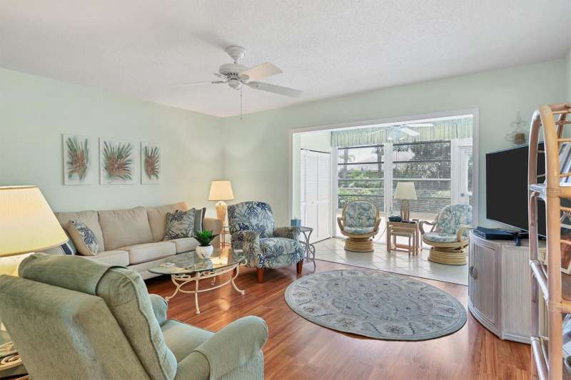 New Price! Ready for your next place? Perfect for part-time or full year residents and bring your small pet! Fully furnished and ready to move in. Convenient first floor unit in 55+ Community. Complete with two bedrooms and two baths. A nice sunny lanai and features its own laundry closet. Assigned covered parking spot directly in front of unit. The clubhouse and large heated pool & spa within close proximity and enjoy the pool tables, exercise area, bingo, library, shuffleboard and an area for outdoor grilling. Location is superb, hospital, doctors offices, restaurants, shopping and excellent beaches! Travel to airports as well as theme parks with ease. Check this one out!